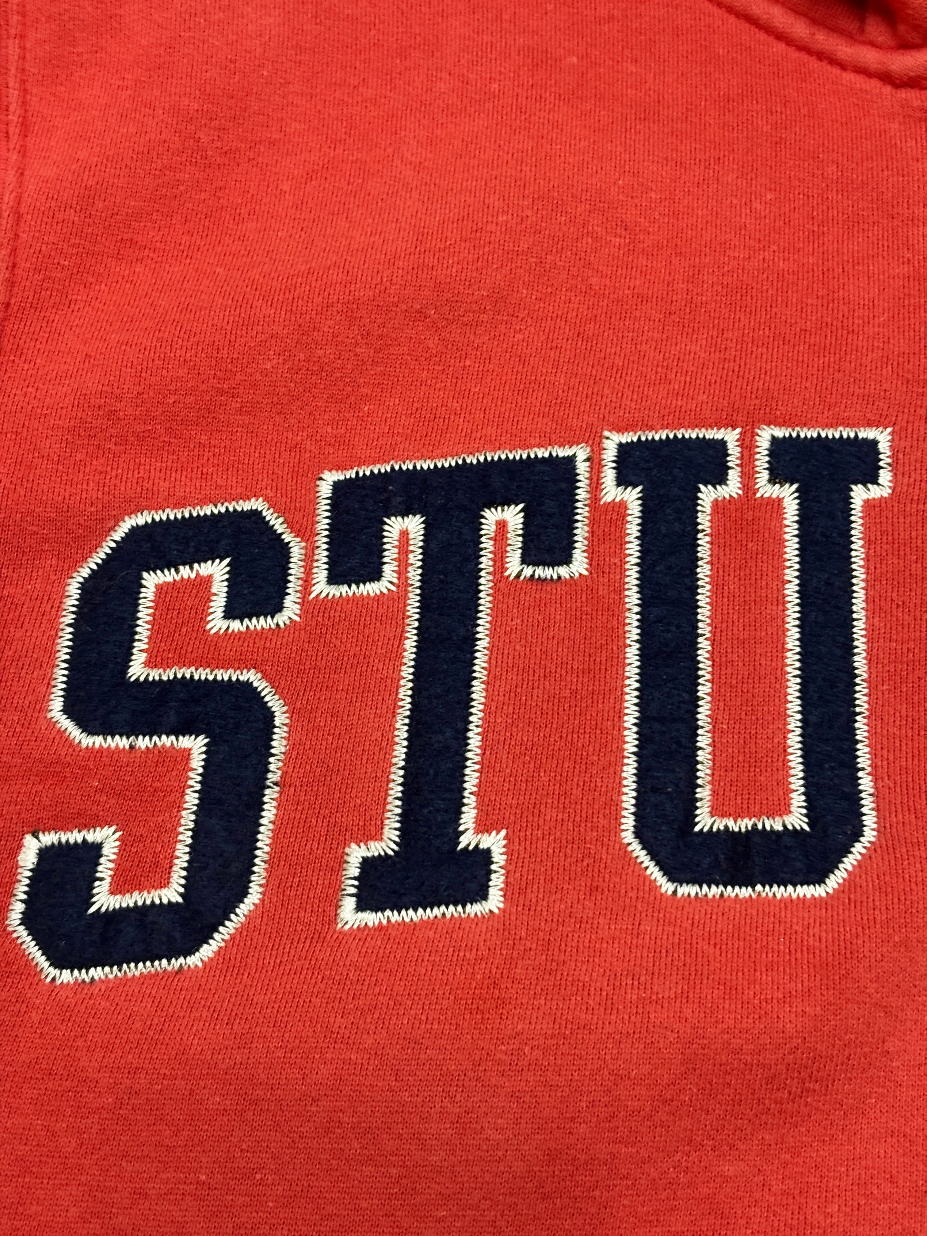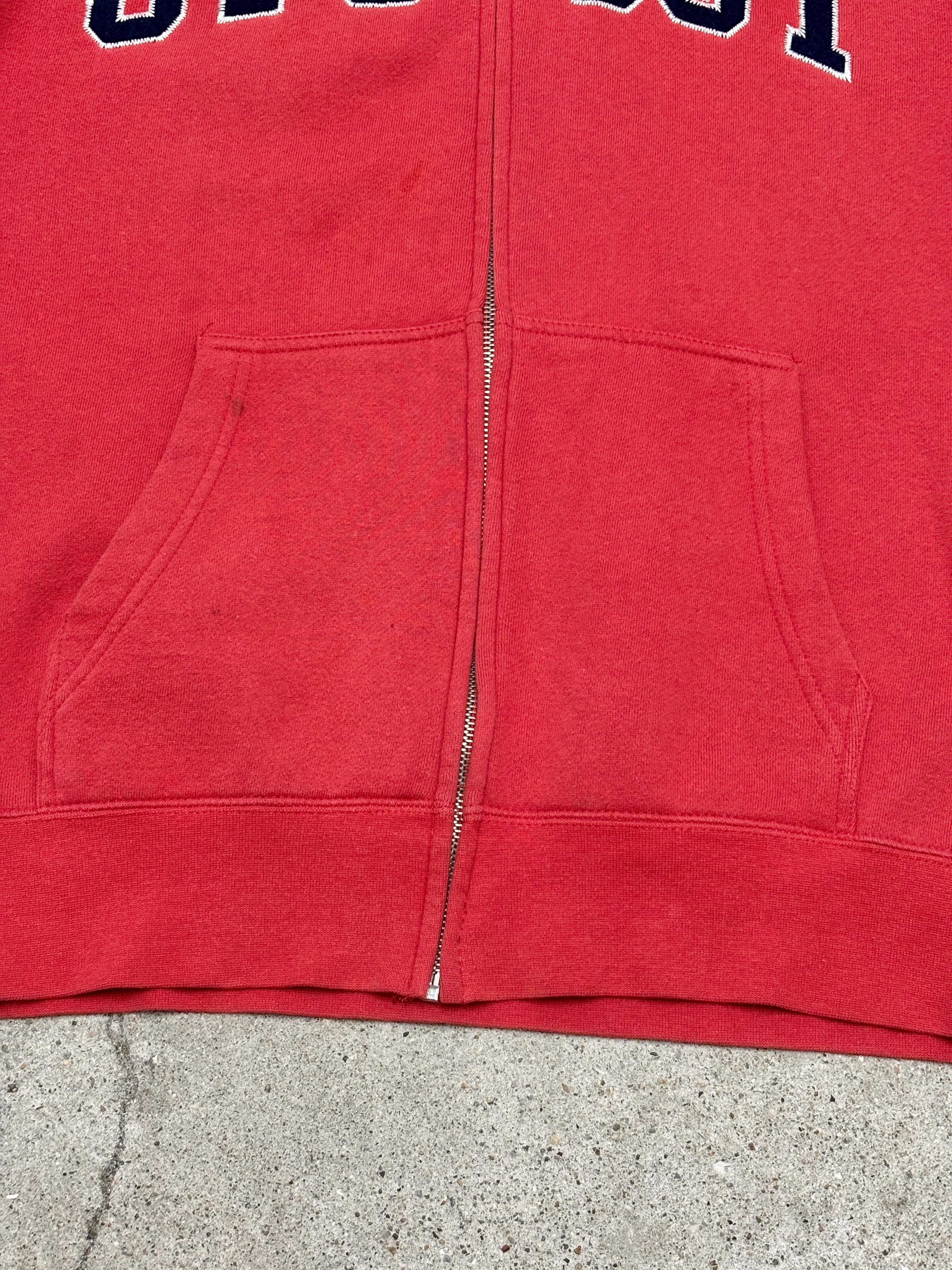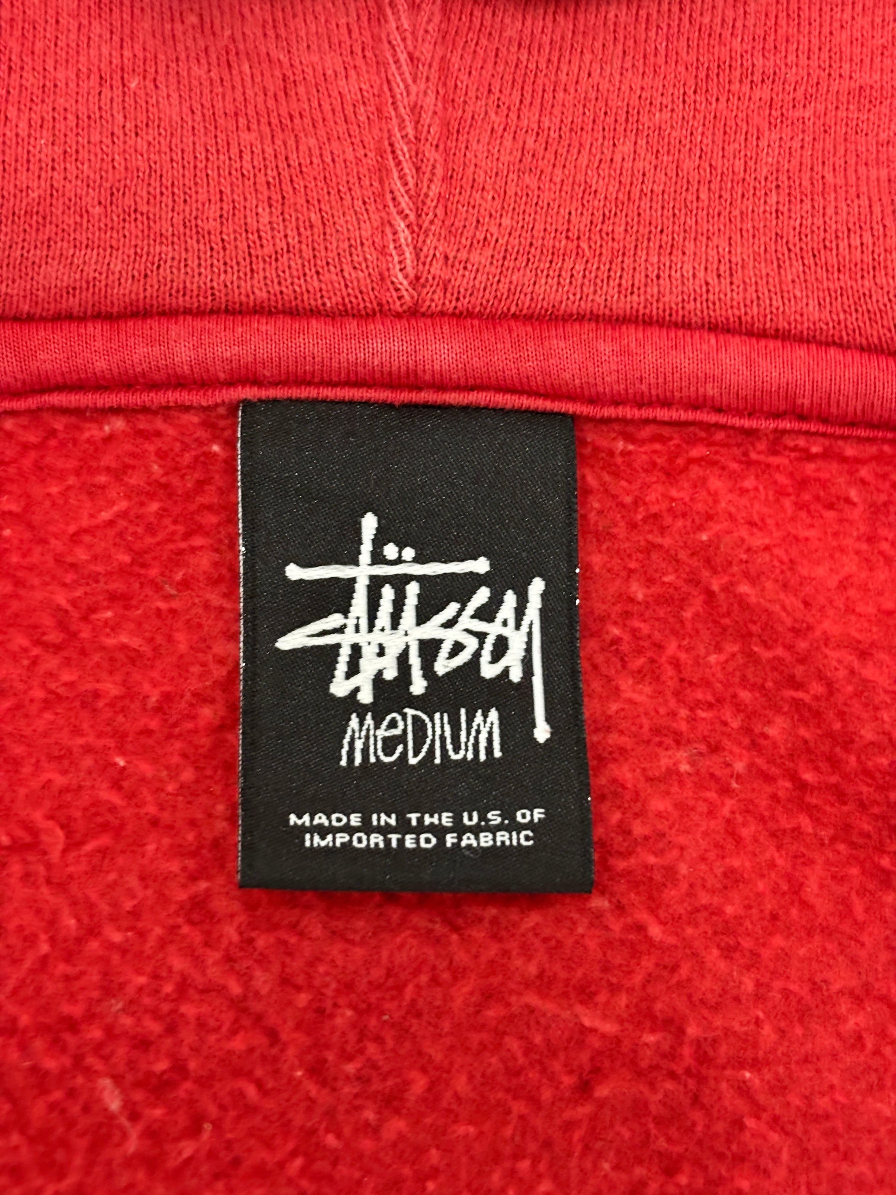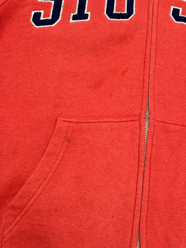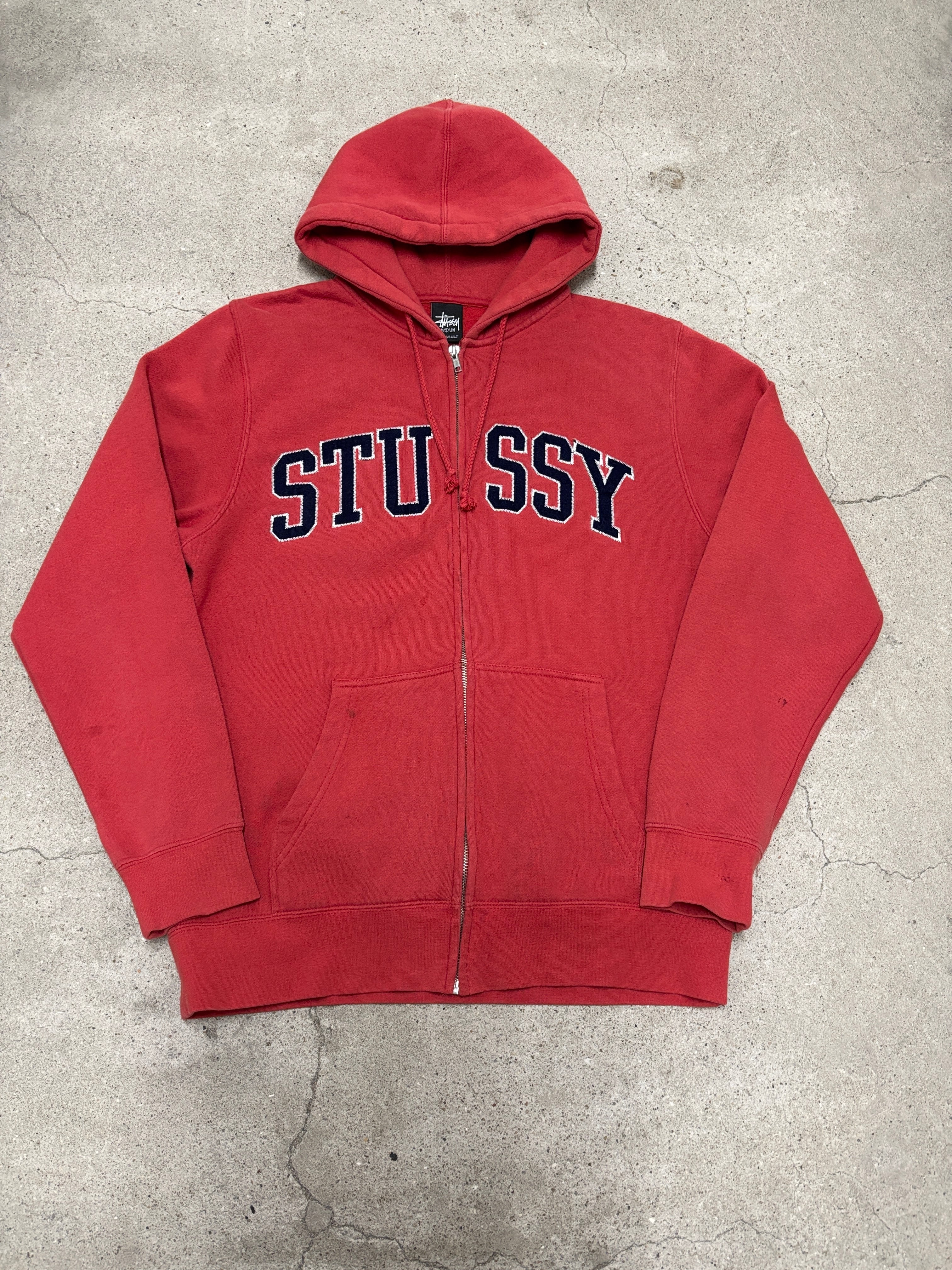 10s STUSSY/Logo patch zip Hoodie/M/ロゴパッチジップパ-カ-/フ-ディ-/レッド/ステューシー