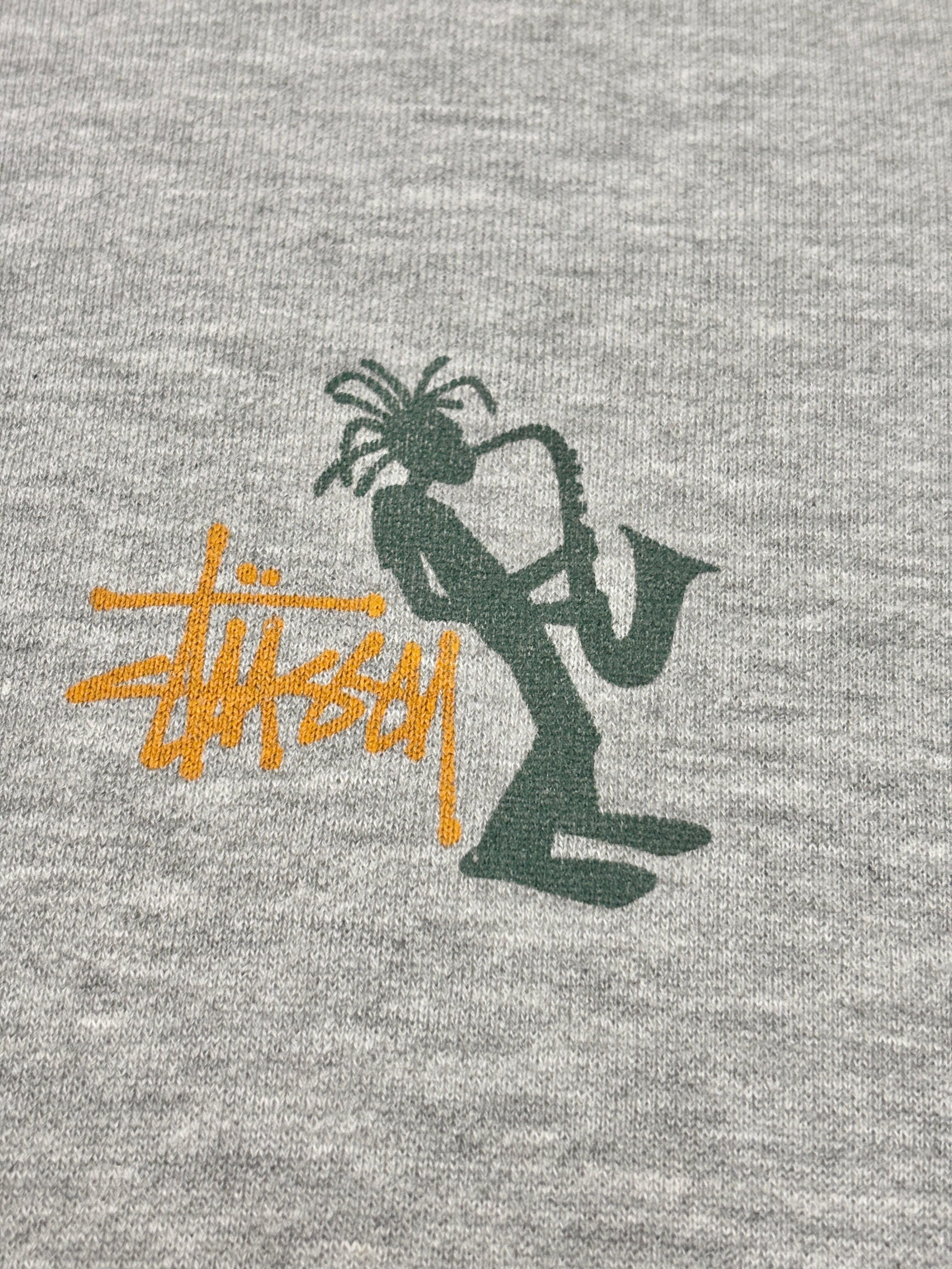 90~00s OLD STUSSY/Jazz Shadowman print Sweat/紺タグ/L/ジャズシャド-マンプリントスウェット/ストックロゴ/グレ-/ステューシー/オ-ルドステューシ-/古着/ア―カイブ