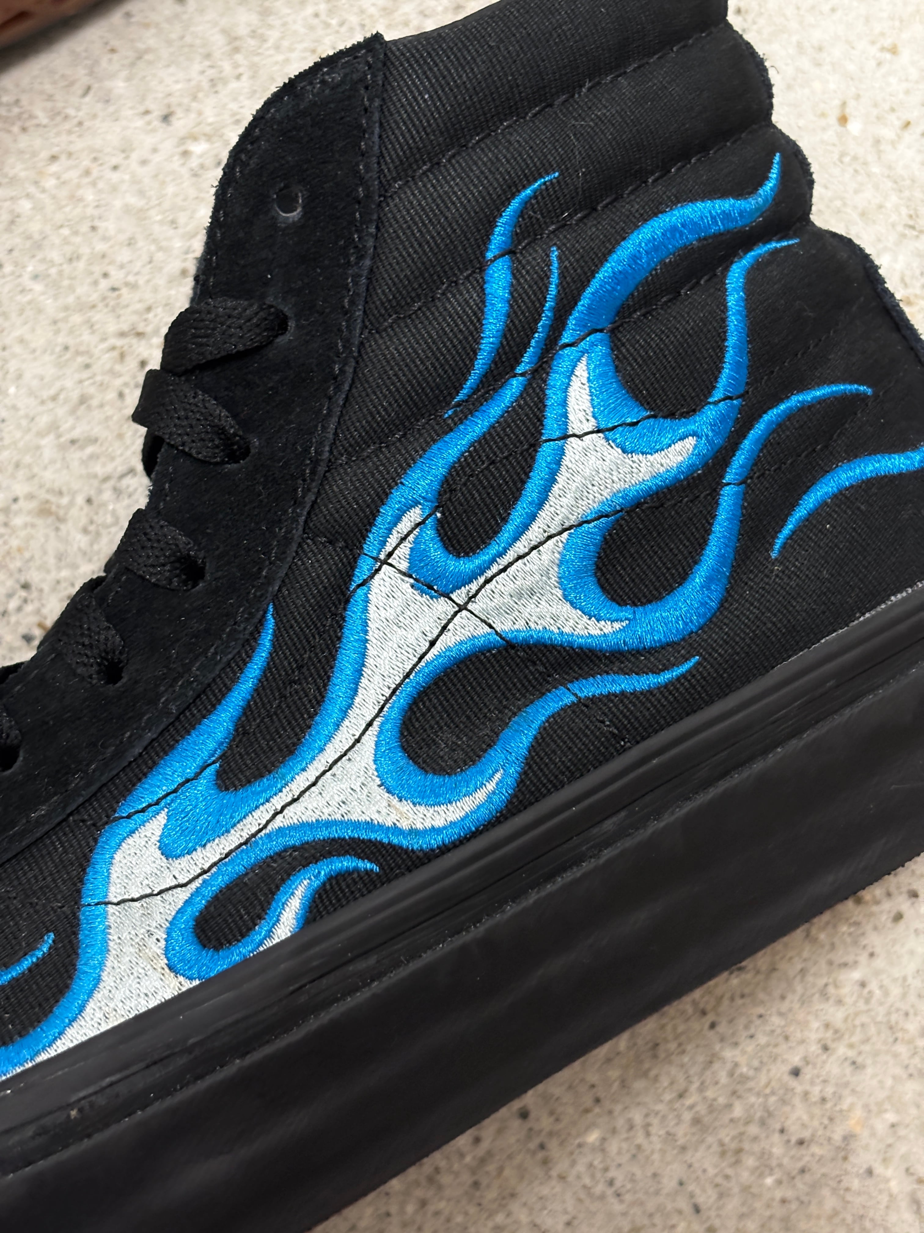 18ss VANS VAULT × WTAPS/SK8-HI LX Blue Flame/26.5cm/スケハイ/ブル-フレイム/刺繍/ファイヤーパターン/ハイカットスニーカー/ブラック/ブル-/ダブルタップスコラボ/バンズ