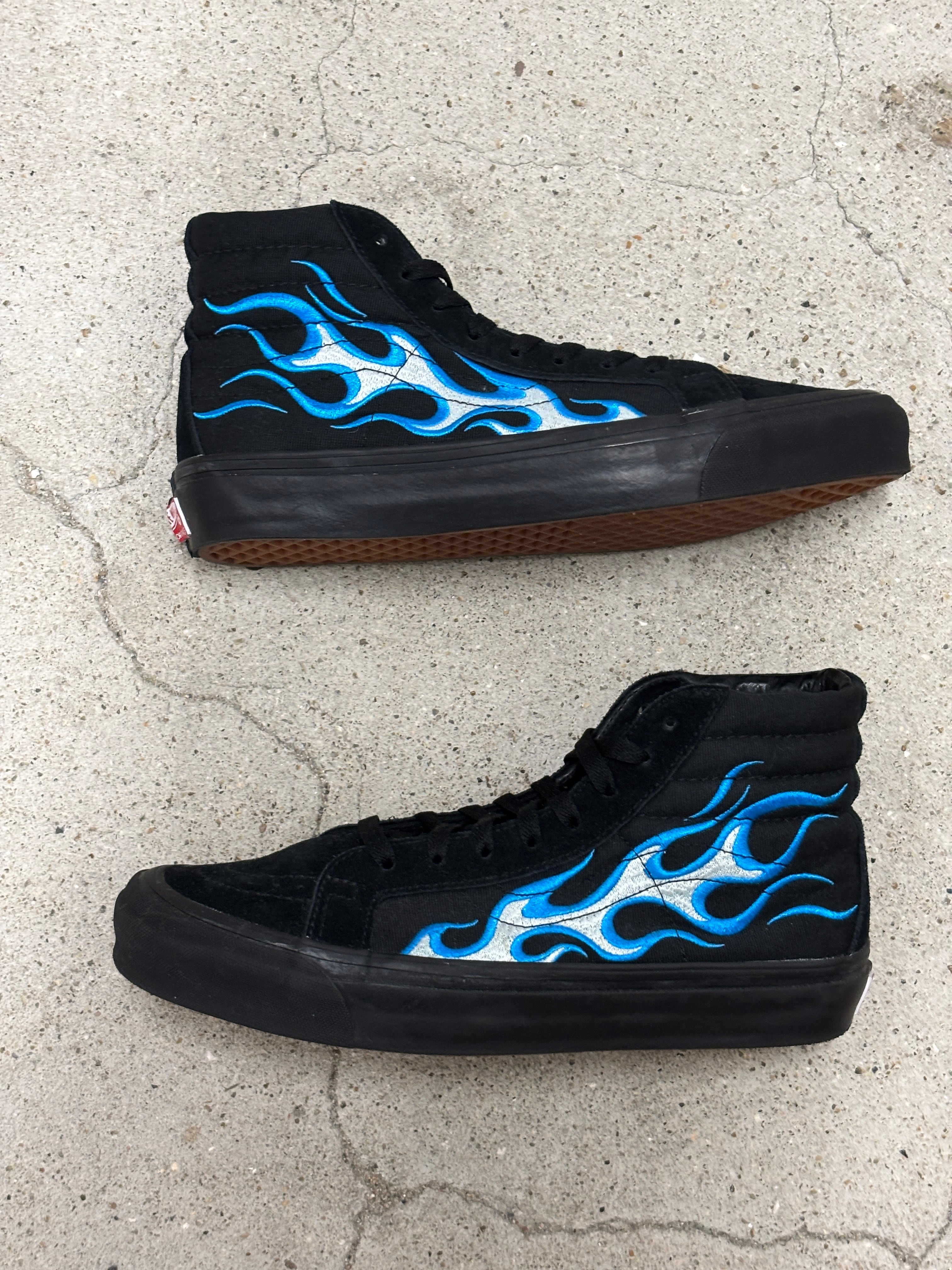18ss VANS VAULT × WTAPS/SK8-HI LX Blue Flame/26.5cm/スケハイ/ブル-フレイム/刺繍/ファイヤーパターン/ハイカットスニーカー/ブラック/ブル-/ダブルタップスコラボ/バンズ/靴/ア―カイブ