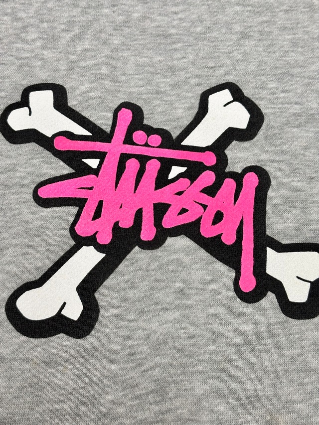 00s OLD STUSSY/Cross Bone print Sweat/M/クロスボーンプリントスウェット/ストックロゴ/グレ-/ステューシー/オ-ルドステューシー/古着/ア―カイブ