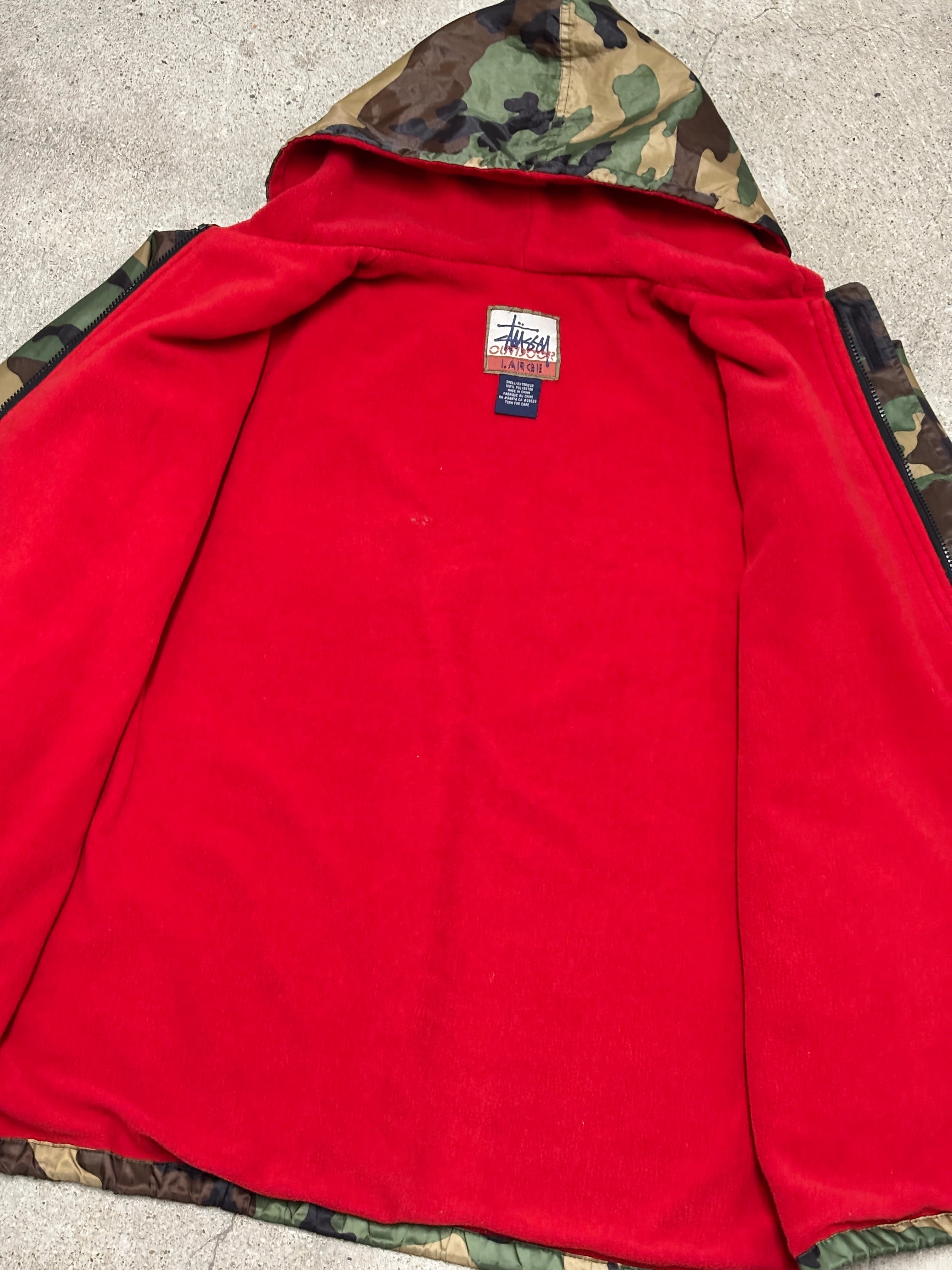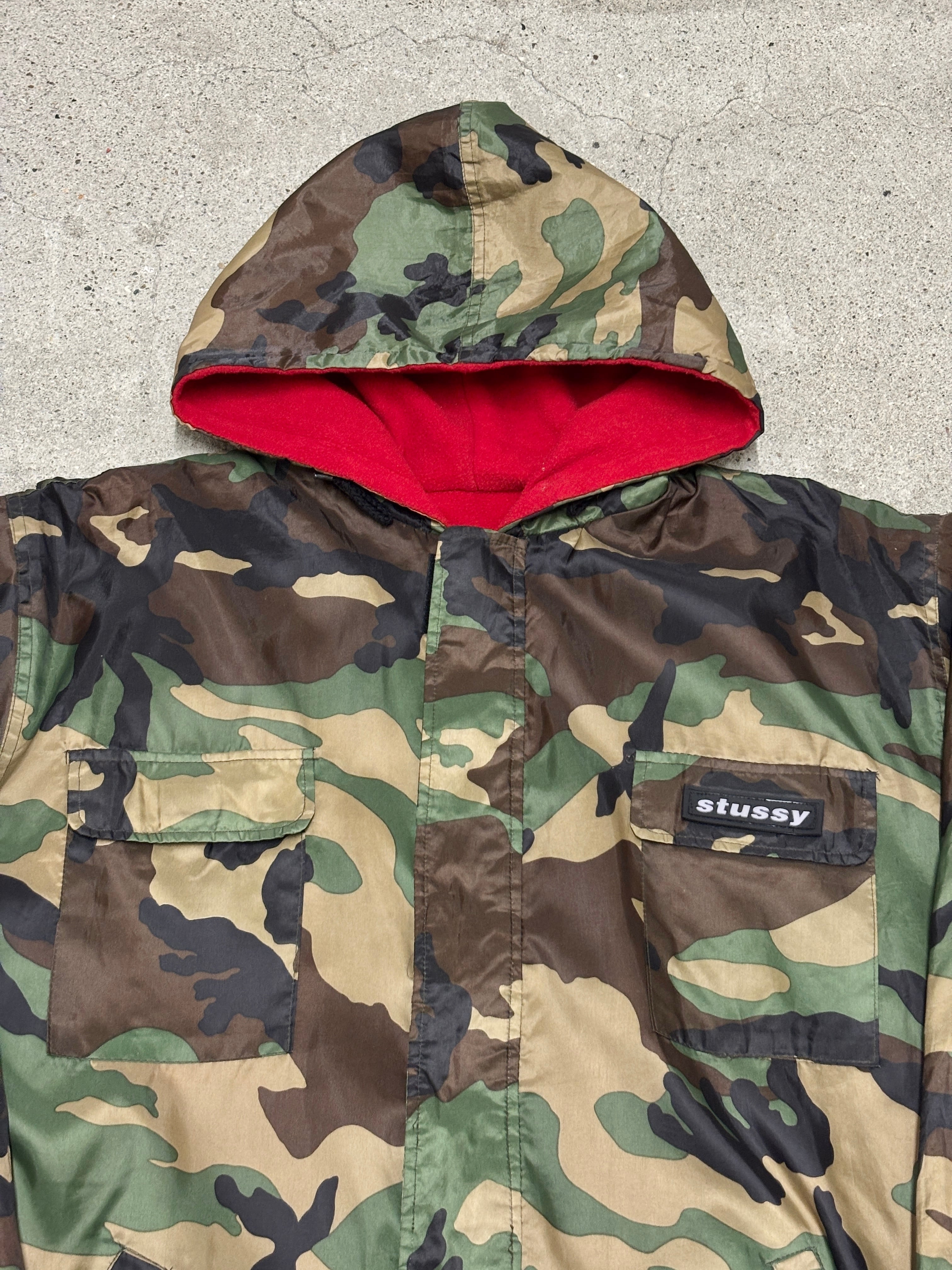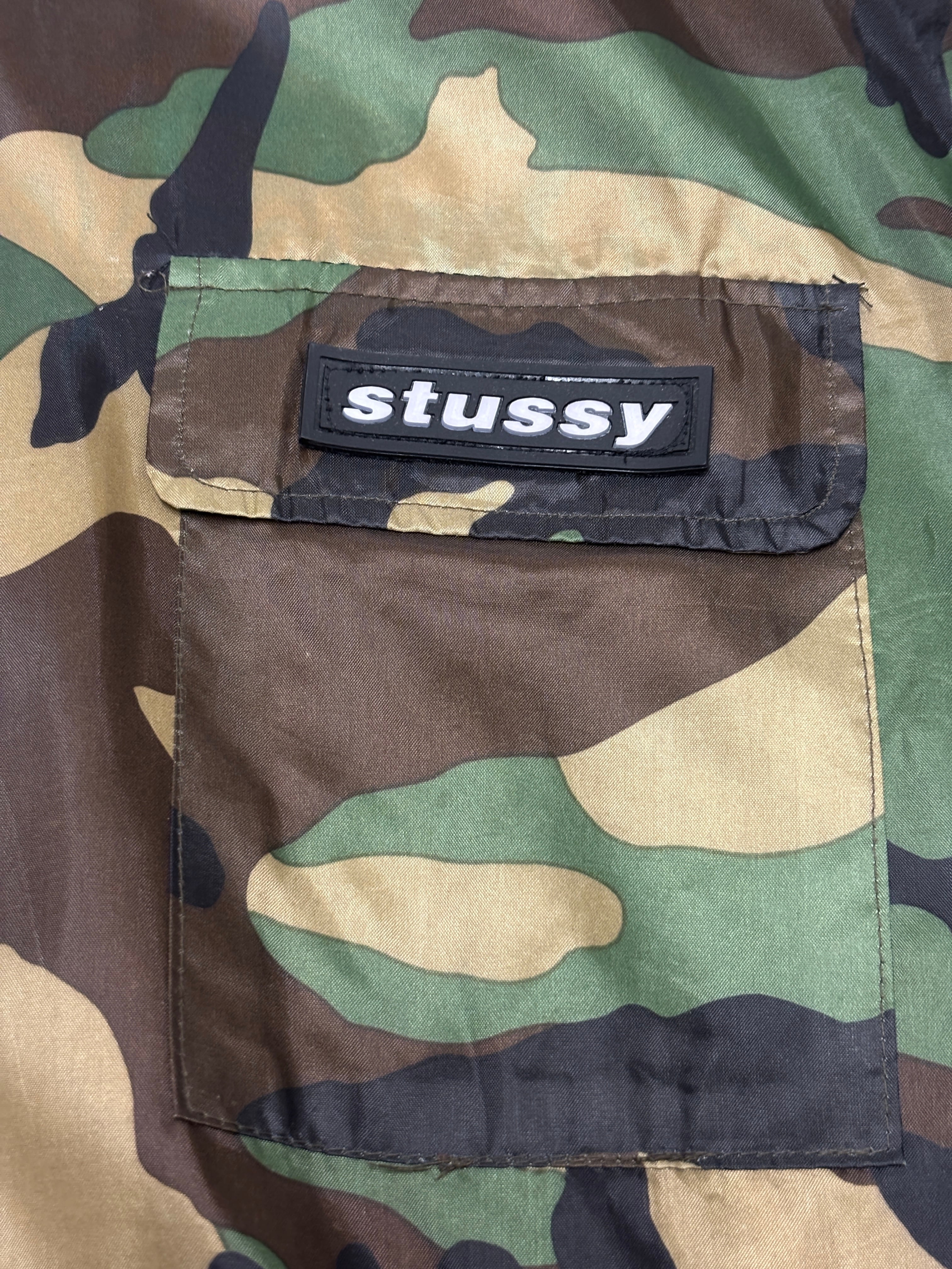 90~00s Bootleg STUSSY/STUSSY OUTDOOR/Camouflage Nylon Jacket/L/カモフラ柄ナイロンジャケット/ロゴプレ-ト/カ-キ/ブ-トレグ/ステューシー/古着/ア―カイブ