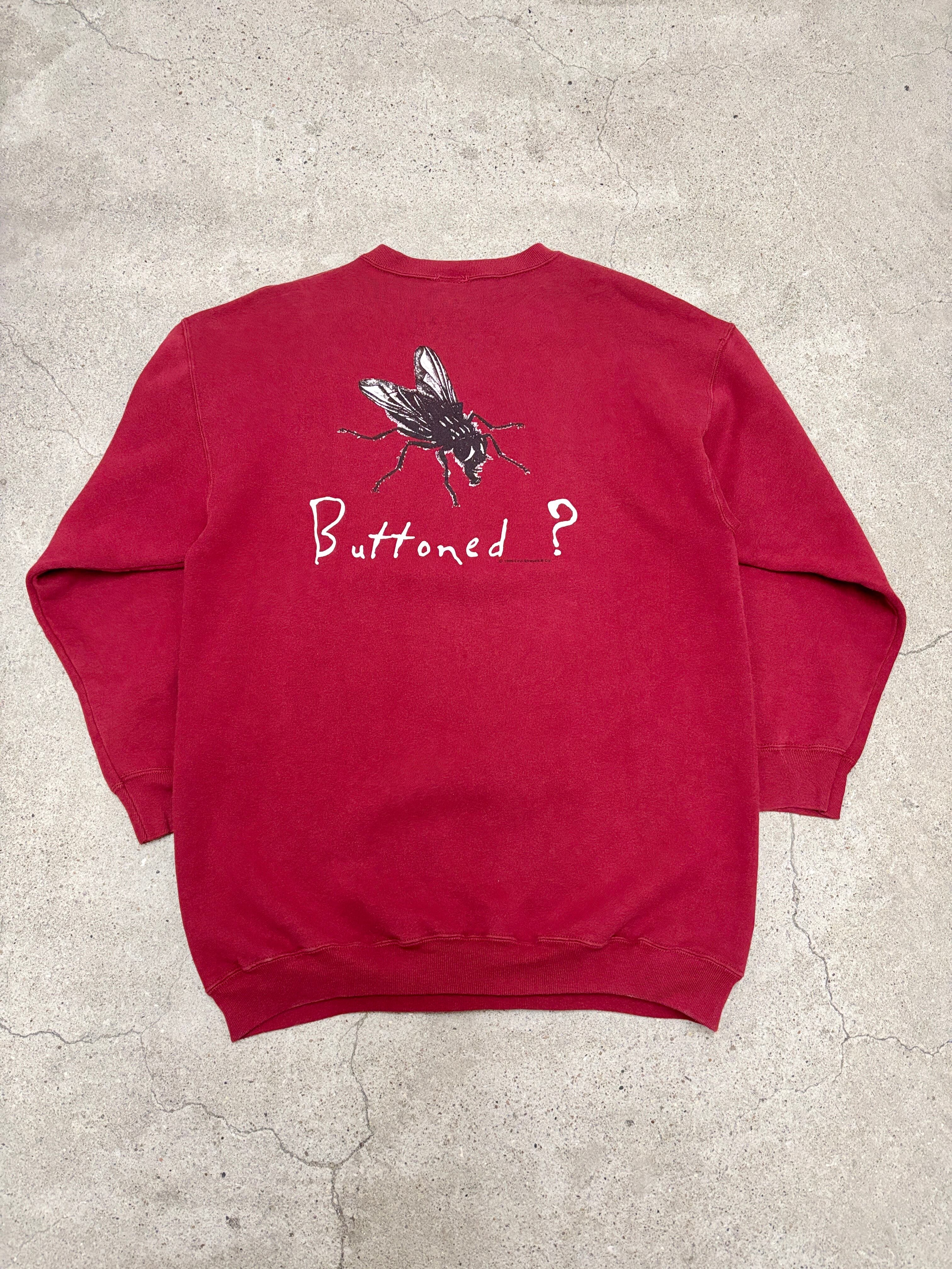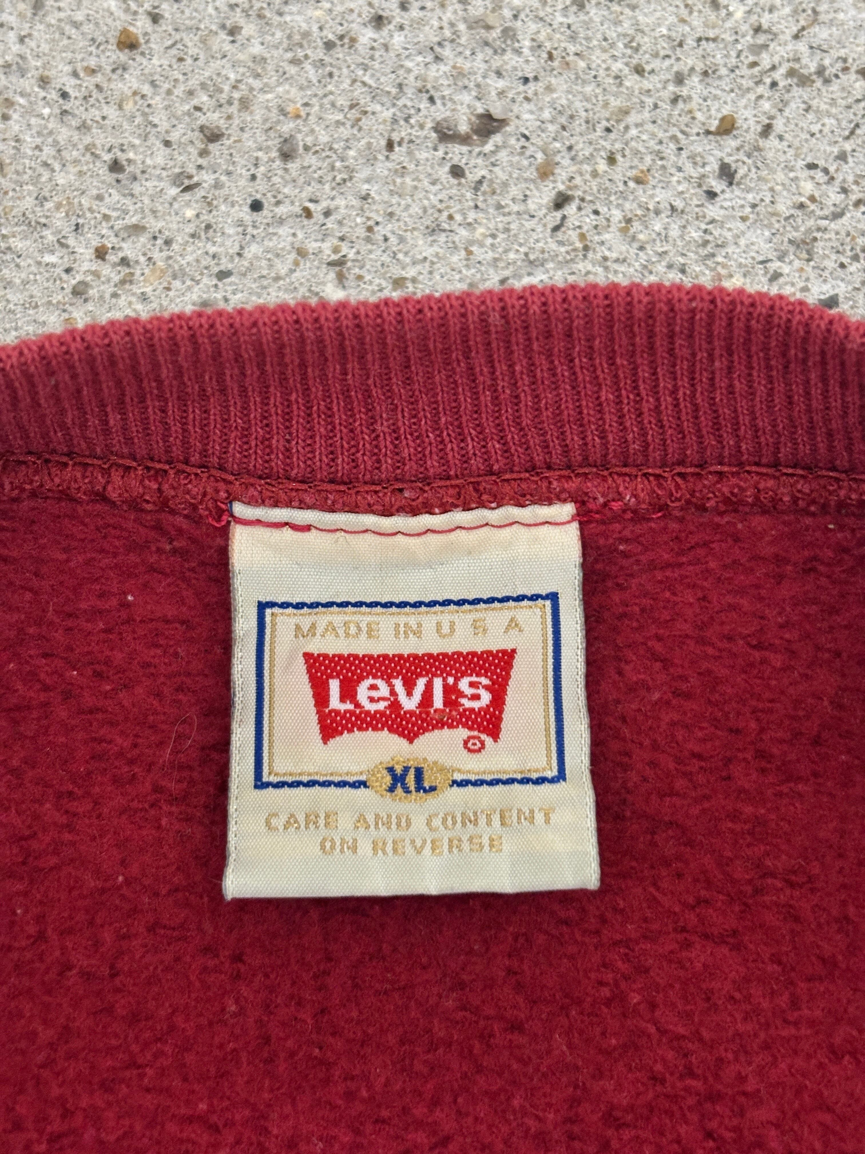 90s Levi`s/BUTTONED ? Sweat/USA製/1995年/XL/ロゴプリントスウエット/ハエ/バ-ガンディ-/リ-バイス/アメカジ/古着/ヴィンテ-ジ