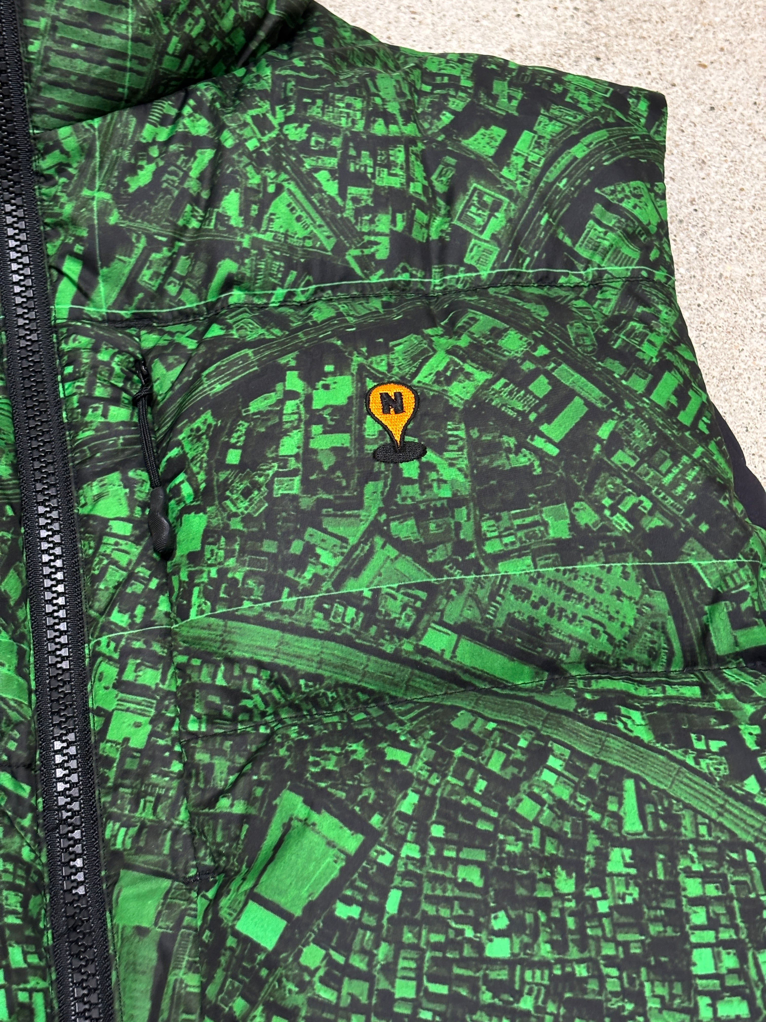 00s NITRAID/Real city camo Down Vest/M/リアルシティ-カモ柄ダウンベスト/地図/総柄/グリ-ン/ナイトレイド