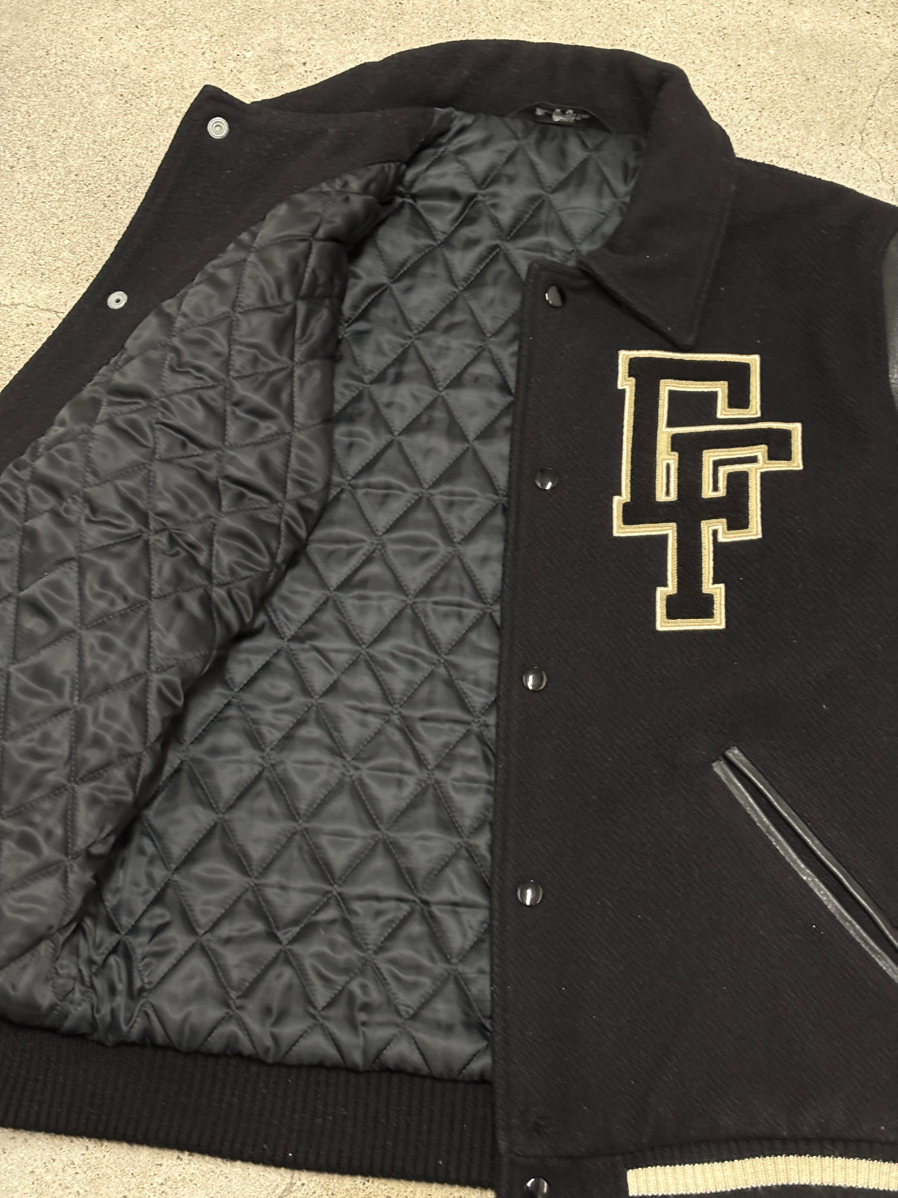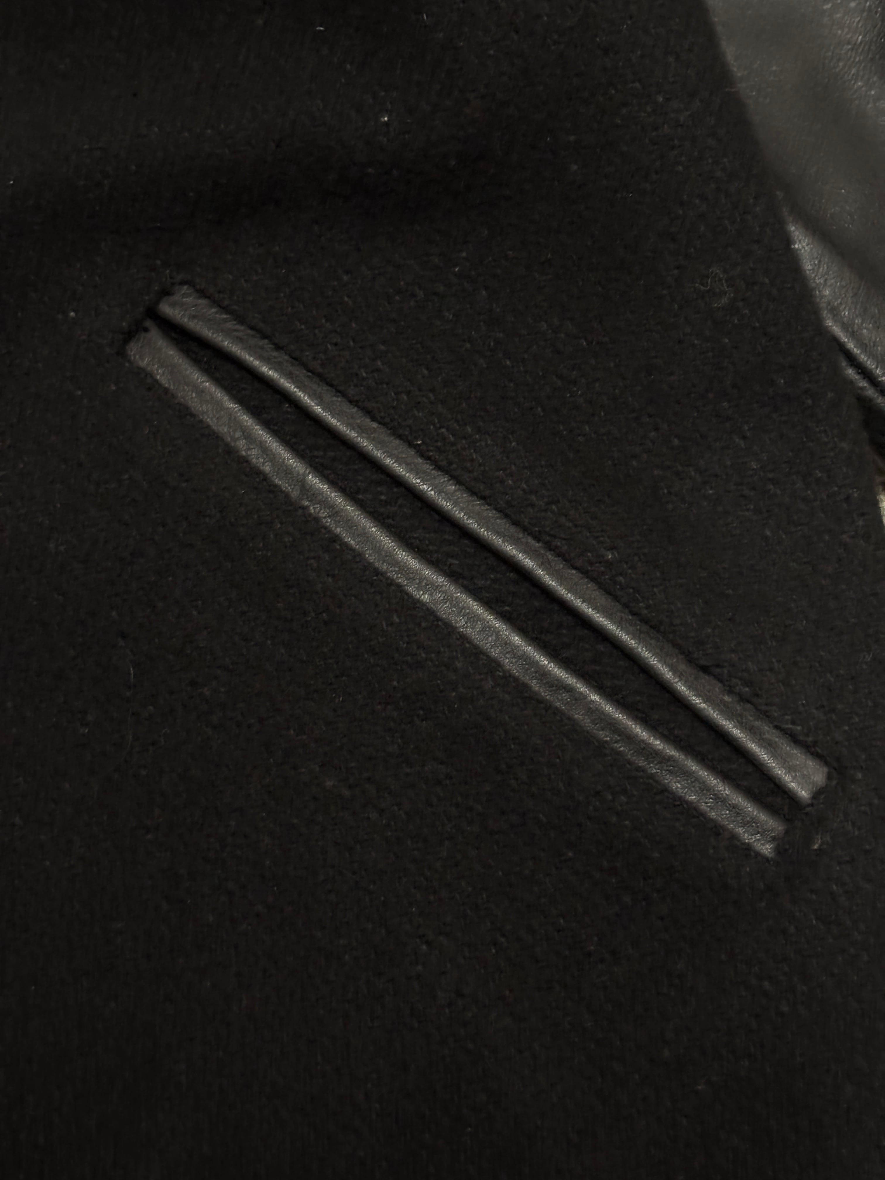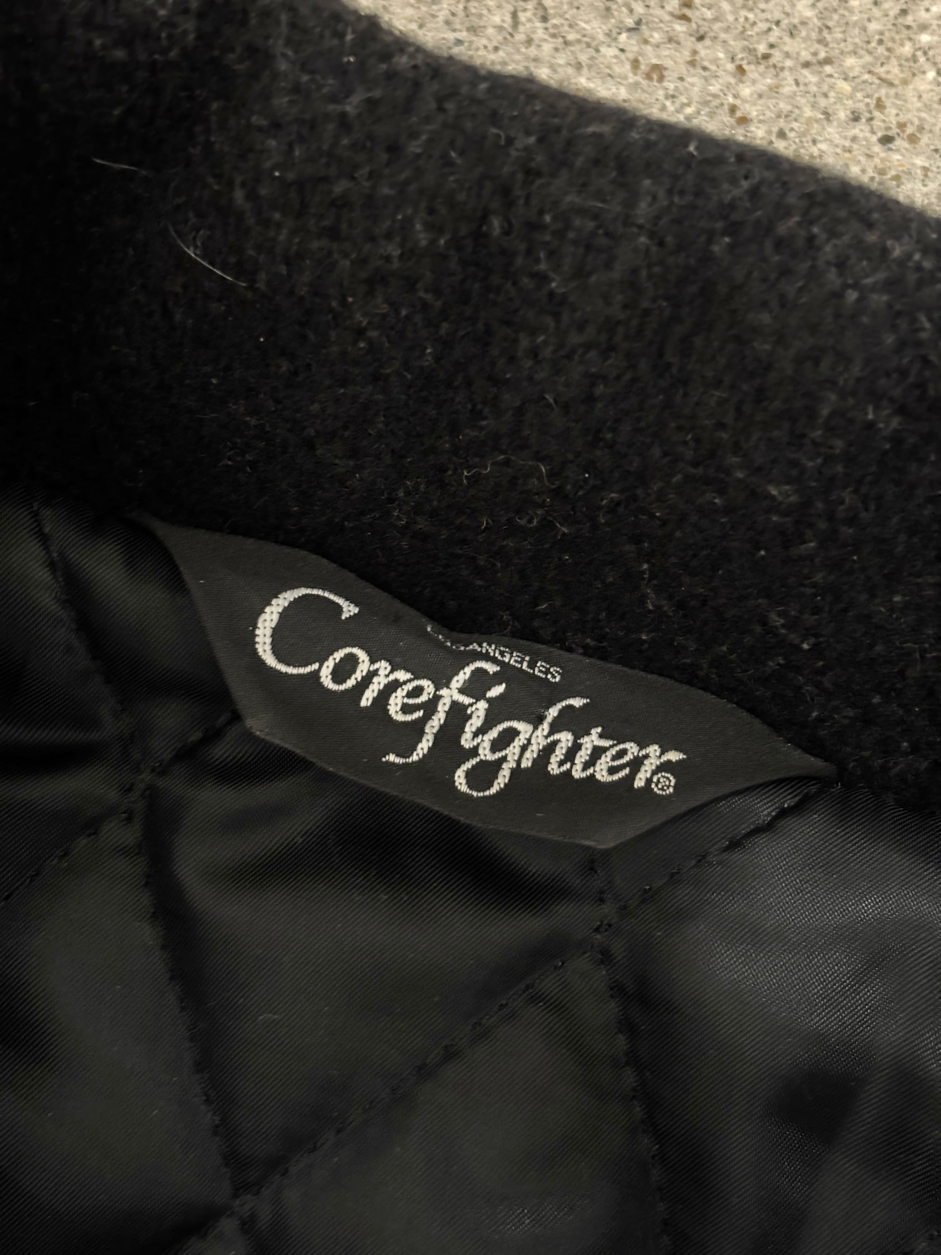 00s COREFIGHTER/Varsity Jacket/L/バーシティ-ジャケット/スタジャン/ロゴワッペン/ブラック/牛革/カウレザ-/コアファイター/古着/ア-カイブ
