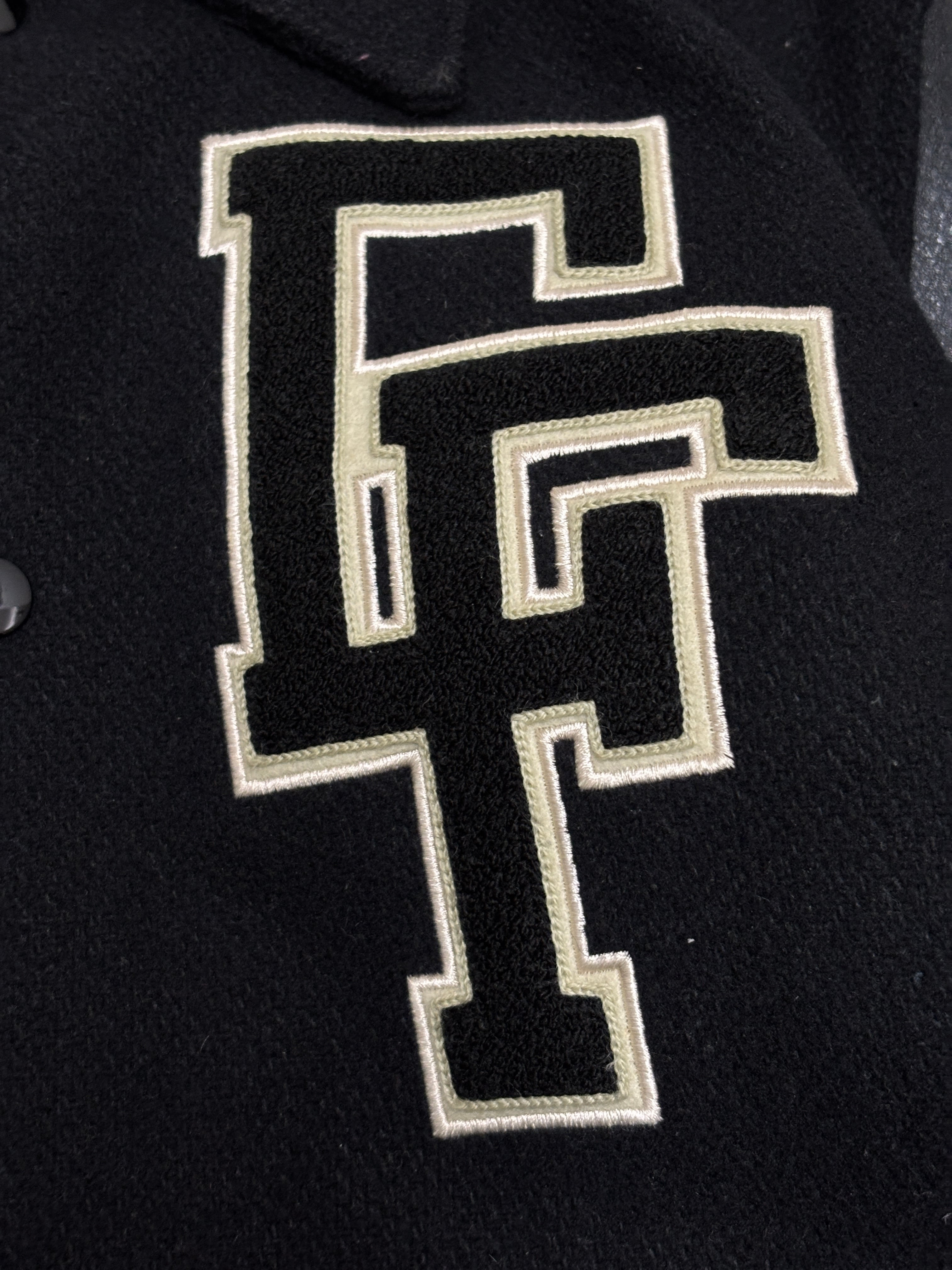 00s COREFIGHTER/Varsity Jacket/L/バーシティ-ジャケット/スタジャン/ロゴワッペン/ブラック/牛革/カウレザ-/コアファイター