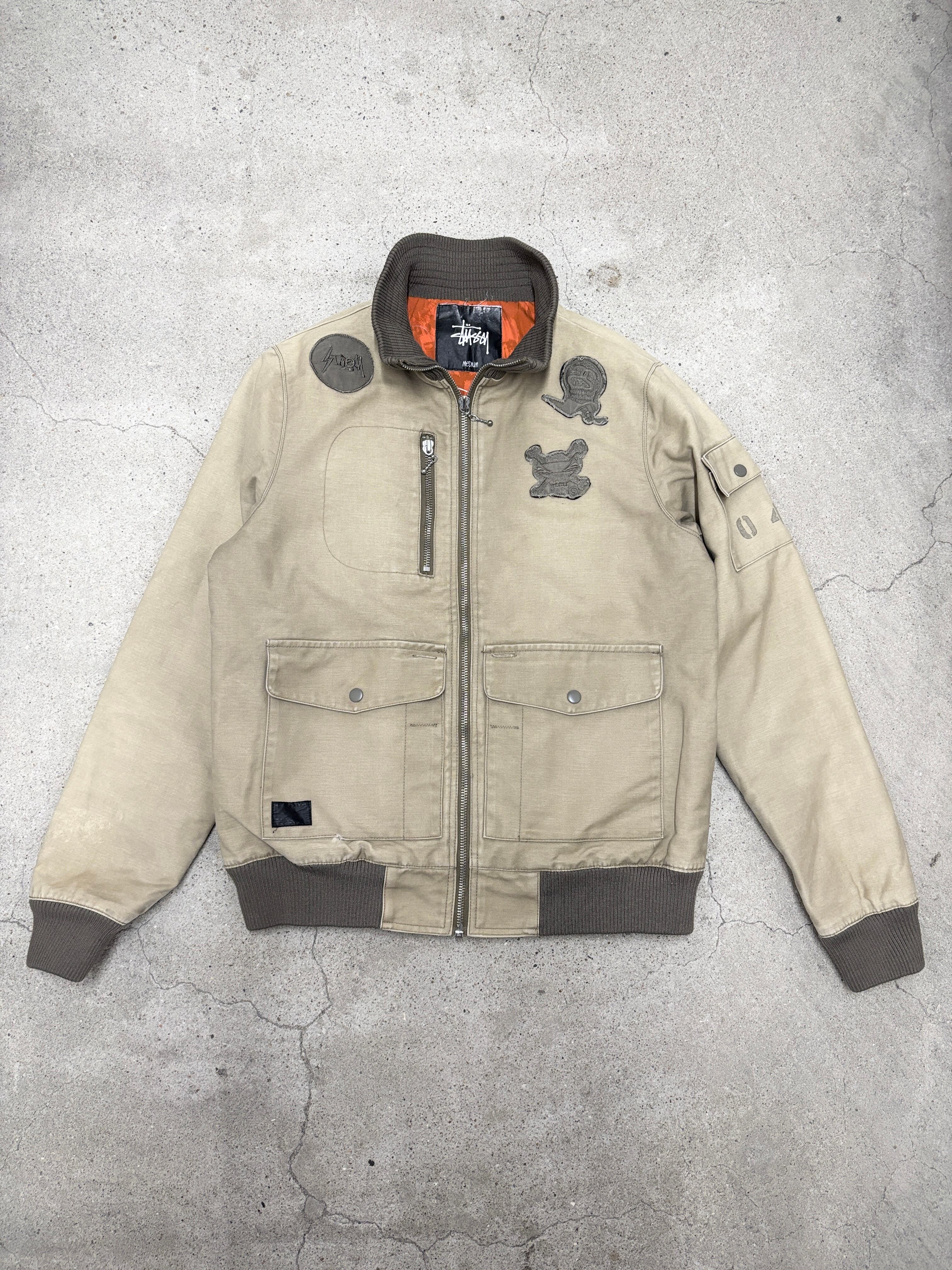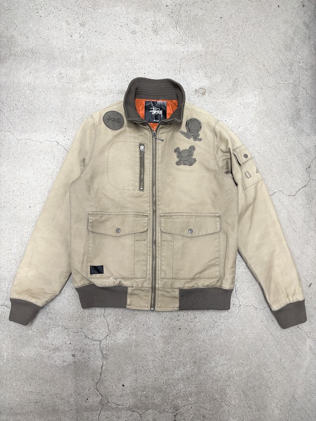 00~10s STUSSY × KOSTAS SEREMENTS/TANKERS Jacket/M/タンカースジャケット/ミリタリージャケット/ワッペン/ベージュ/コスタス セレメンティスコラボ/ステューシー/オールドステューシー/古着/ア-カイブ