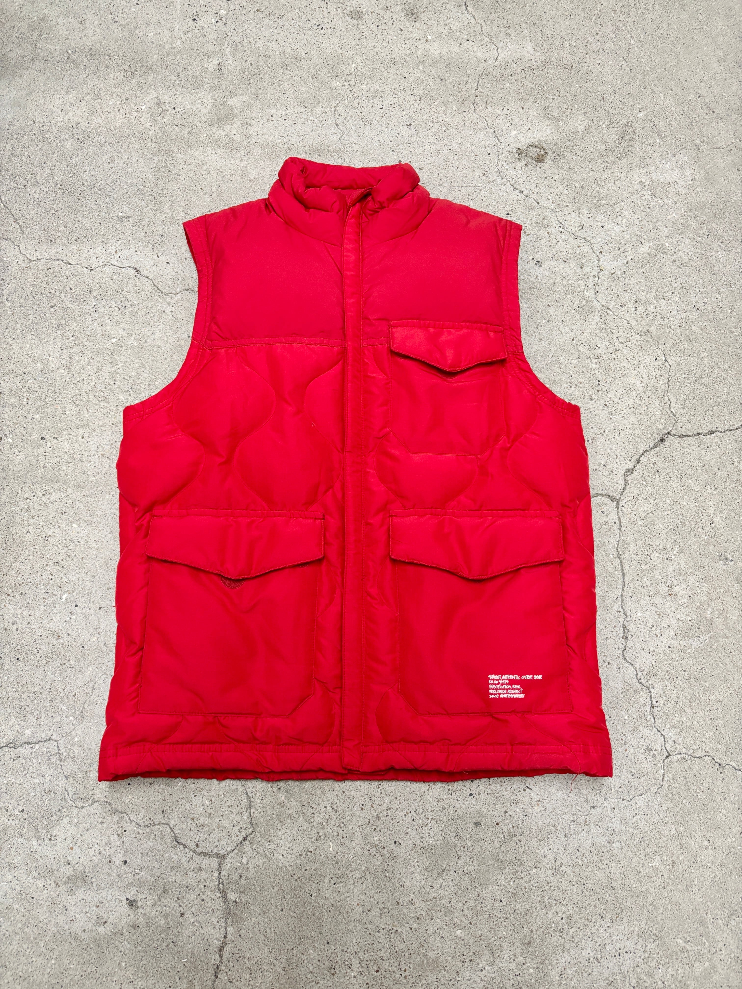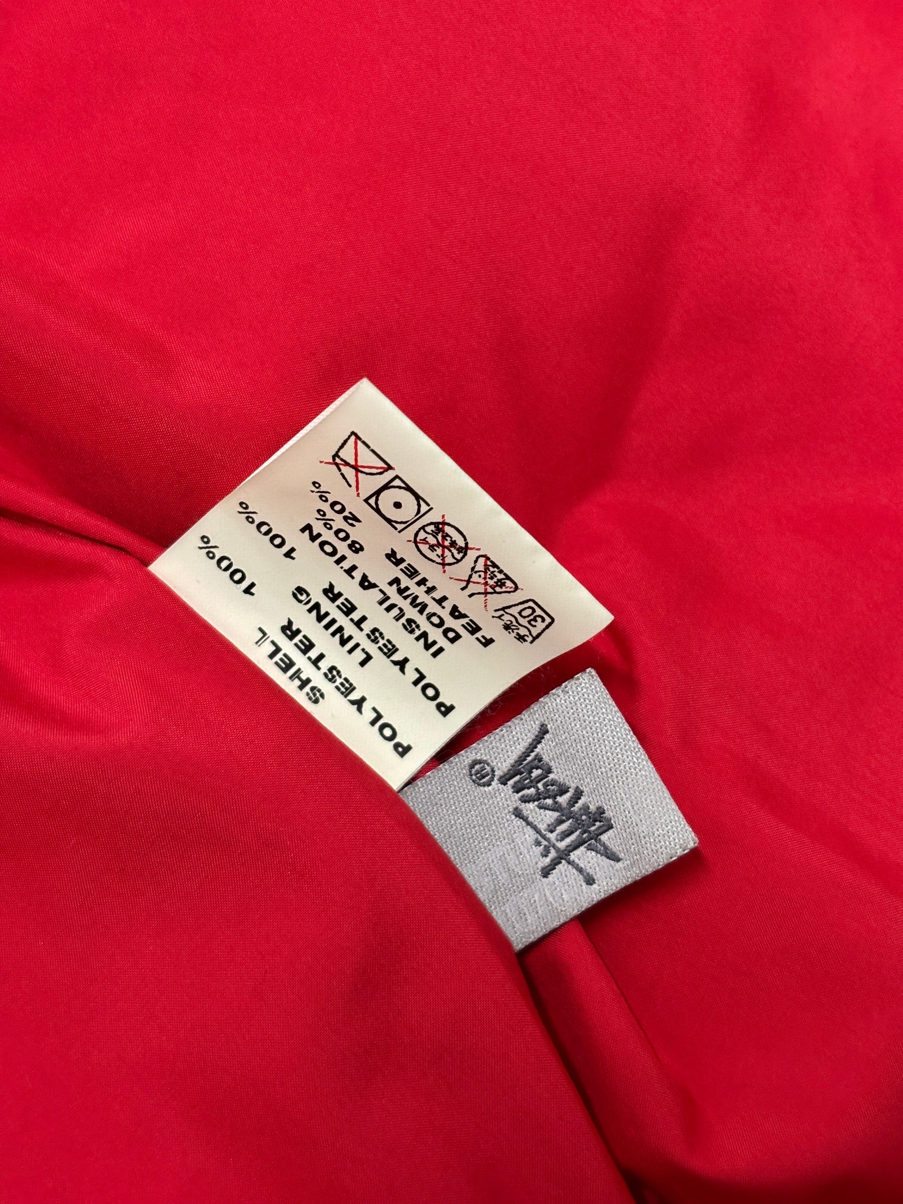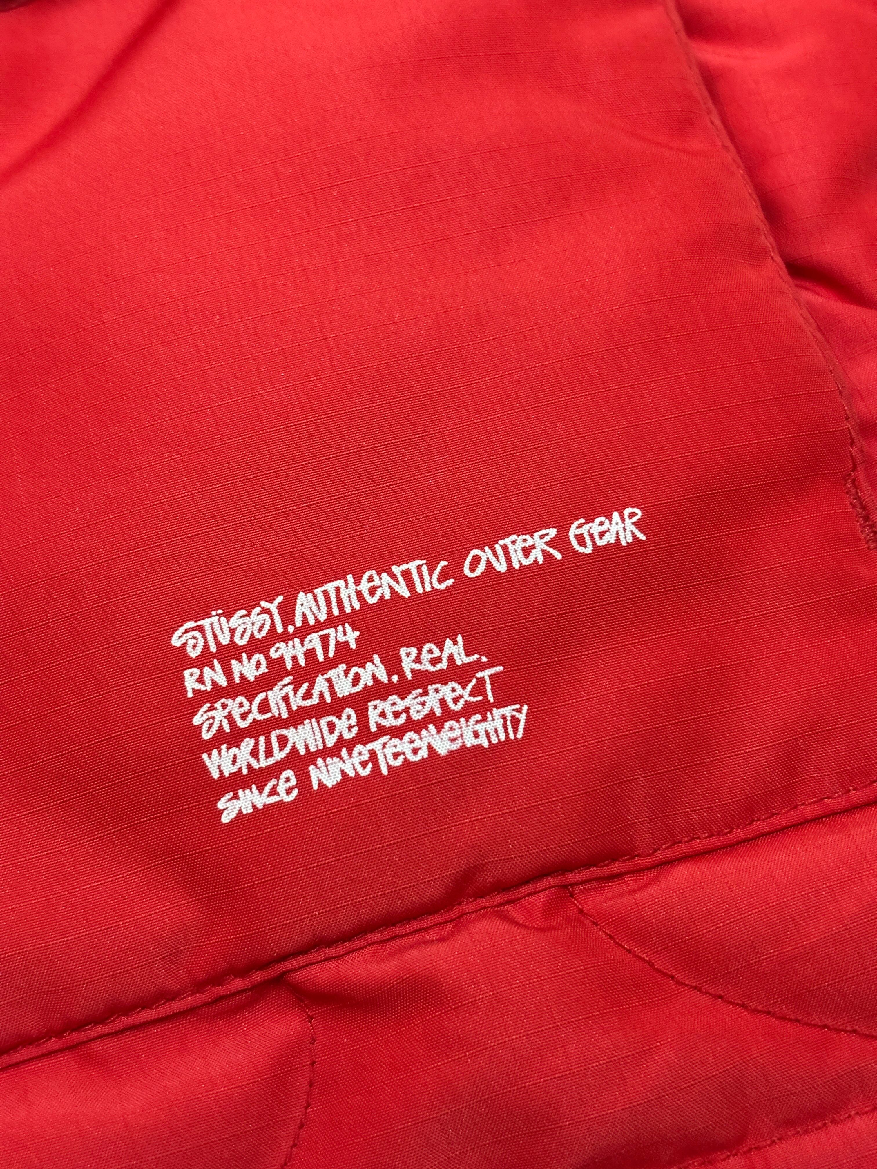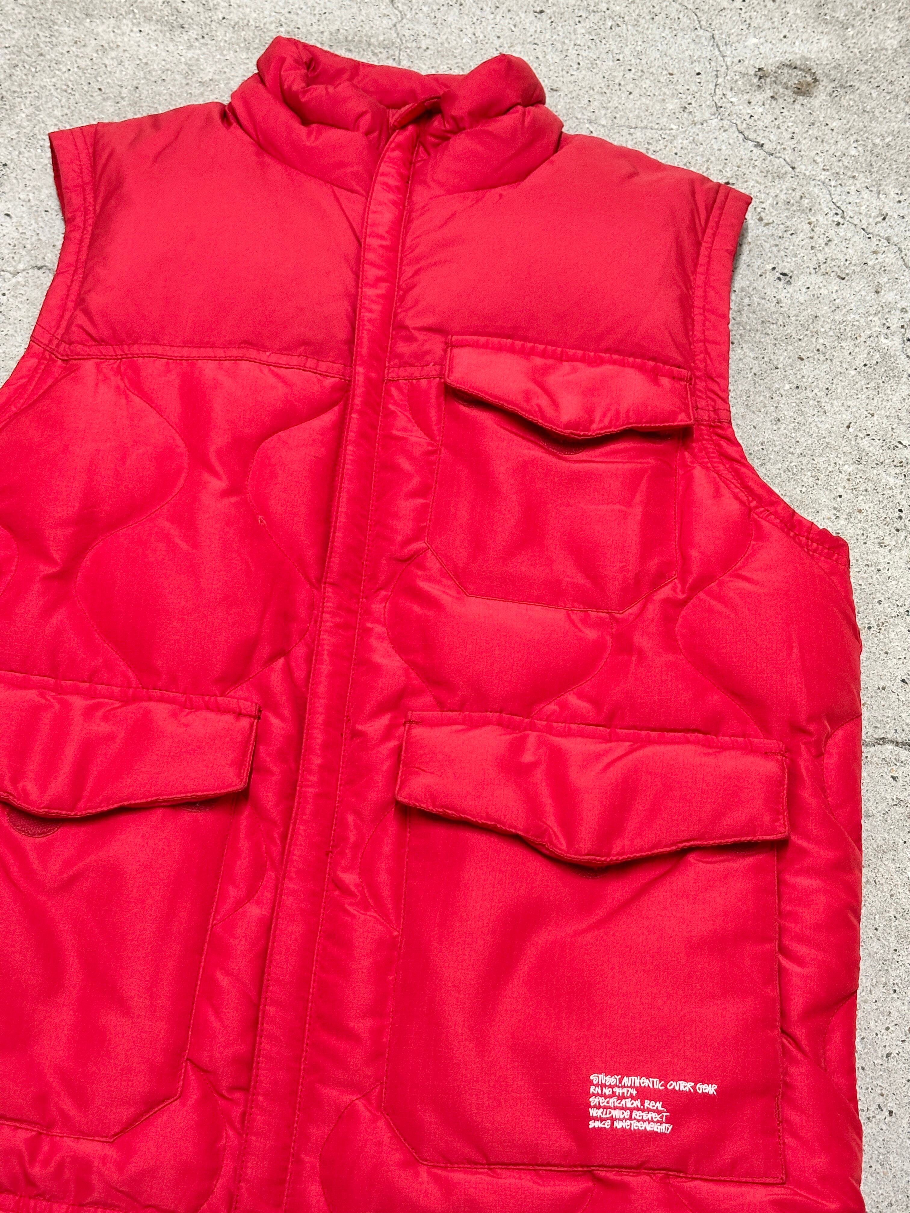 00~10s STUSSY/OUTER GEAR Down Vest/S/ダウンベスト/ロゴプリント/レッド/ステューシー/オ-ルドステューシー/古着/ア-カイブ