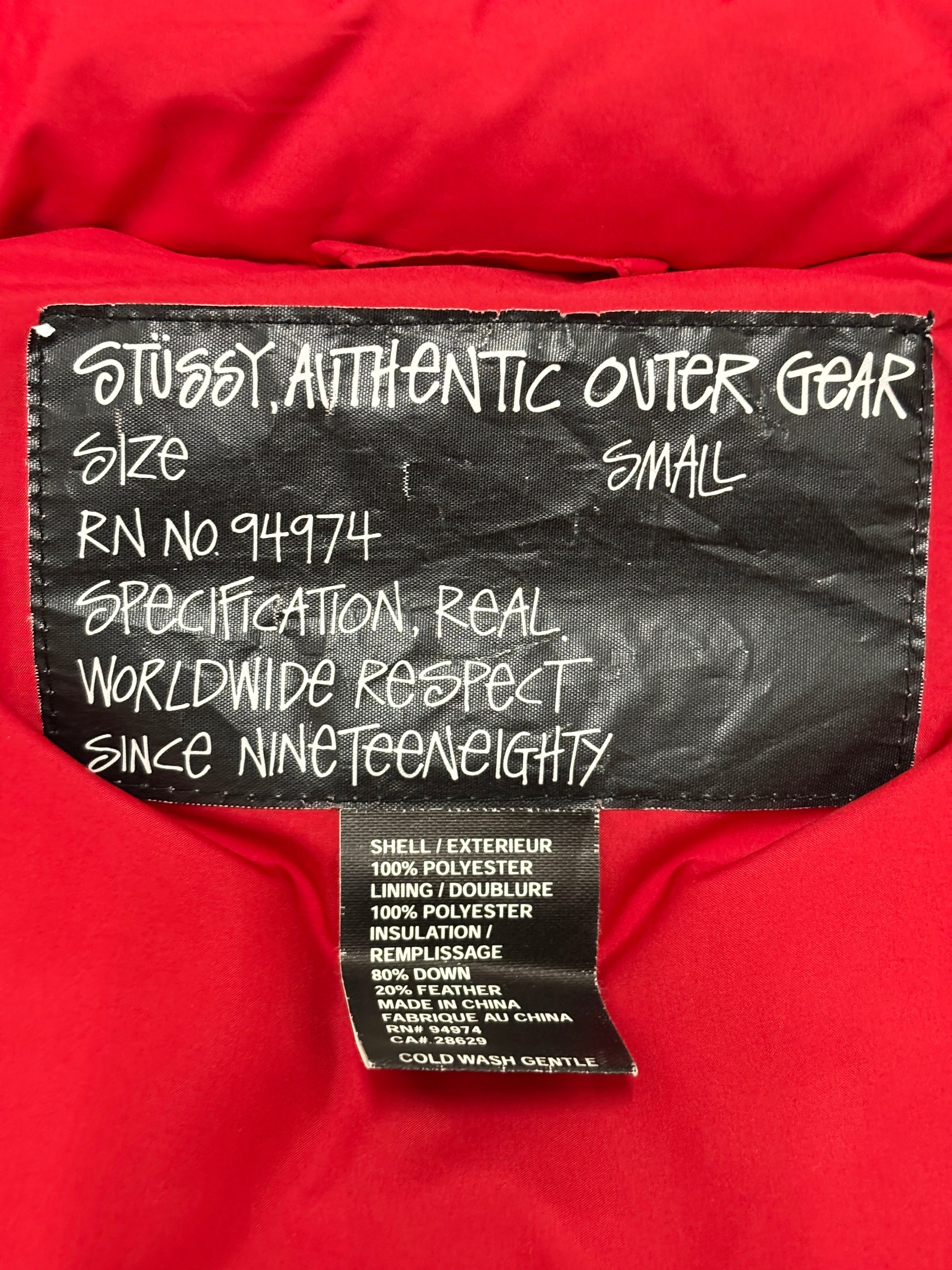 00~10s STUSSY/OUTER GEAR Down Vest/S/ダウンベスト/ロゴプリント/レッド/ステューシー/オ-ルドステューシー