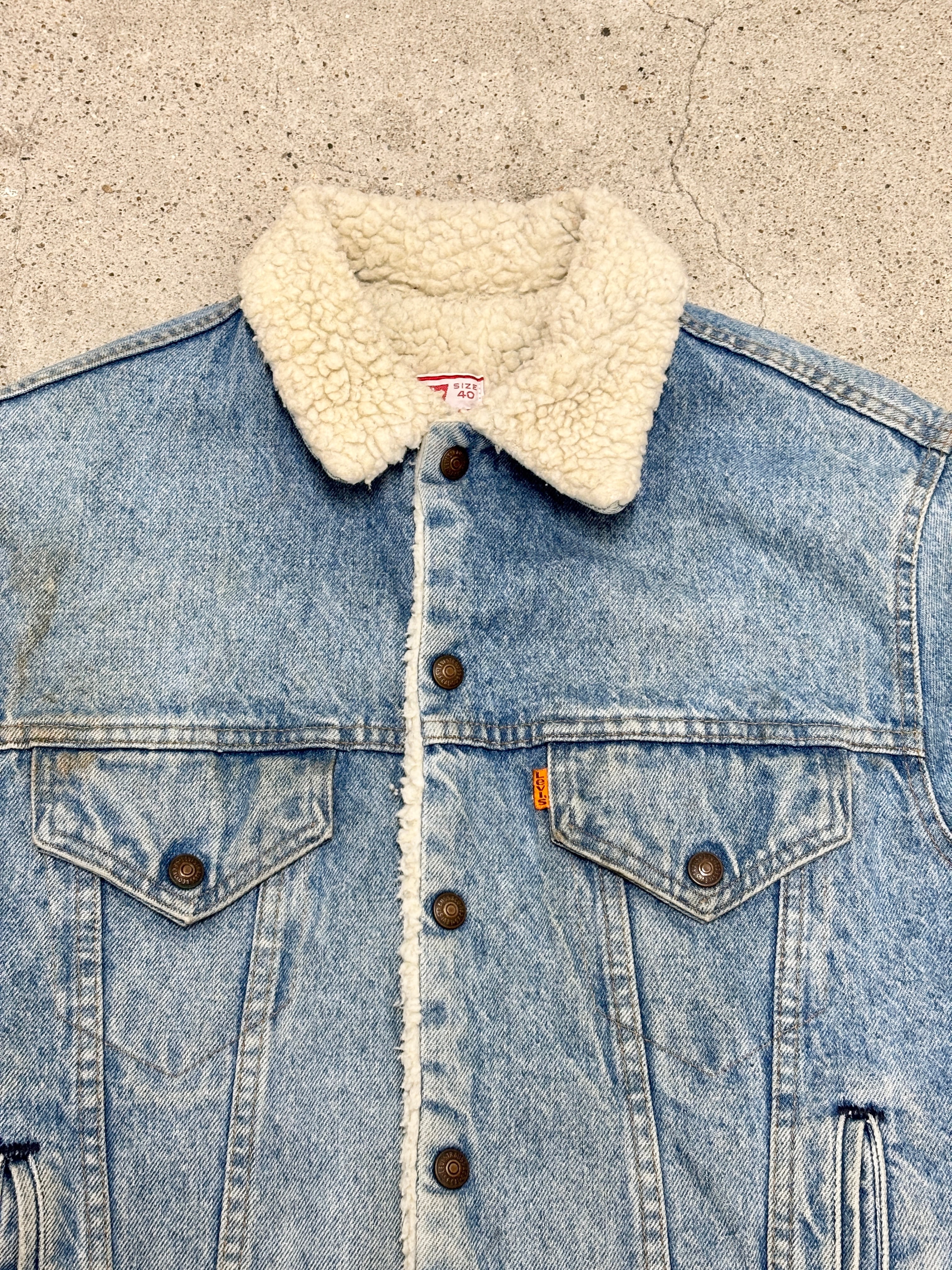 70s Levi`s/Denim Boa Jacket/オレンジタブ/40/デニムボアジャケット/トラッカージャケット/Gジャン/アイスブル-/リ-バイス/アメカジ/古着