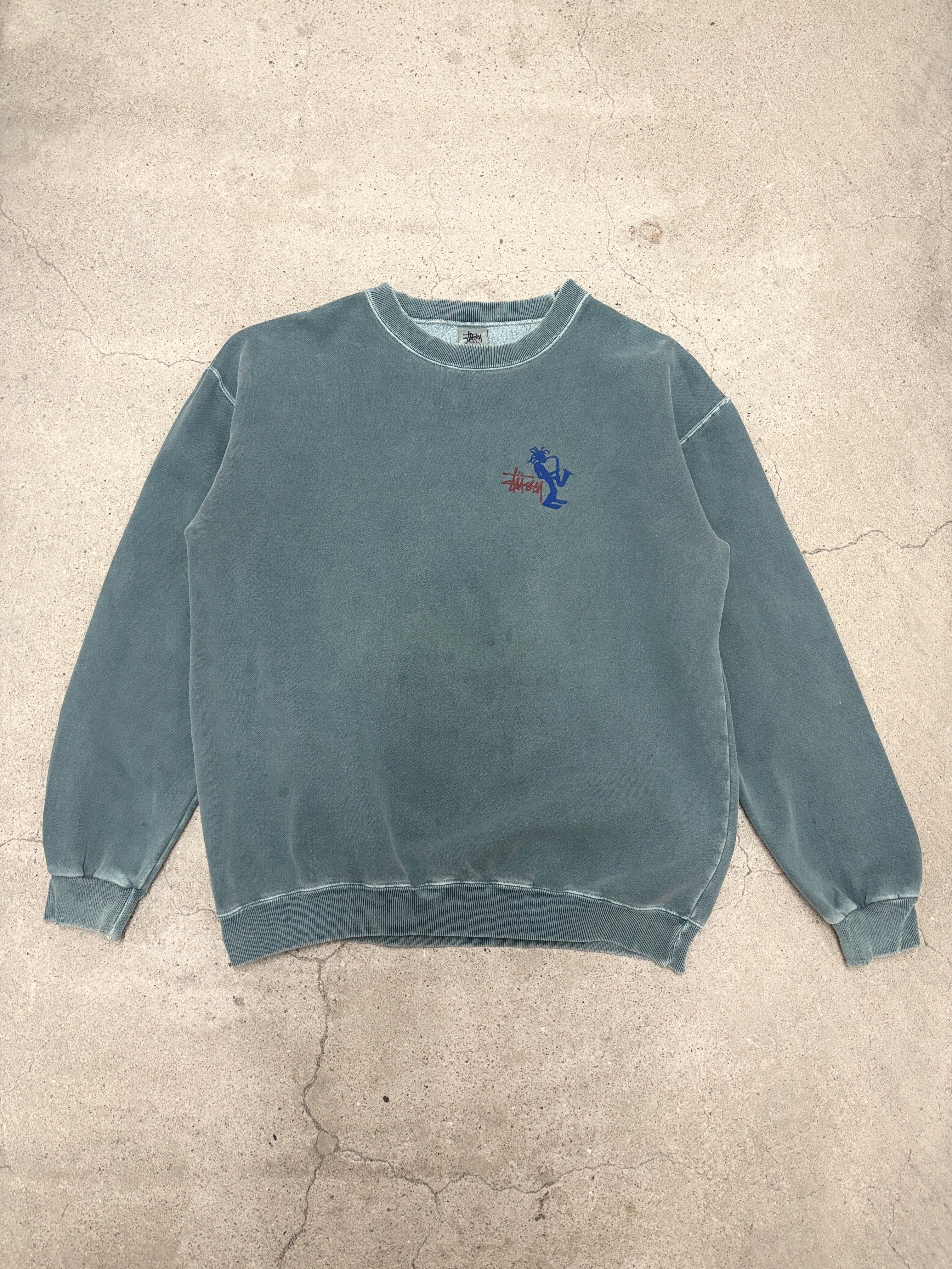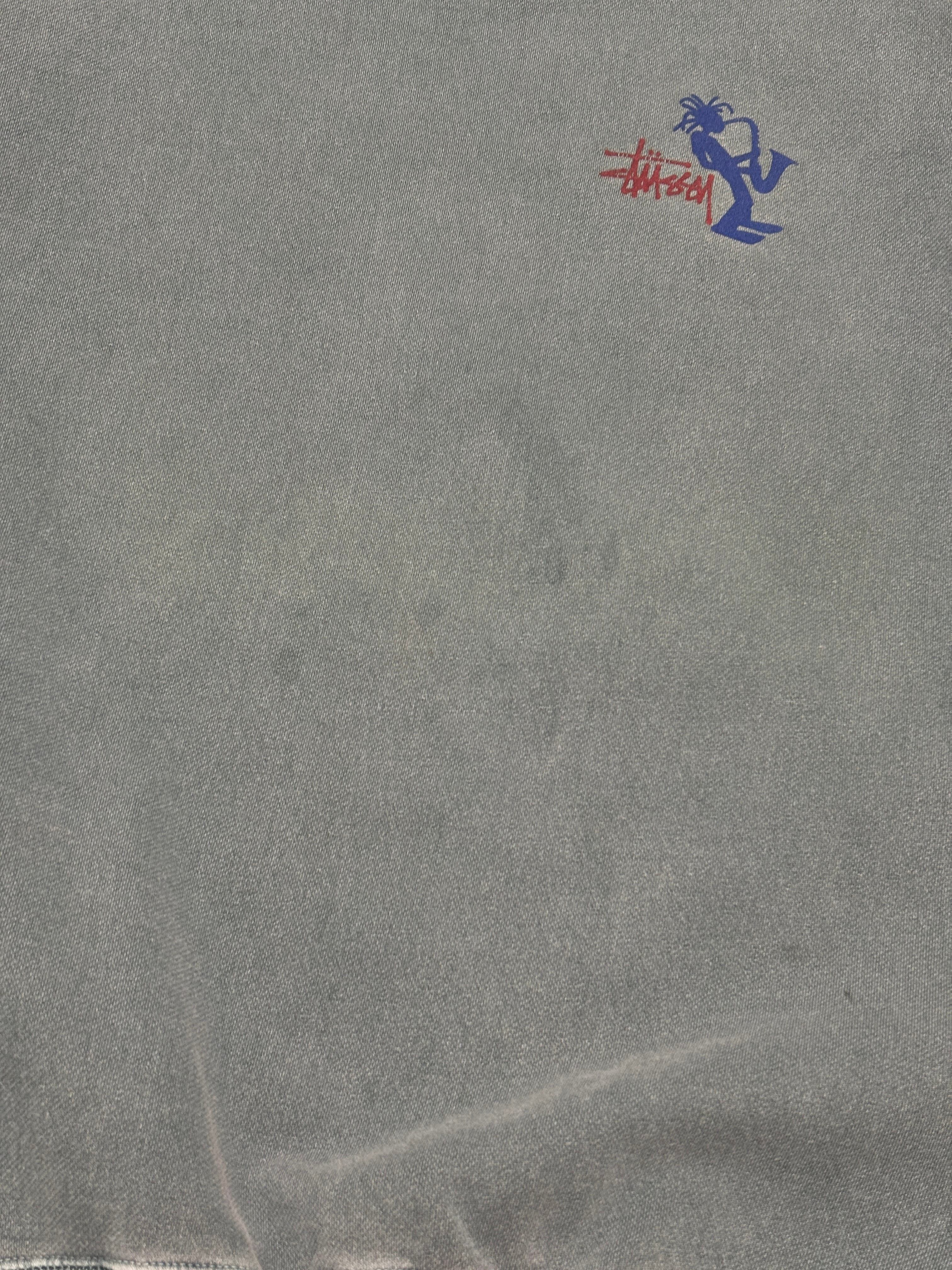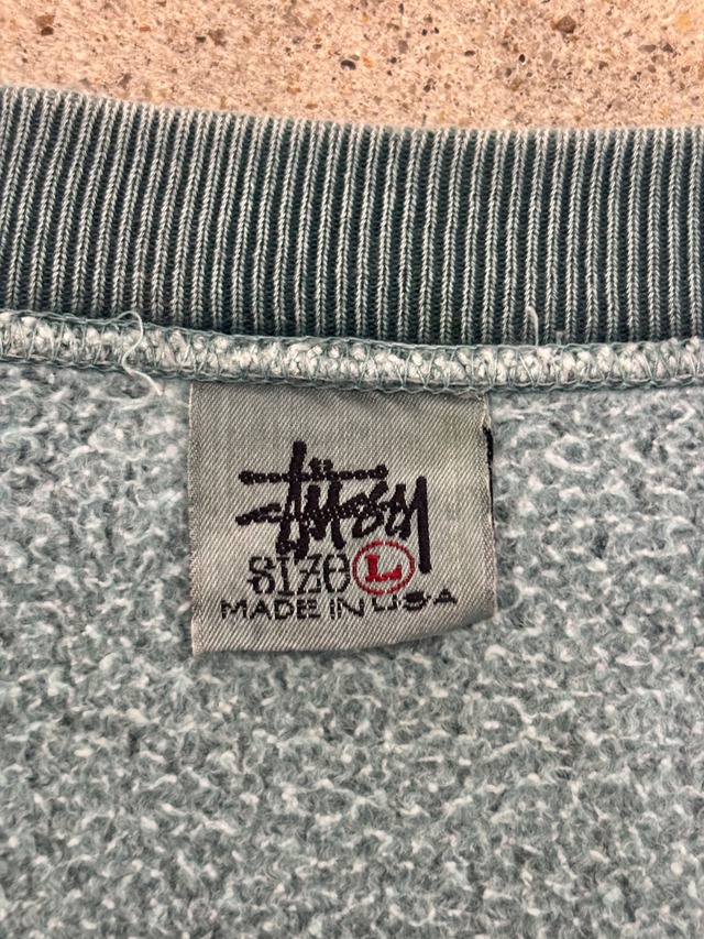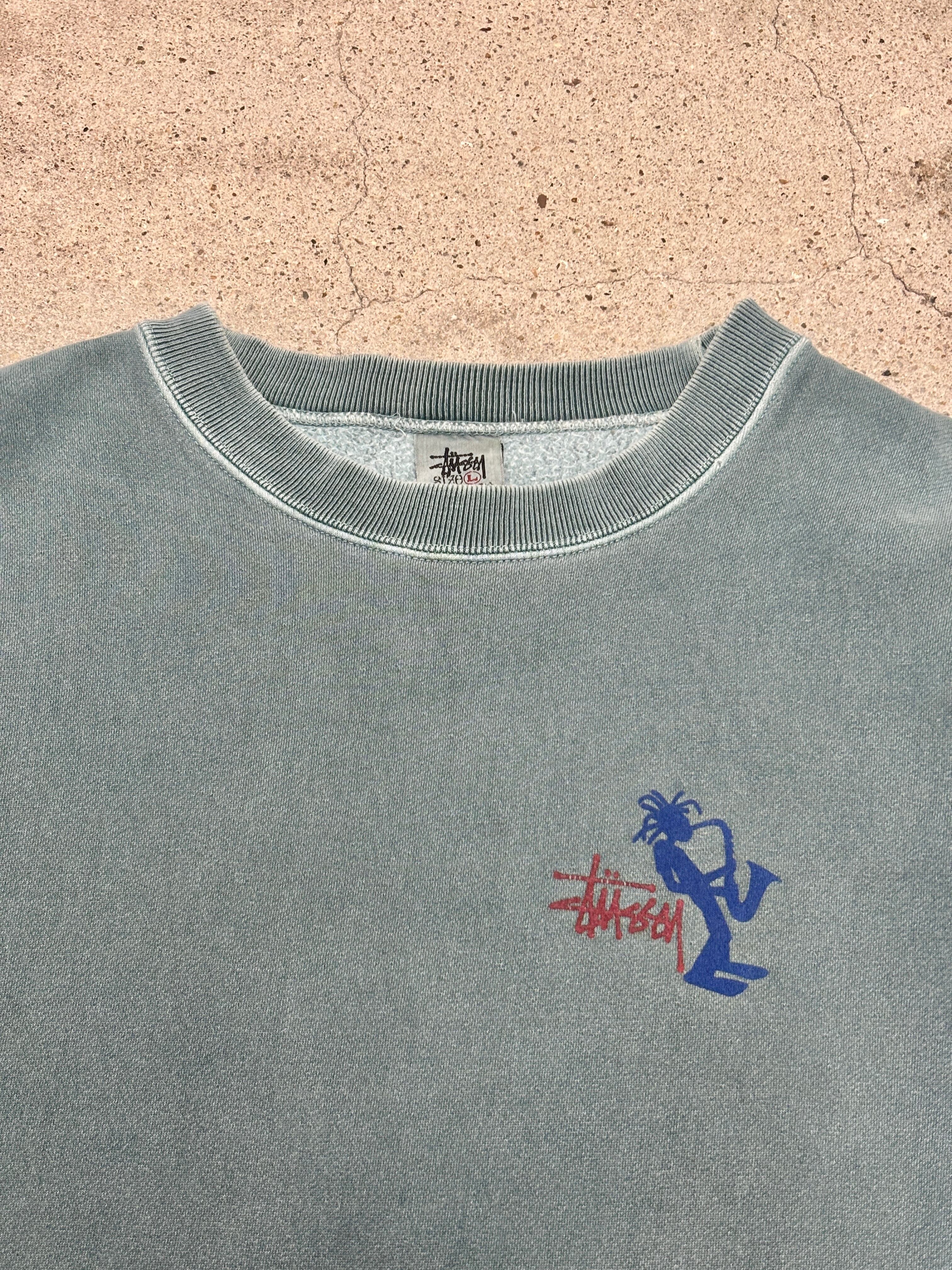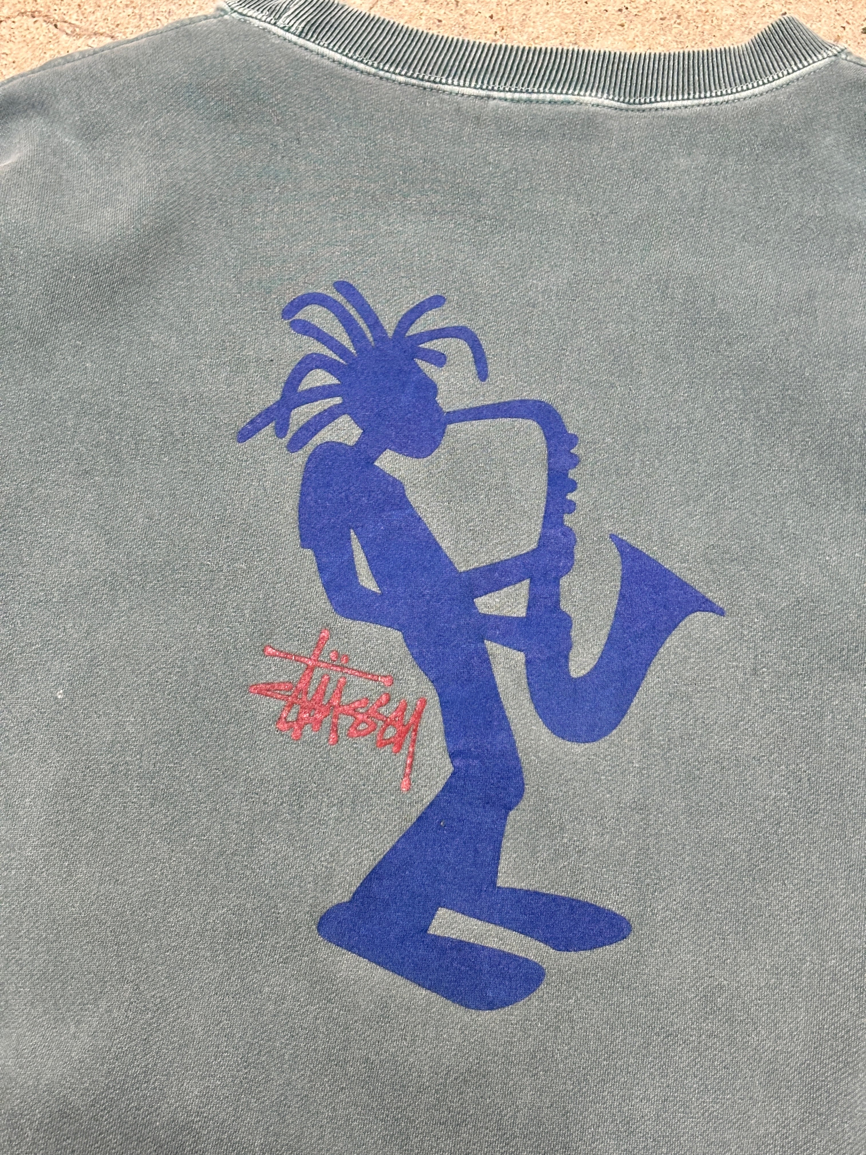 90s OLD STUSSY/Jazz Shadowman print Sweat/USA製/白タグ/L/ジャズシャド-マンプリントスウェット/ロゴプリント/ストックロゴ/グリ-ン/グレ-/ステューシー/オ-ルドステューシー