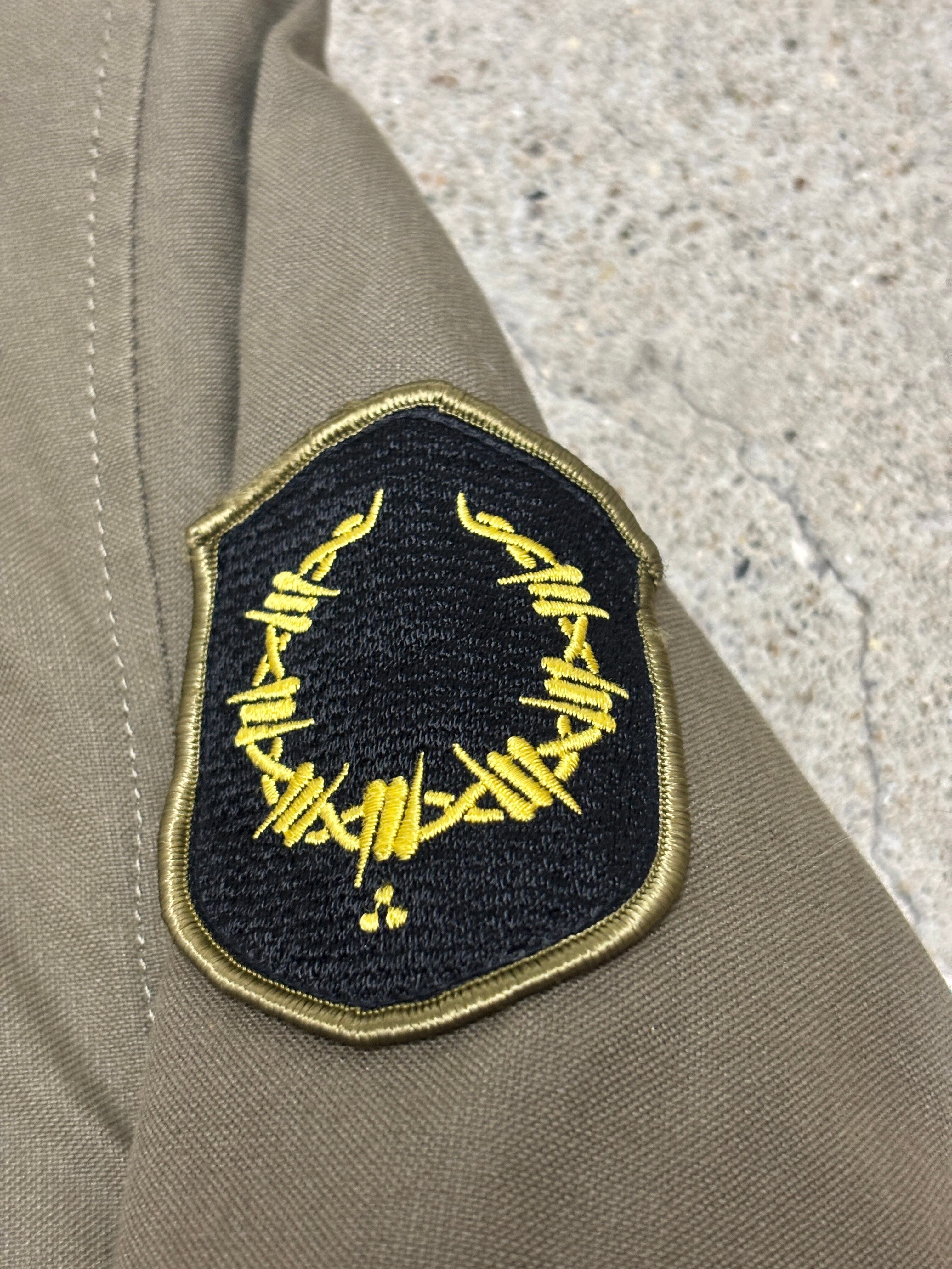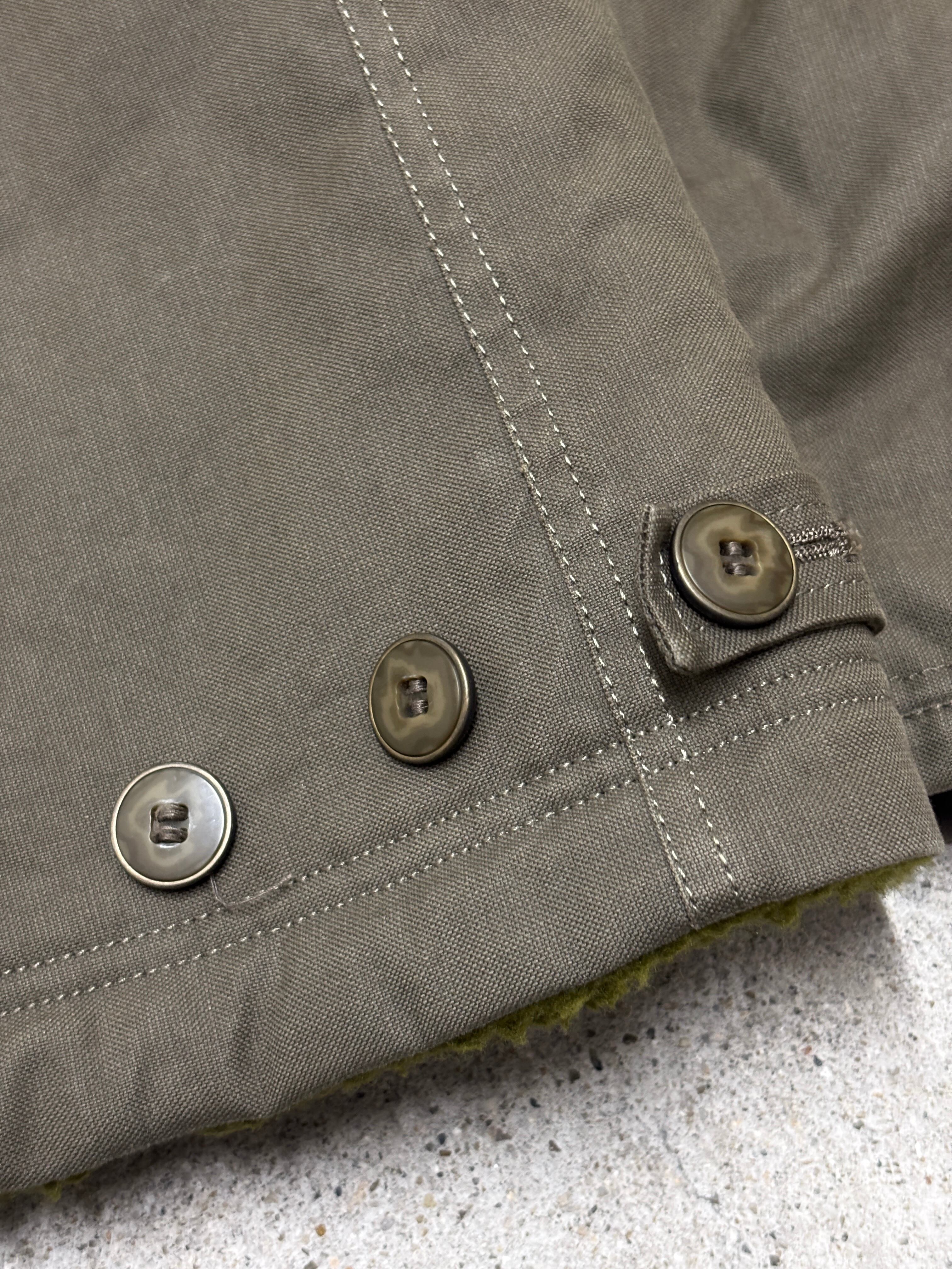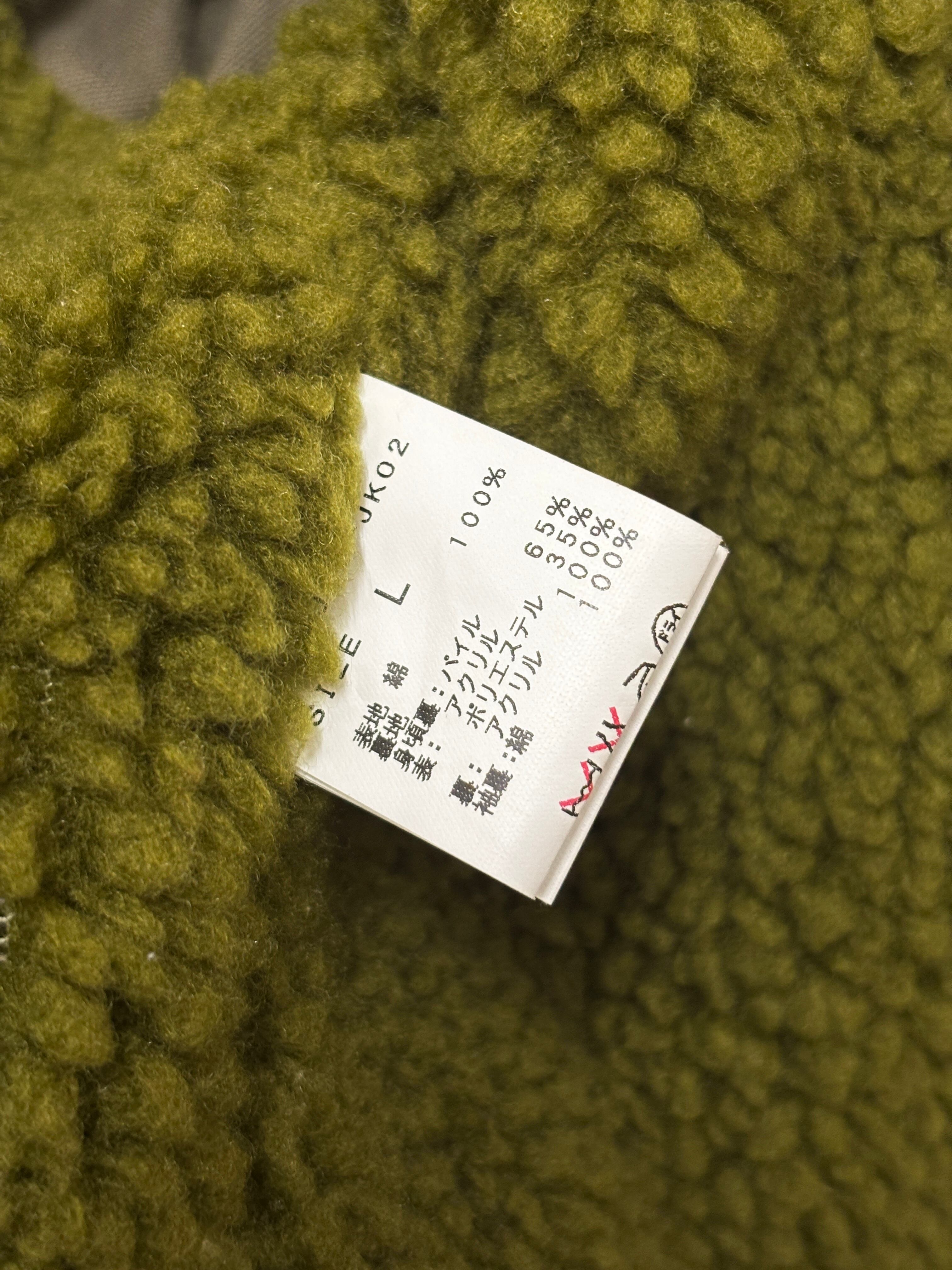 00s RECON/DECK Jacket/日本製/L/デッキジャケット/ロゴプリント/ロゴワッペン/有刺鉄線/ミリタリージャケット/ボア/カ-キ/FUTURA/STASH/リ-コン