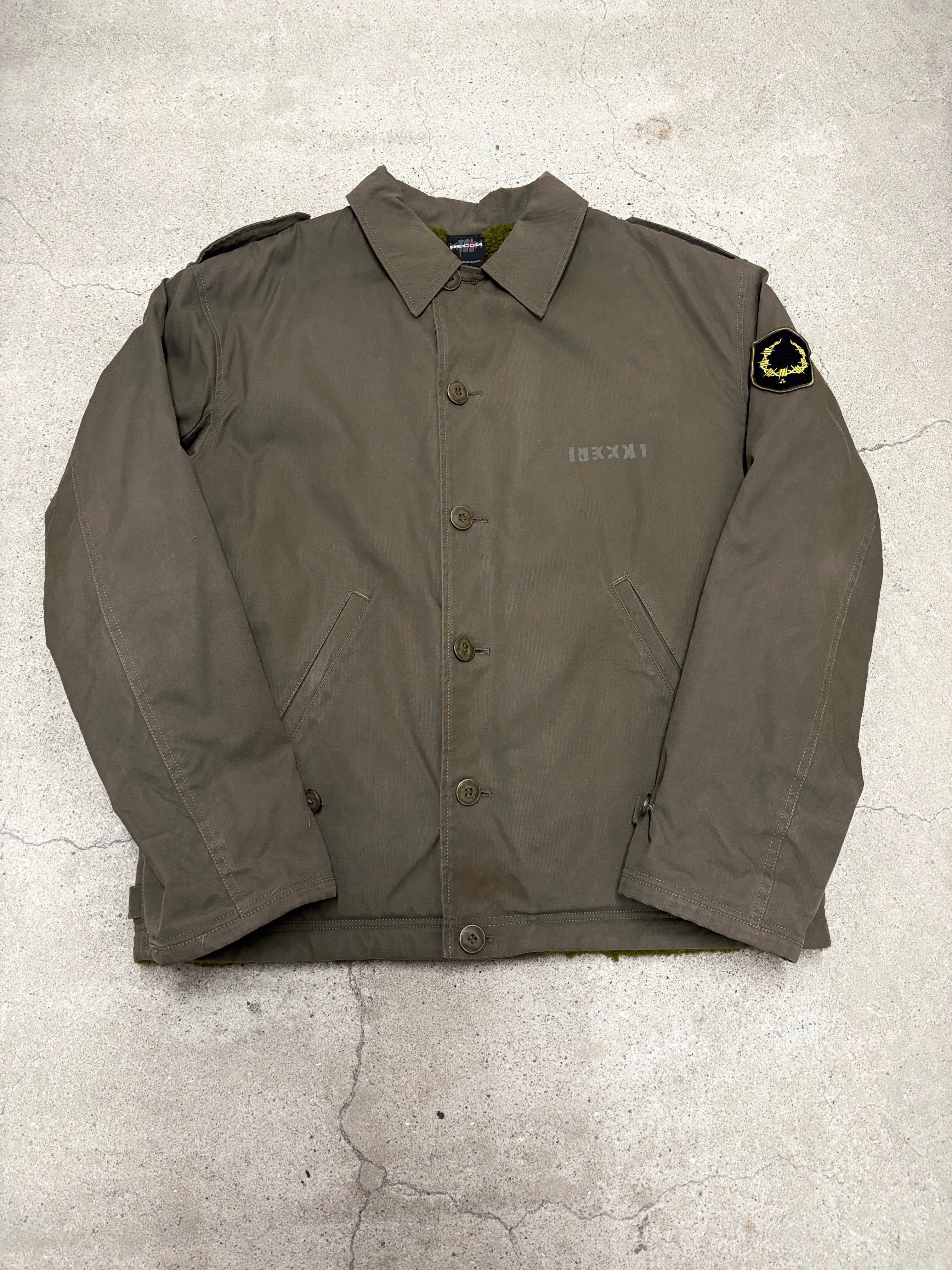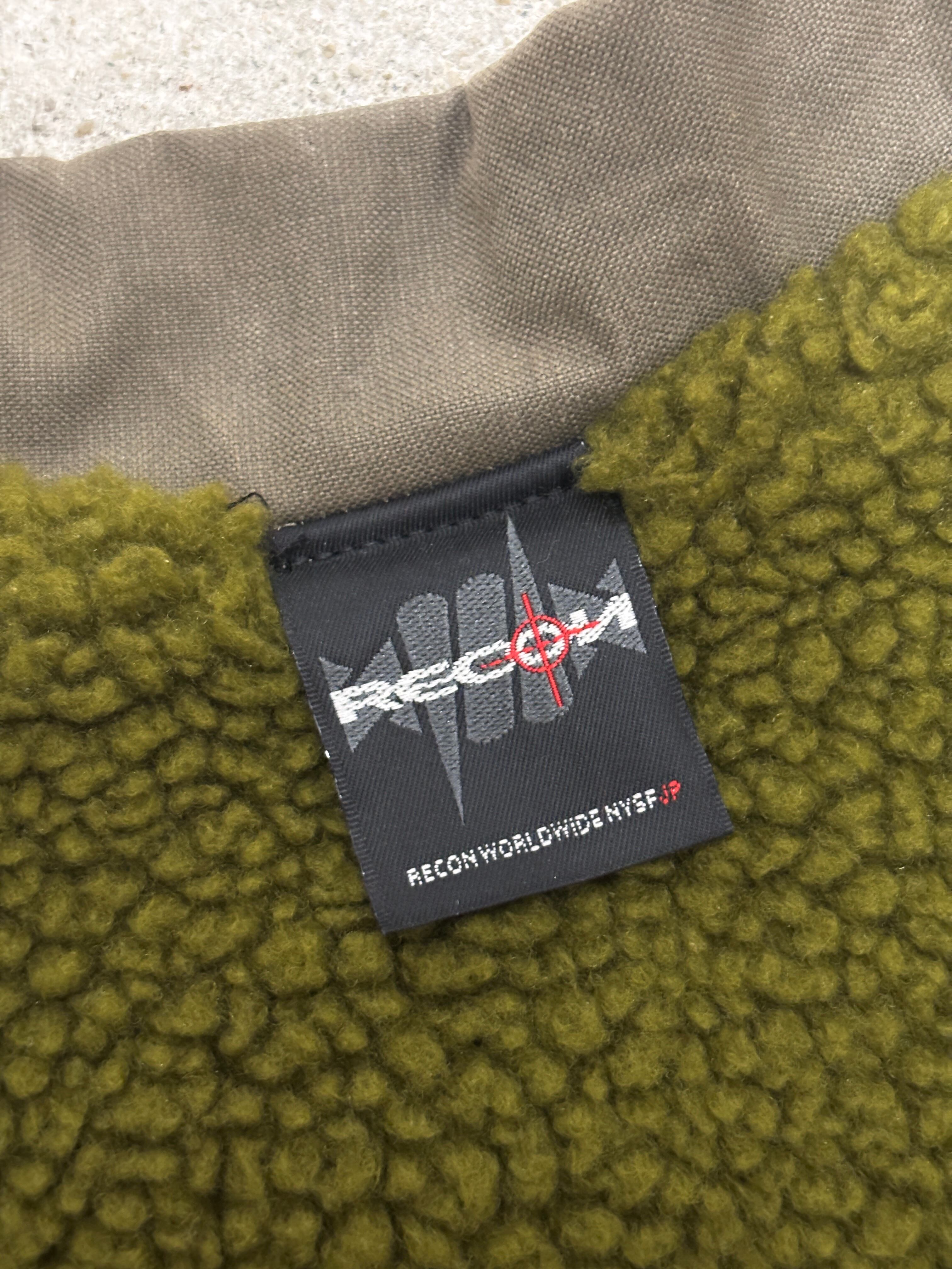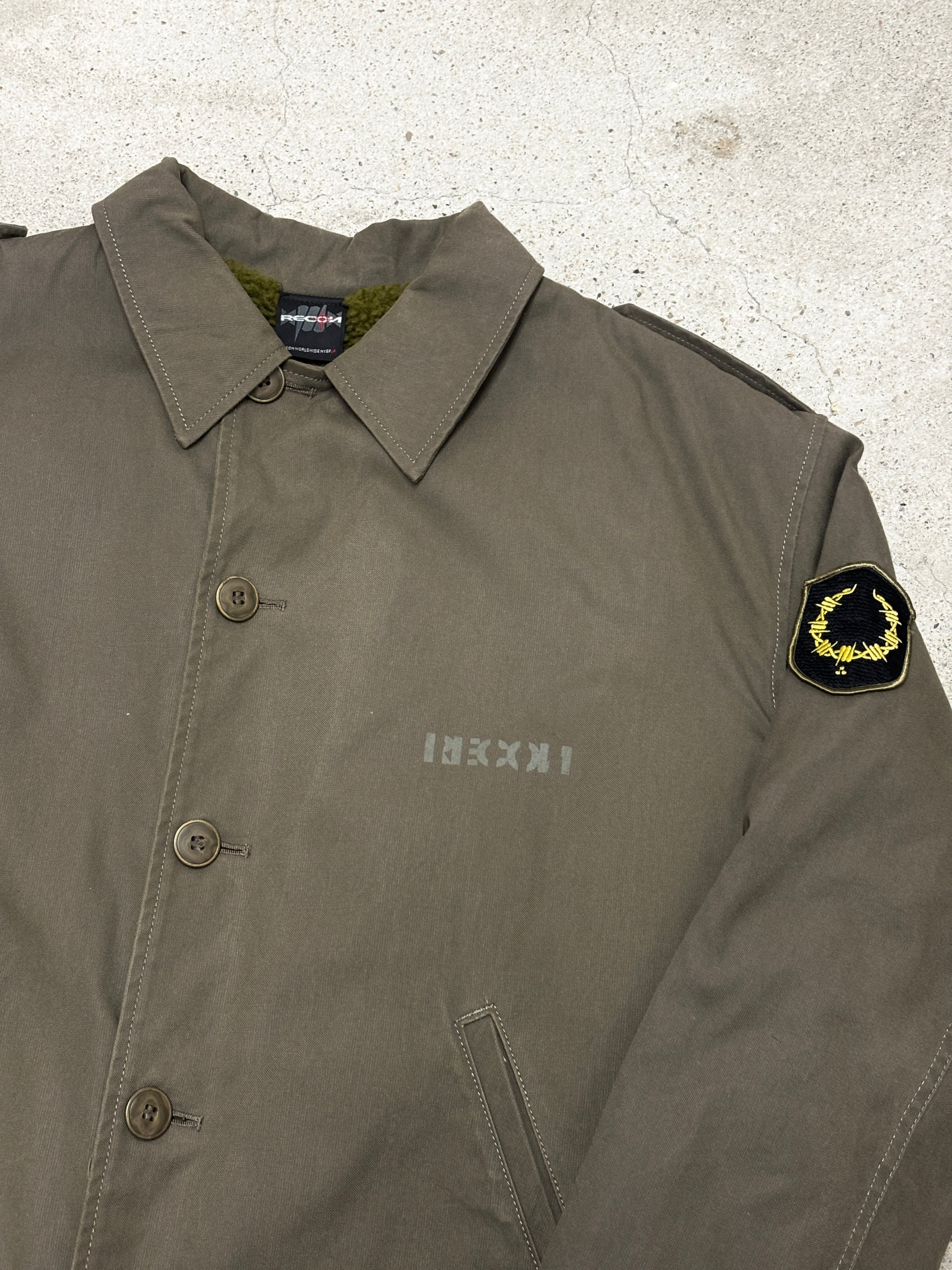 00s RECON/DECK Jacket/日本製/L/デッキジャケット/ロゴプリント/ロゴワッペン/有刺鉄線/ミリタリージャケット/ボア/カ-キ/FUTURA/STASH/リ-コン/古着/ア-カイブ