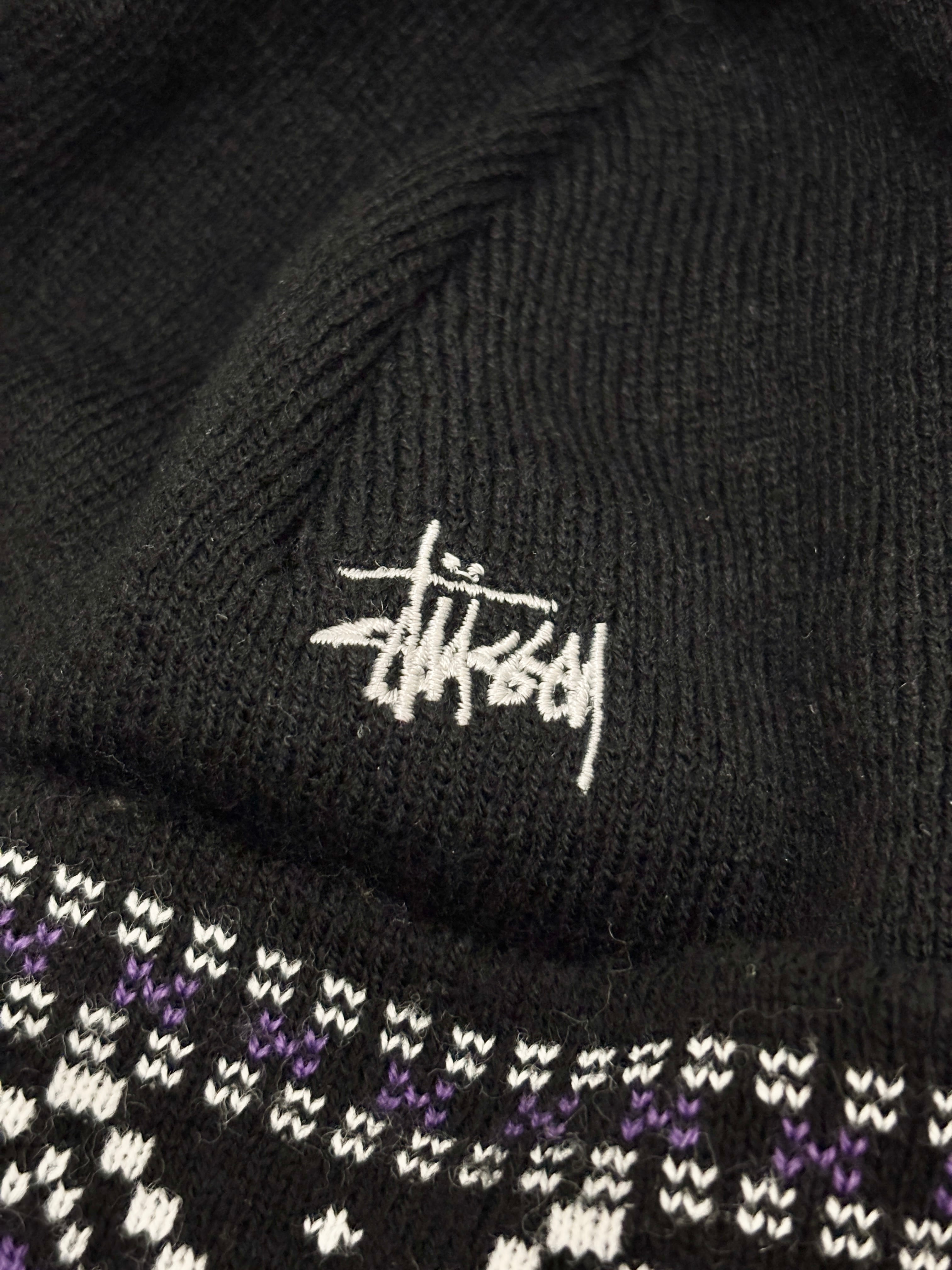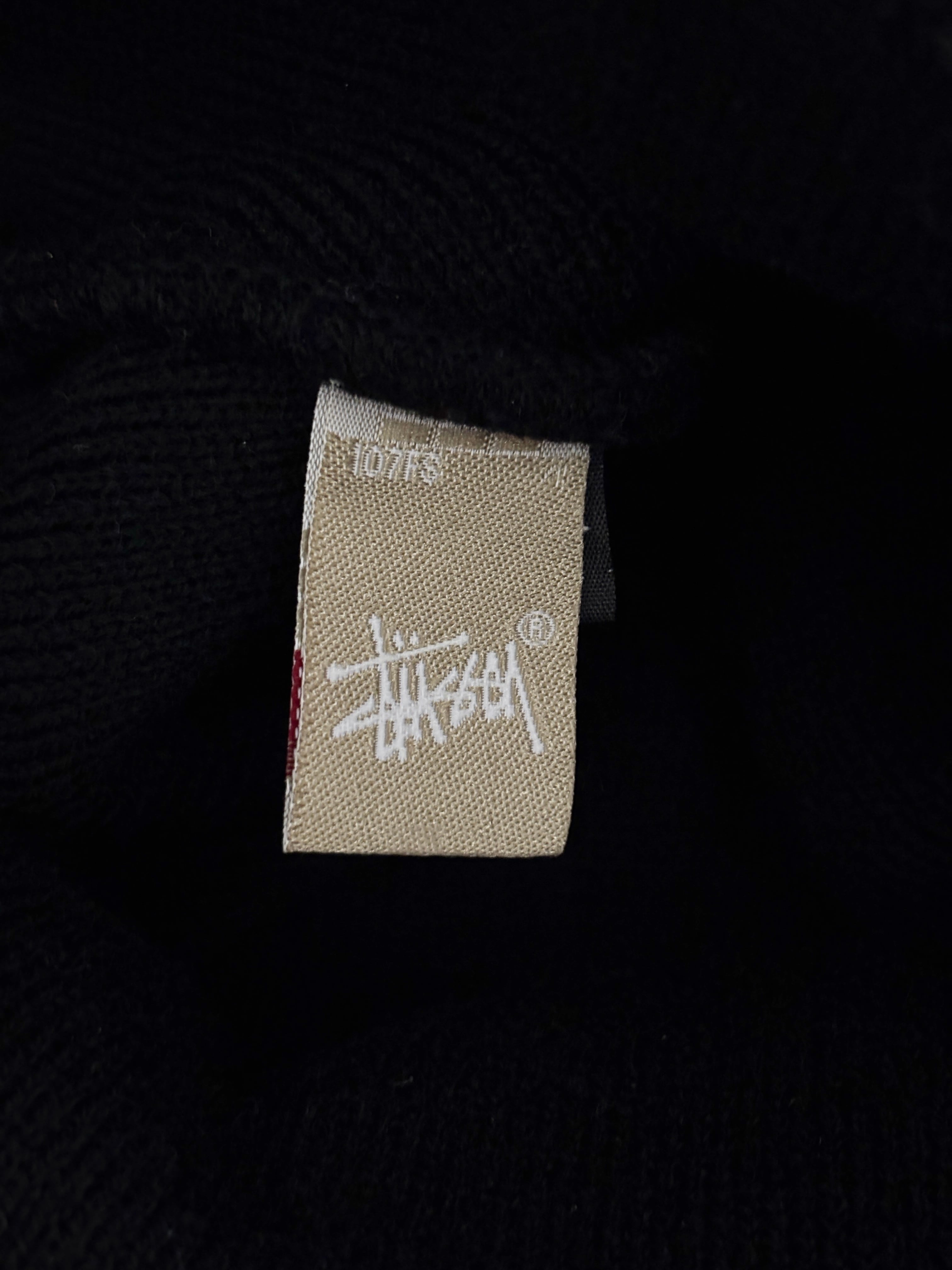 00s STUSSY/Bon Bon Beanie/Free/ビ-ニ-/ボンボンニット帽/刺繍ロゴ/ストックロゴ/ブラック/ステューシー/帽子/ア―カイブ