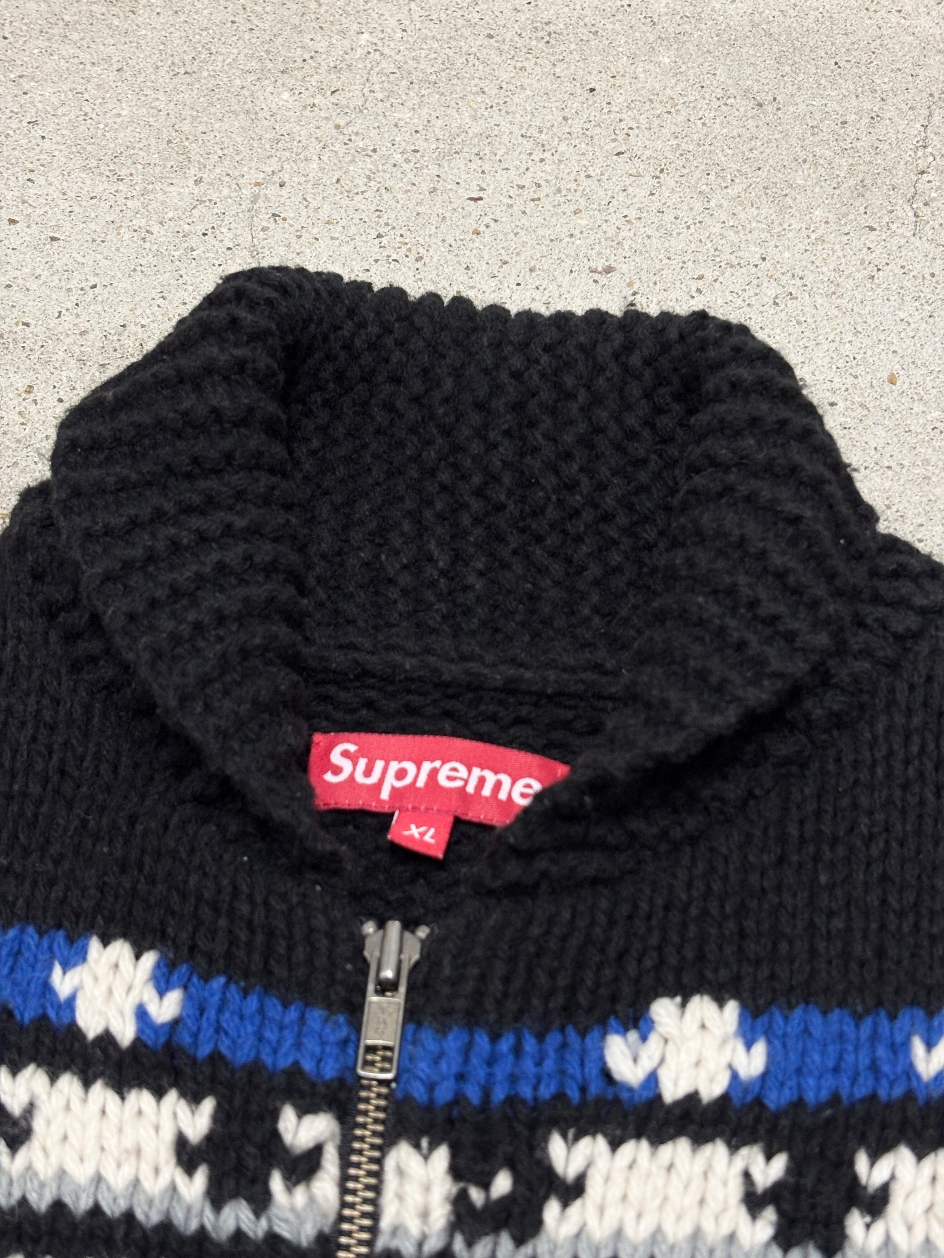 00s SUPREME/Cowichan Cardigan/XL/カウチンニット/カ-ディガン/ネイティブ柄/ネイビ-/シュプリーム