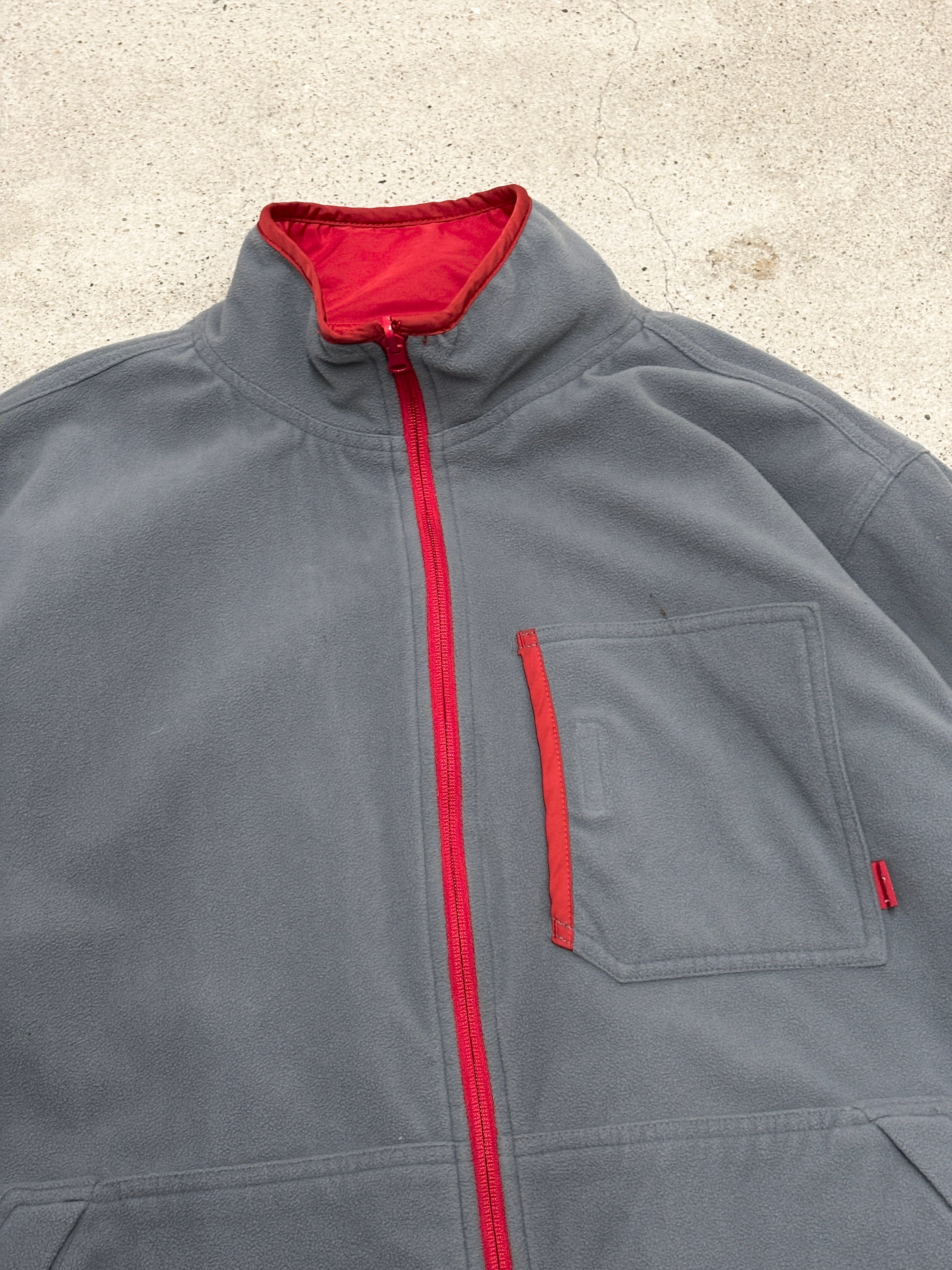 00s OLD STUSSY/Reversible Jacket/紺タグ/L/リバ-シブルジャケット/ナイロン/フリ-ス/ロゴプリント/レッド/グレ-/ステューシー/オ-ルドステューシー/古着/ア-カイブ