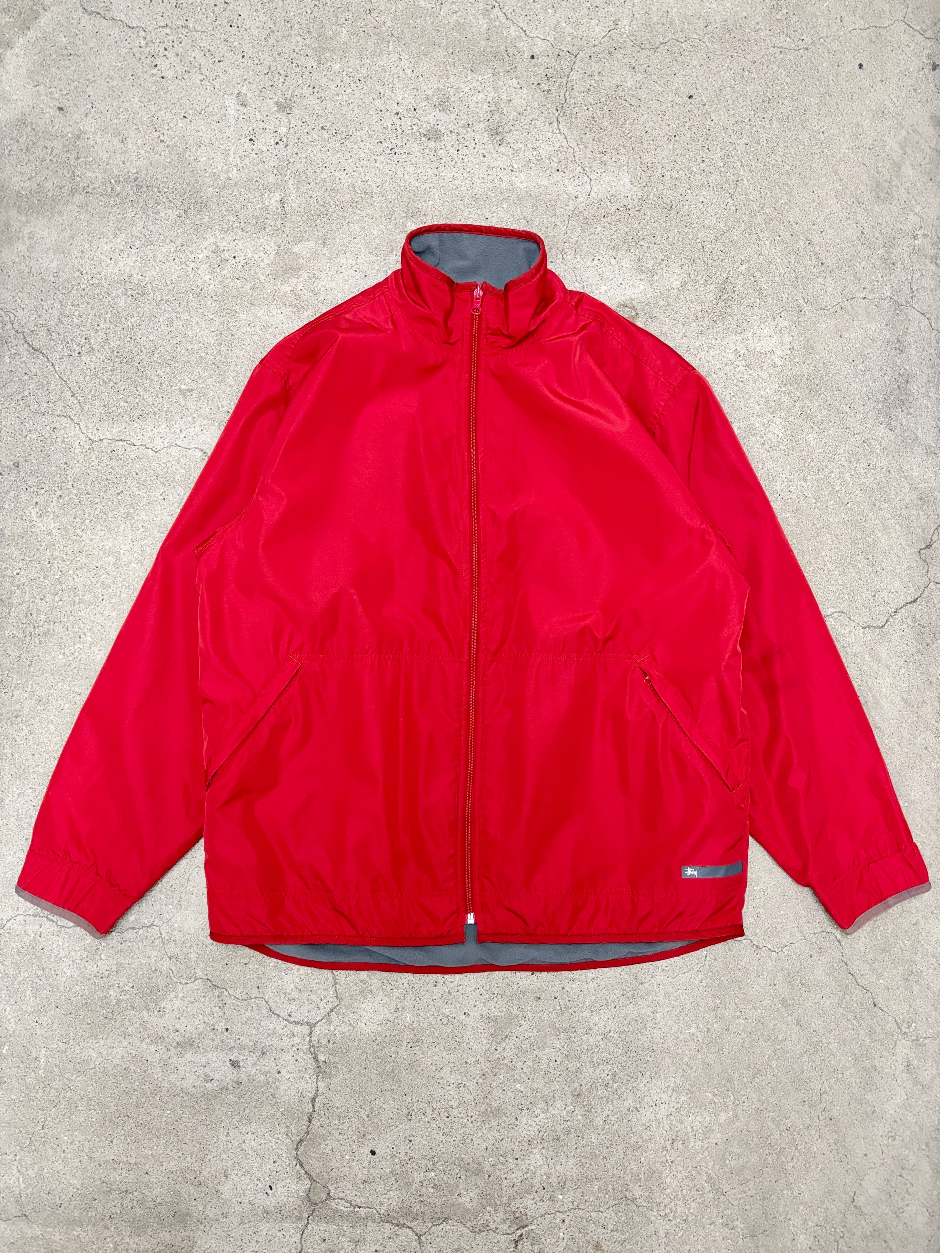 00s OLD STUSSY/Reversible Jacket/紺タグ/L/リバ-シブルジャケット/ナイロン/フリ-ス/ロゴプリント/レッド/グレ-/ステューシー/オ-ルドステューシー