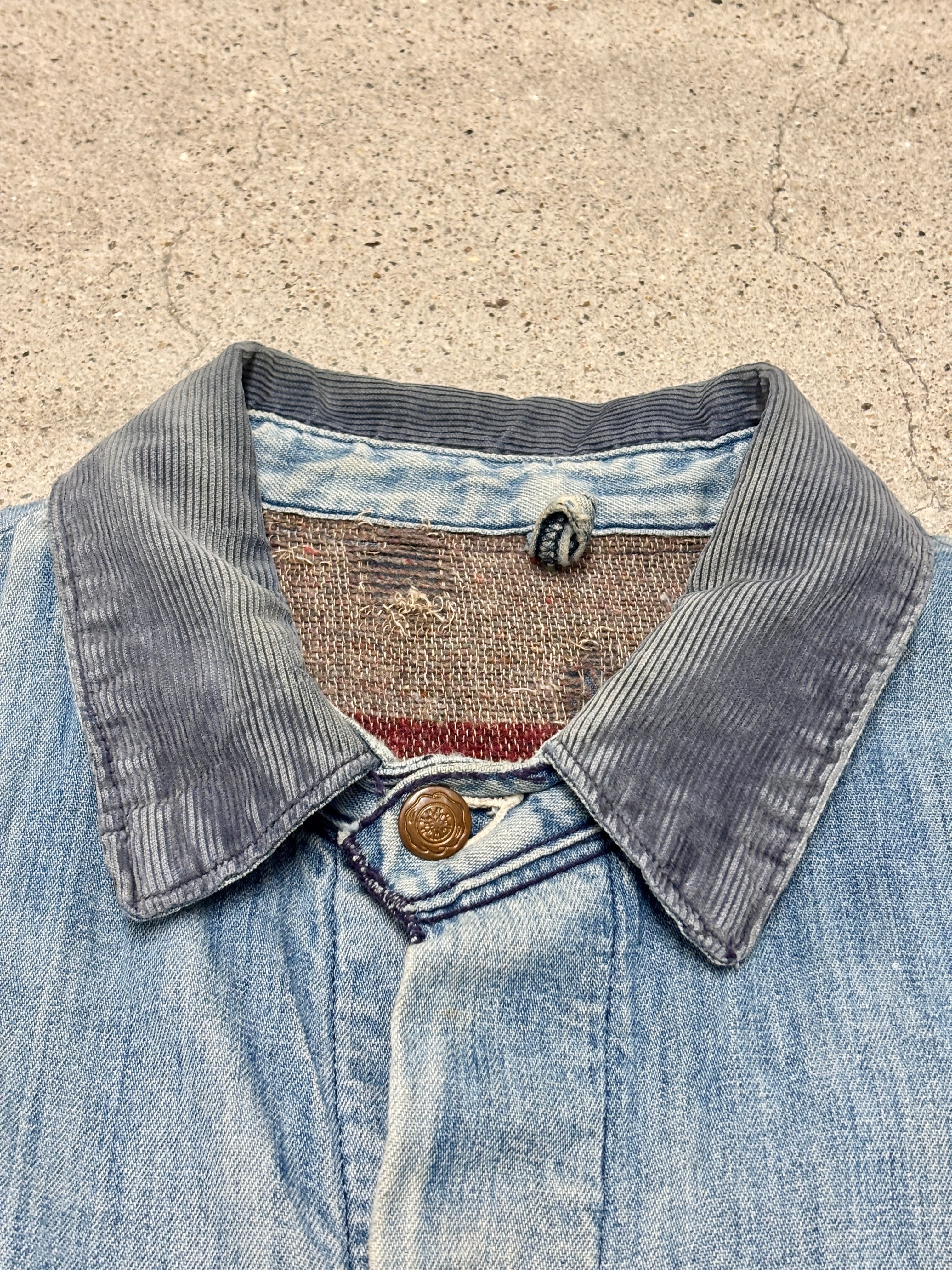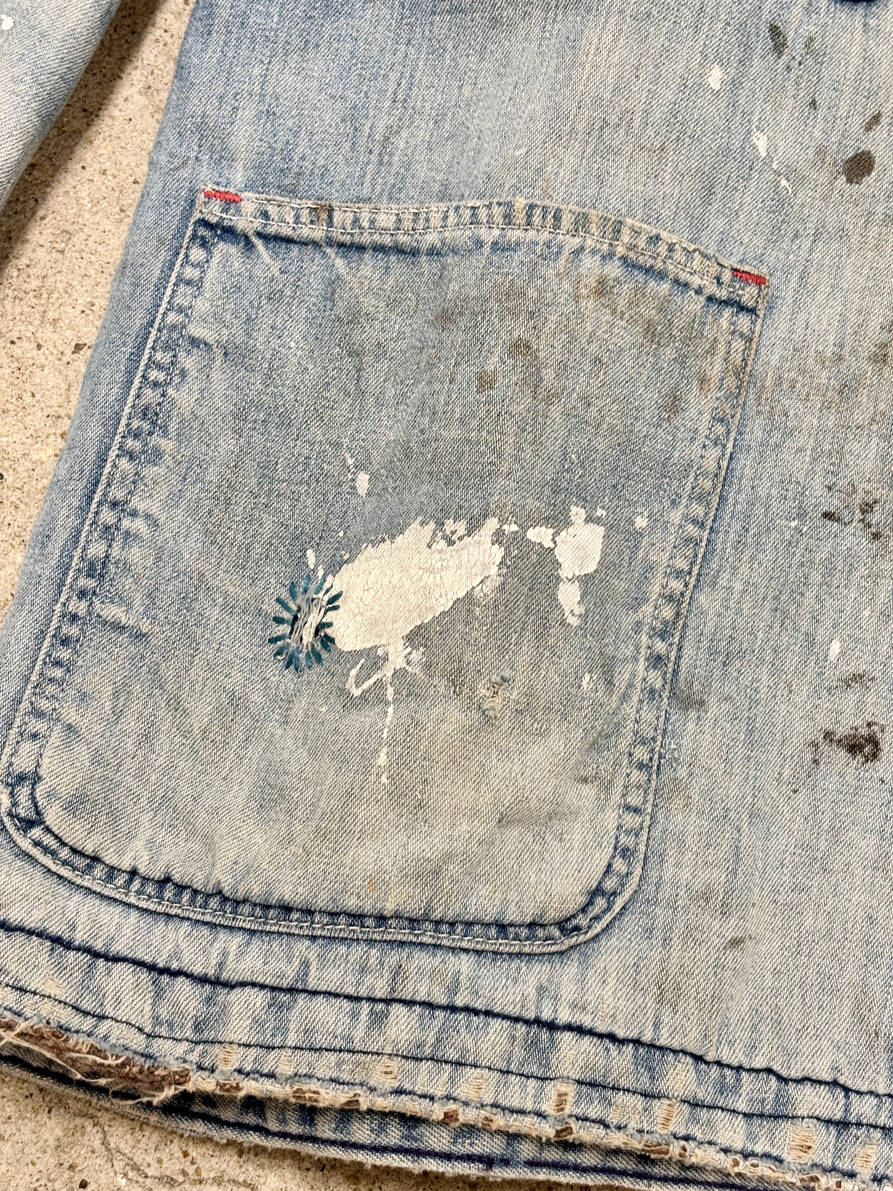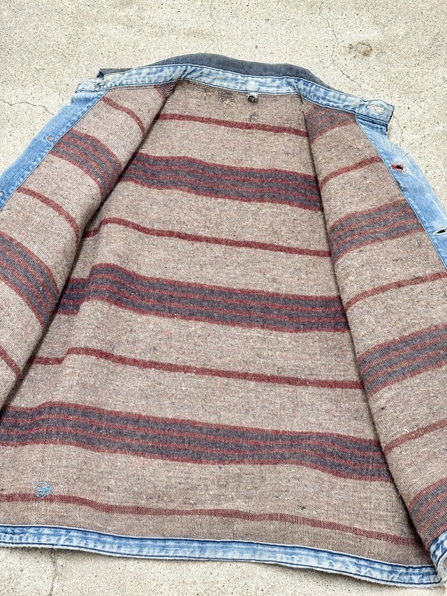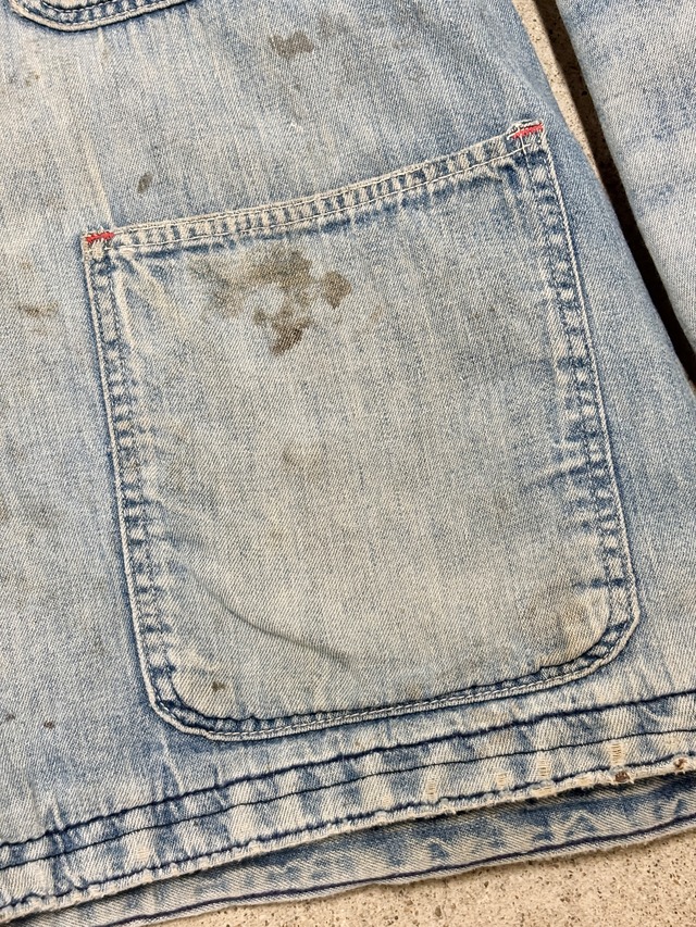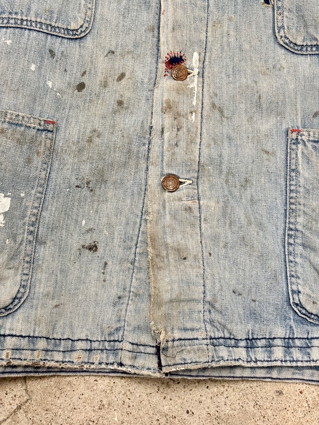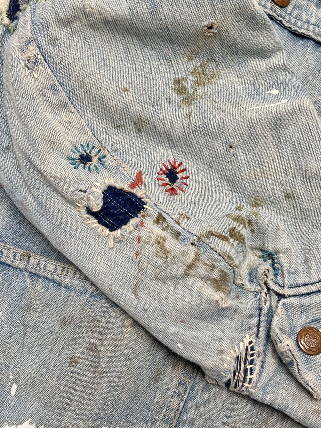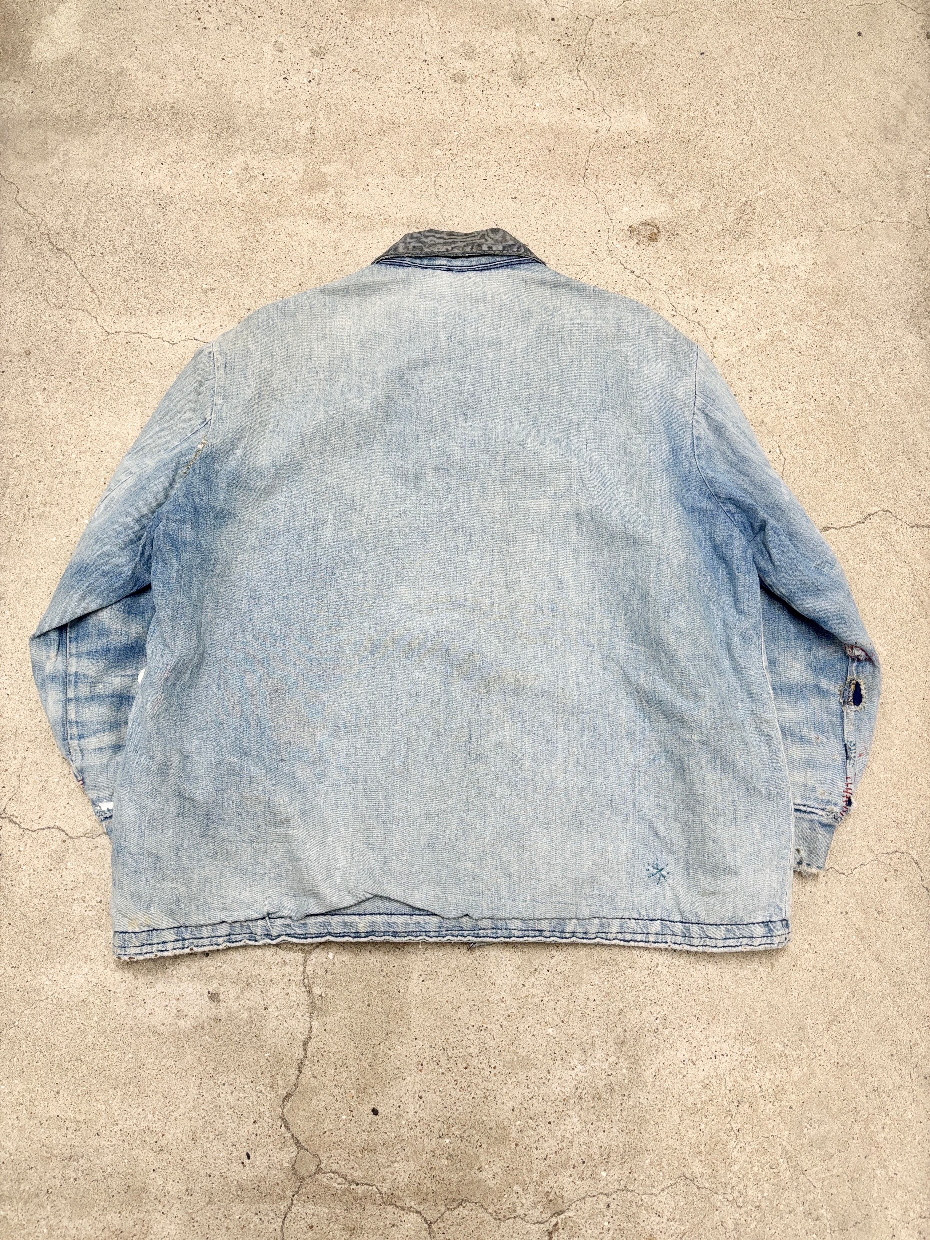 70~80s Wrangler/Denim Coverall/XL相当/デニムカバ-オ-ルジャケット/リペア/ブランケットライナ-/ペイント/アイスブル-/ラングラ-/古着/ヴィンテ-ジ