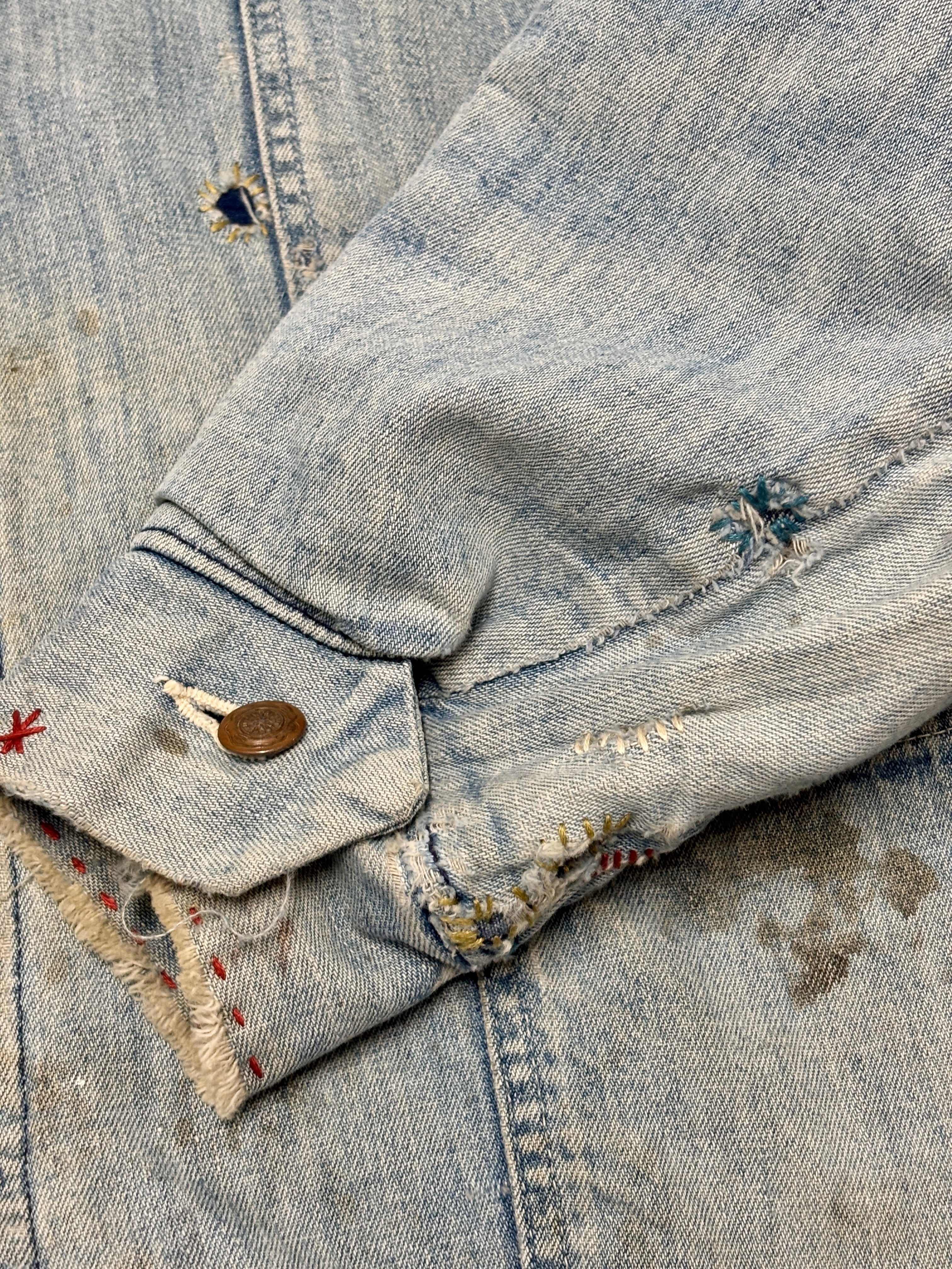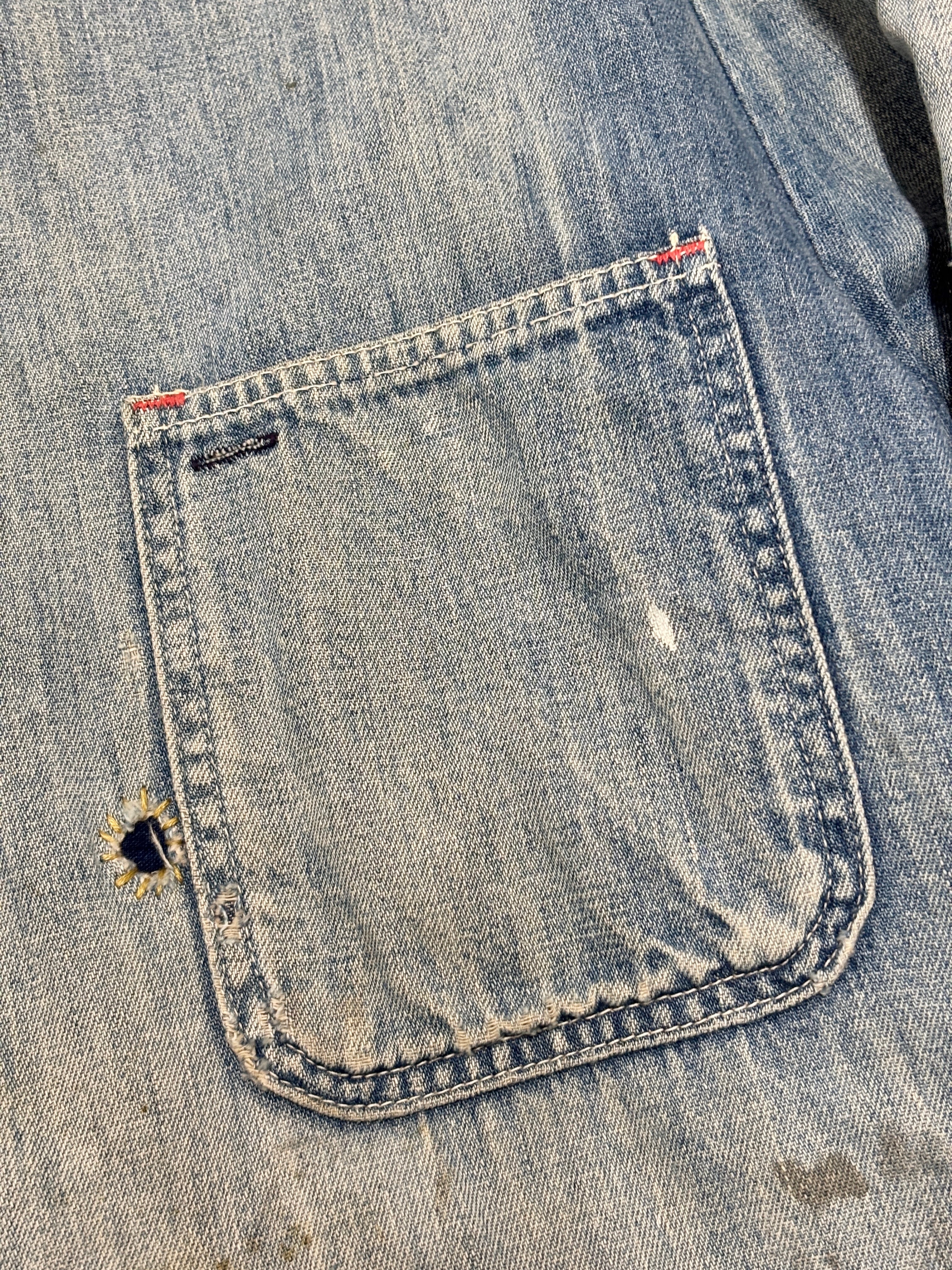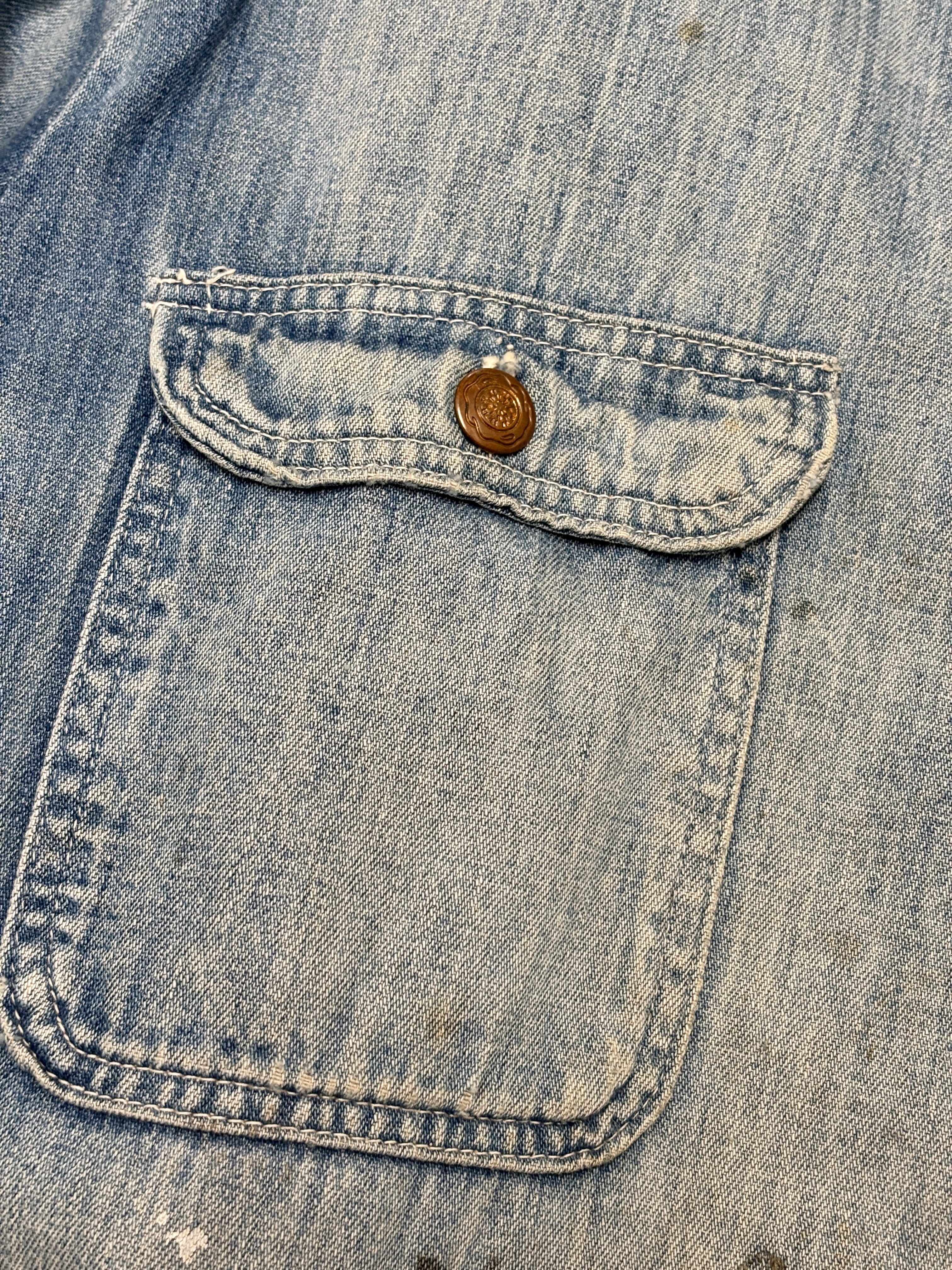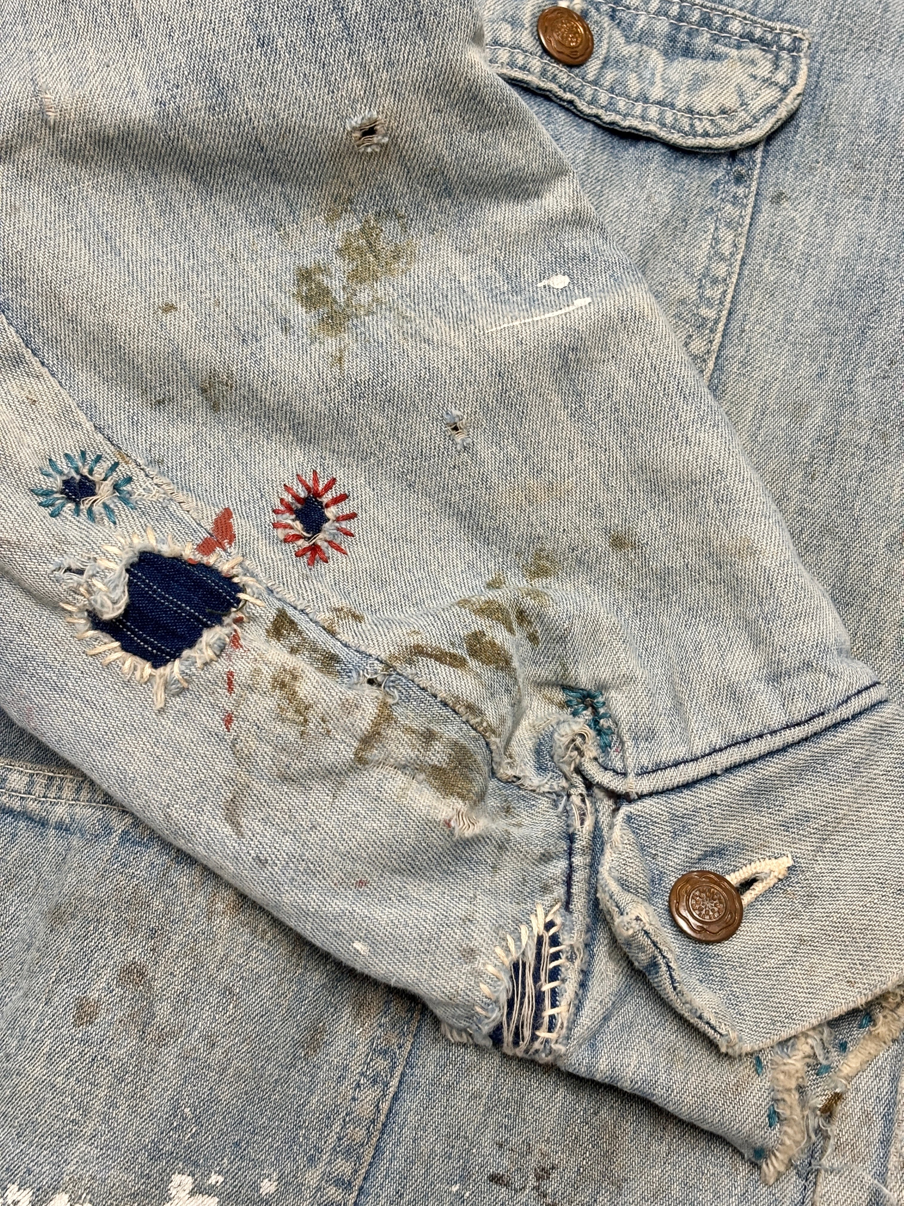 70~80s Wrangler/Denim Coverall/XL相当/デニムカバ-オ-ルジャケット/リペア/ブランケットライナ-/ペイント/アイスブル-/ラングラ-/古着/ヴィンテ-ジ