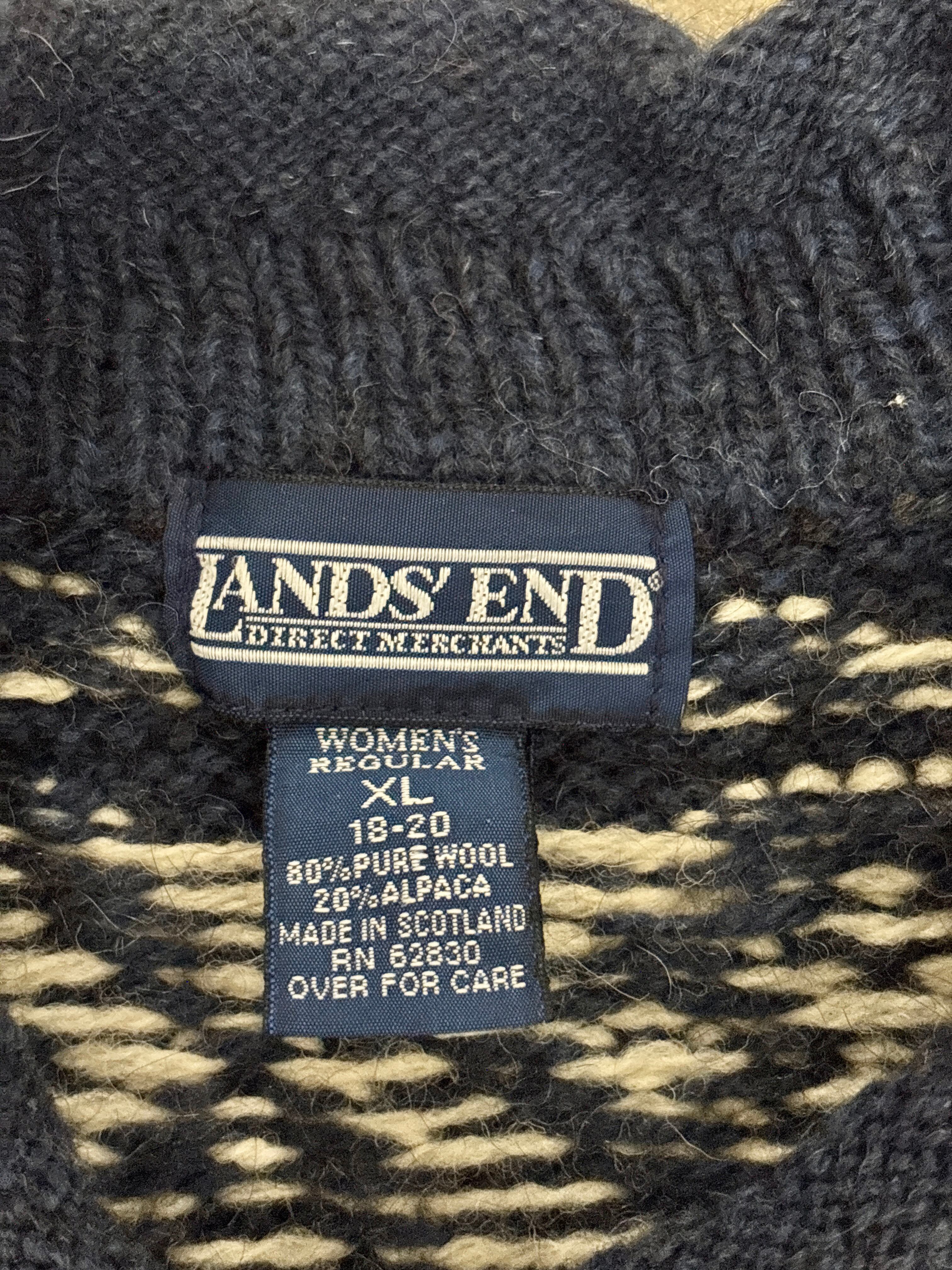 90~00s LANDS`END/Nordic Knit Sweater/SCOTLAND製/XL/ノルディック柄ニットセ-タ-/総柄/ネイビ-/ランズエンド/古着