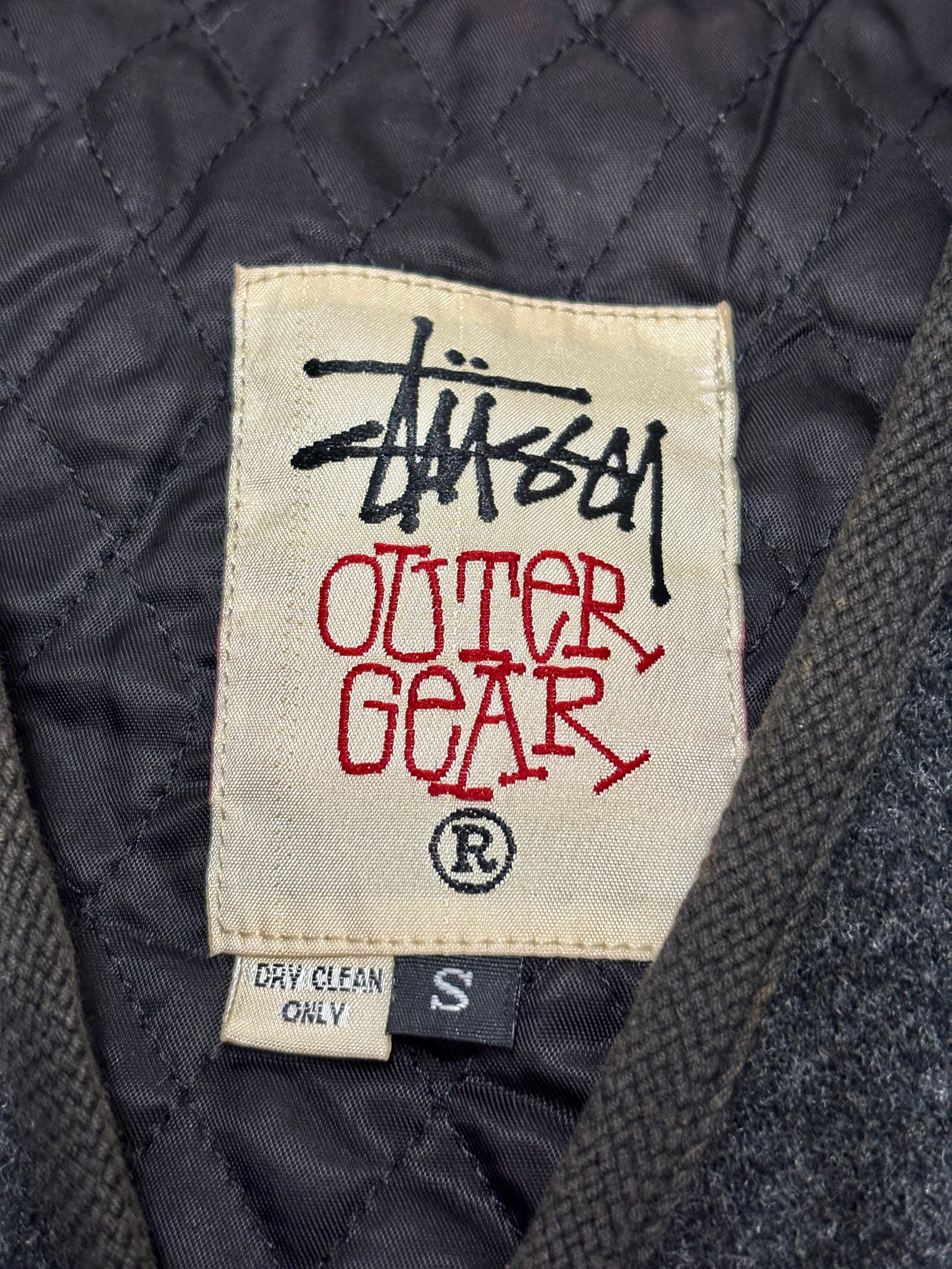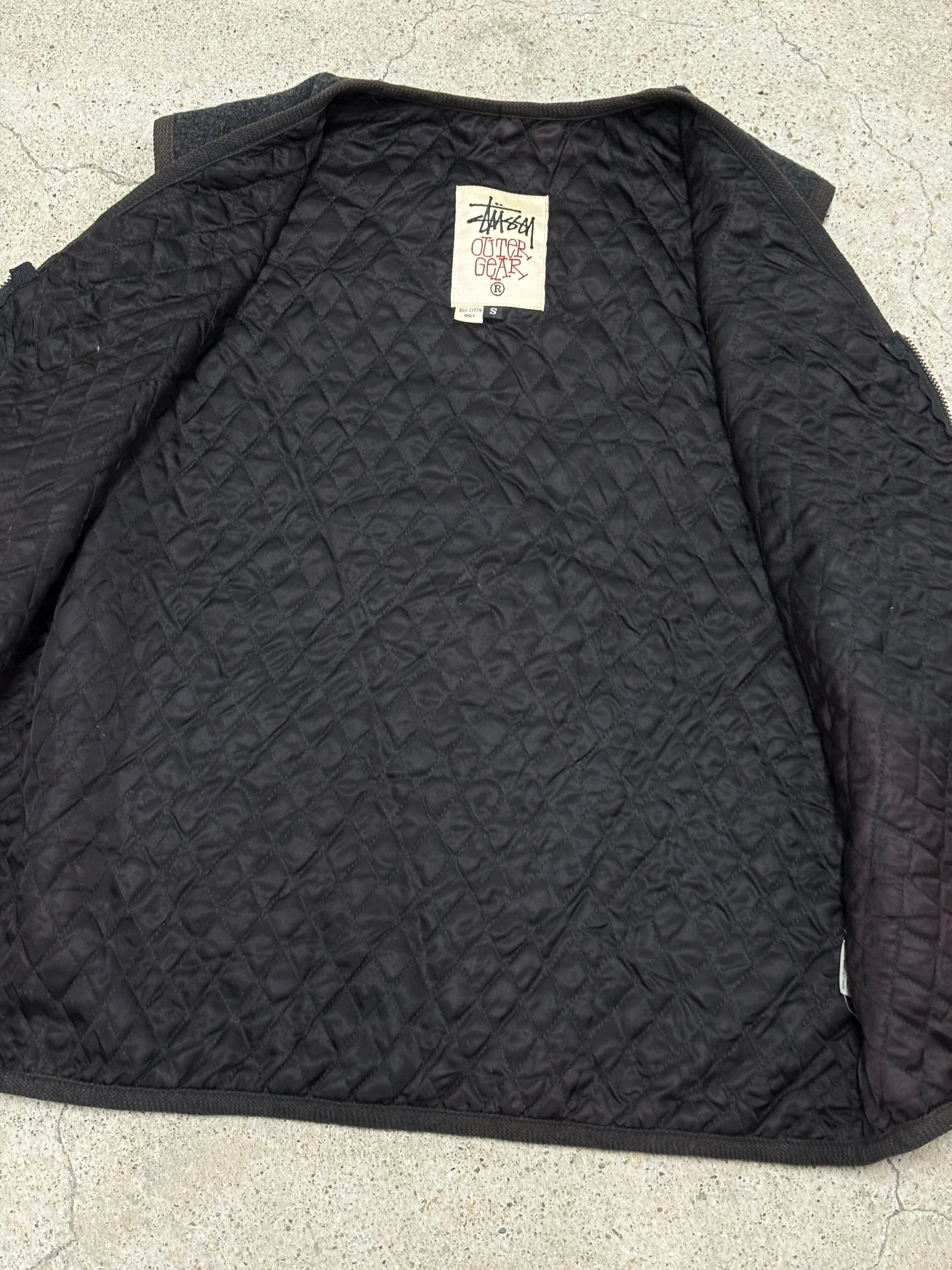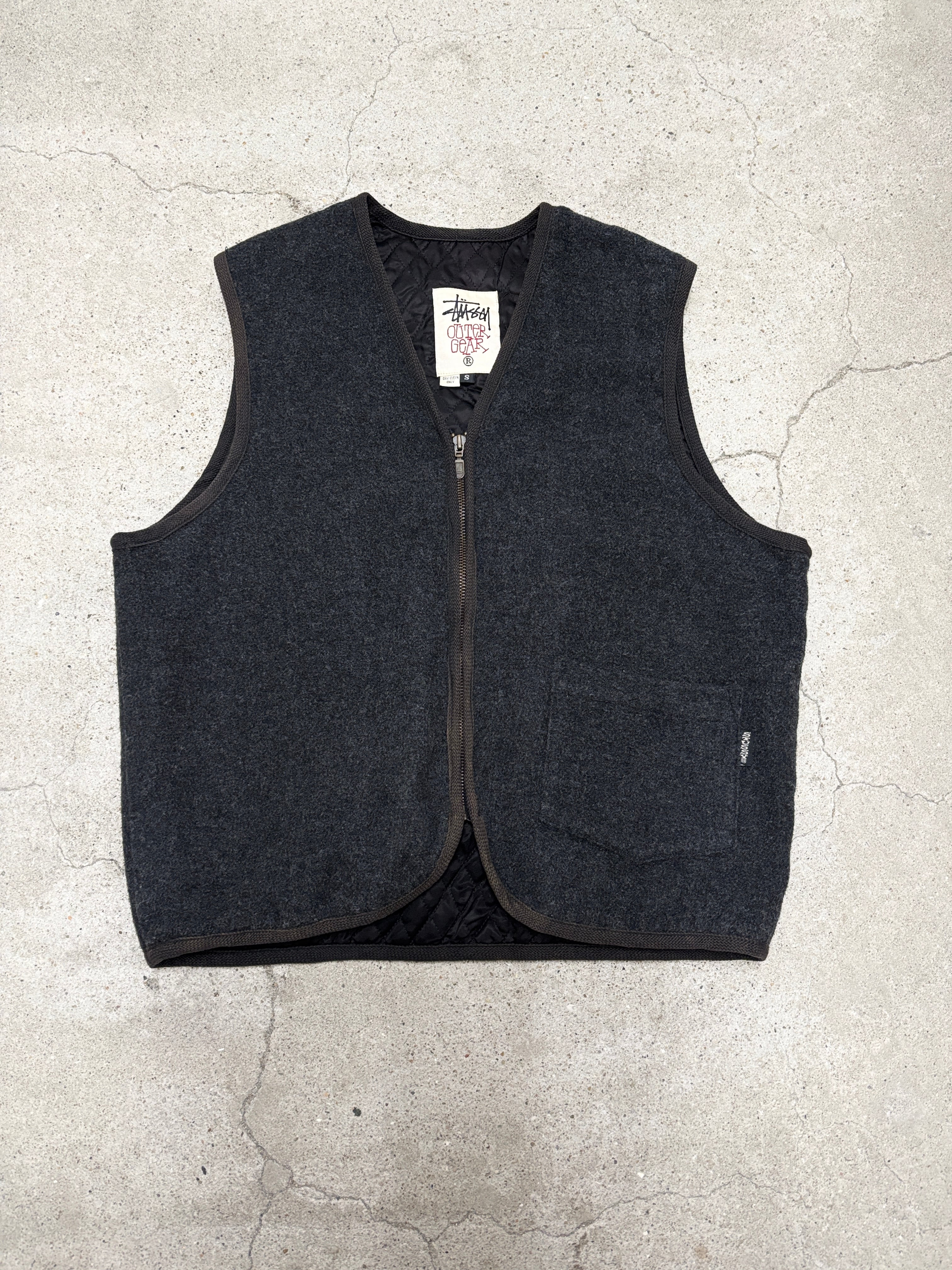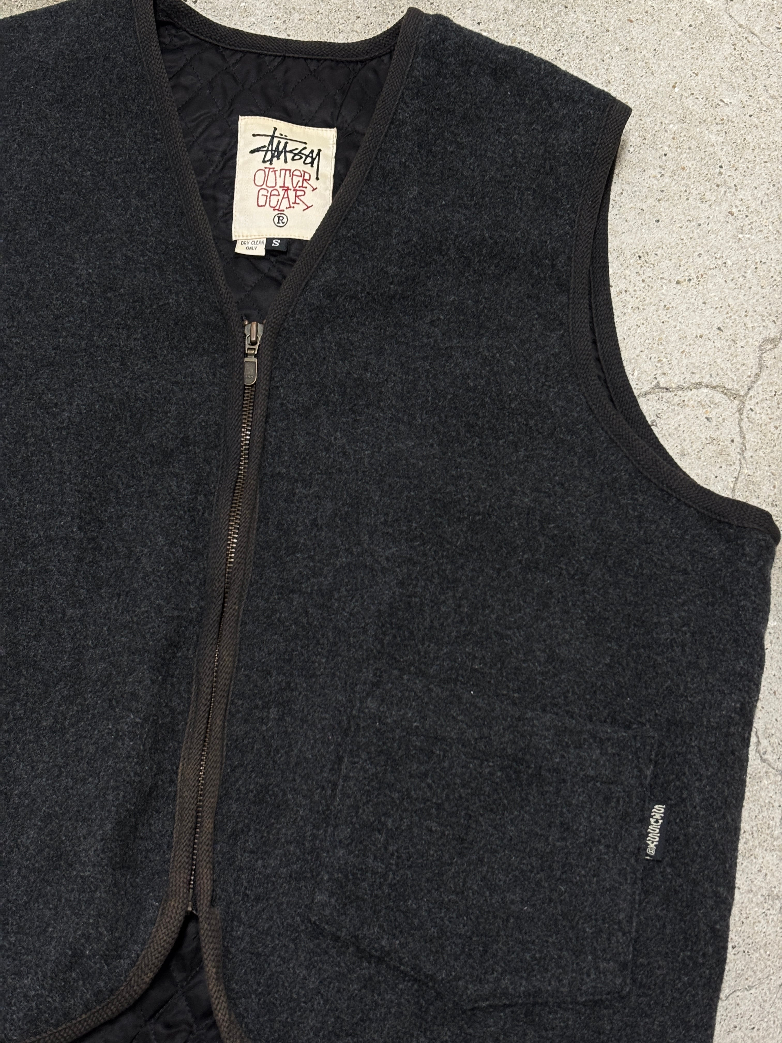 90s OLD STUSSY/OUTER GEAR/Wool Vest/USA製/白タグ/S(M-L相当)/ウ-ルベスト/ブラック/ステューシー/オ-ルドステューシー/古着/ア―カイブ