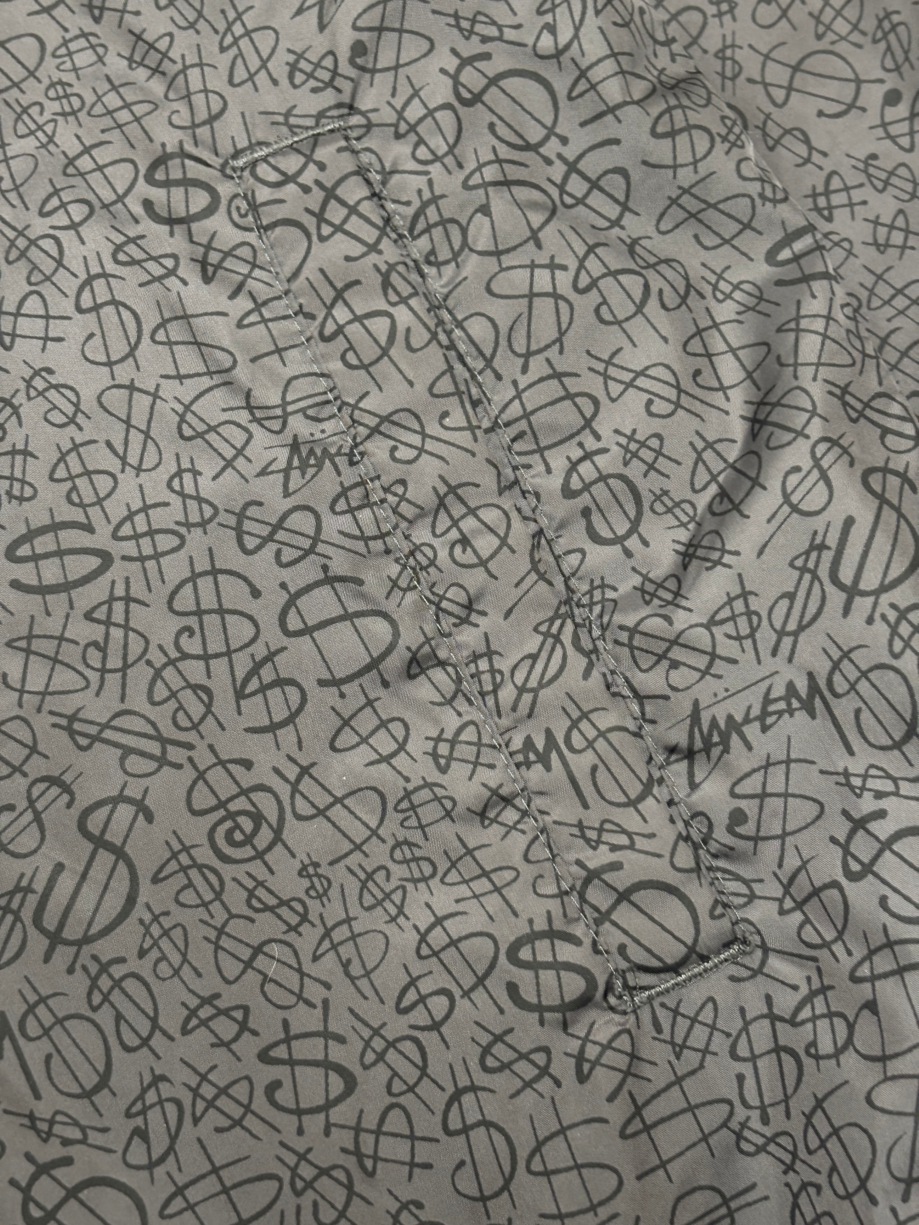 00s OLD STUSSY/Reversible Nylon Jacket/紺タグ/M/リバ-シブルナイロンジャケット/$プリント/グレ-/ブラック/ストックロゴ/ロゴプリント/ステューシー/オ-ルドステューシー
