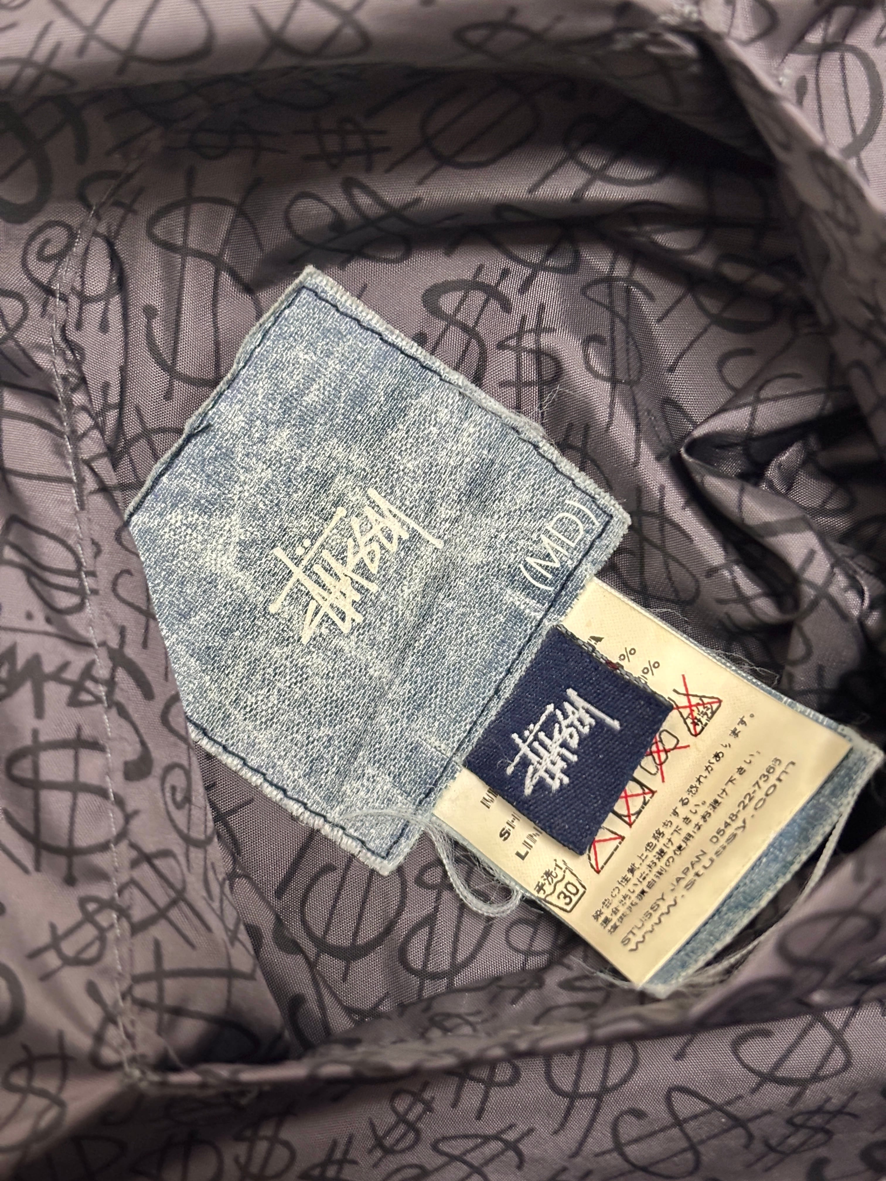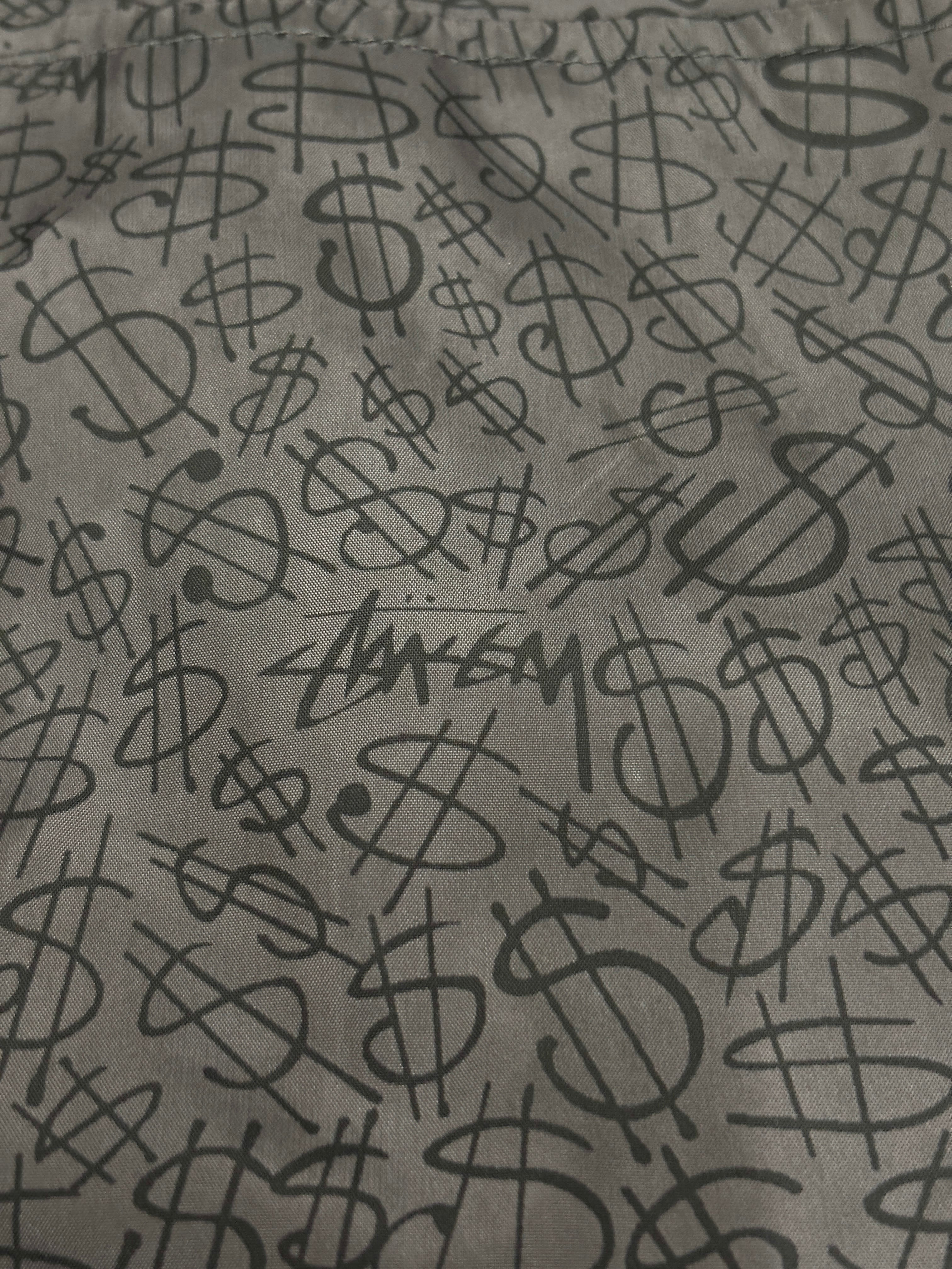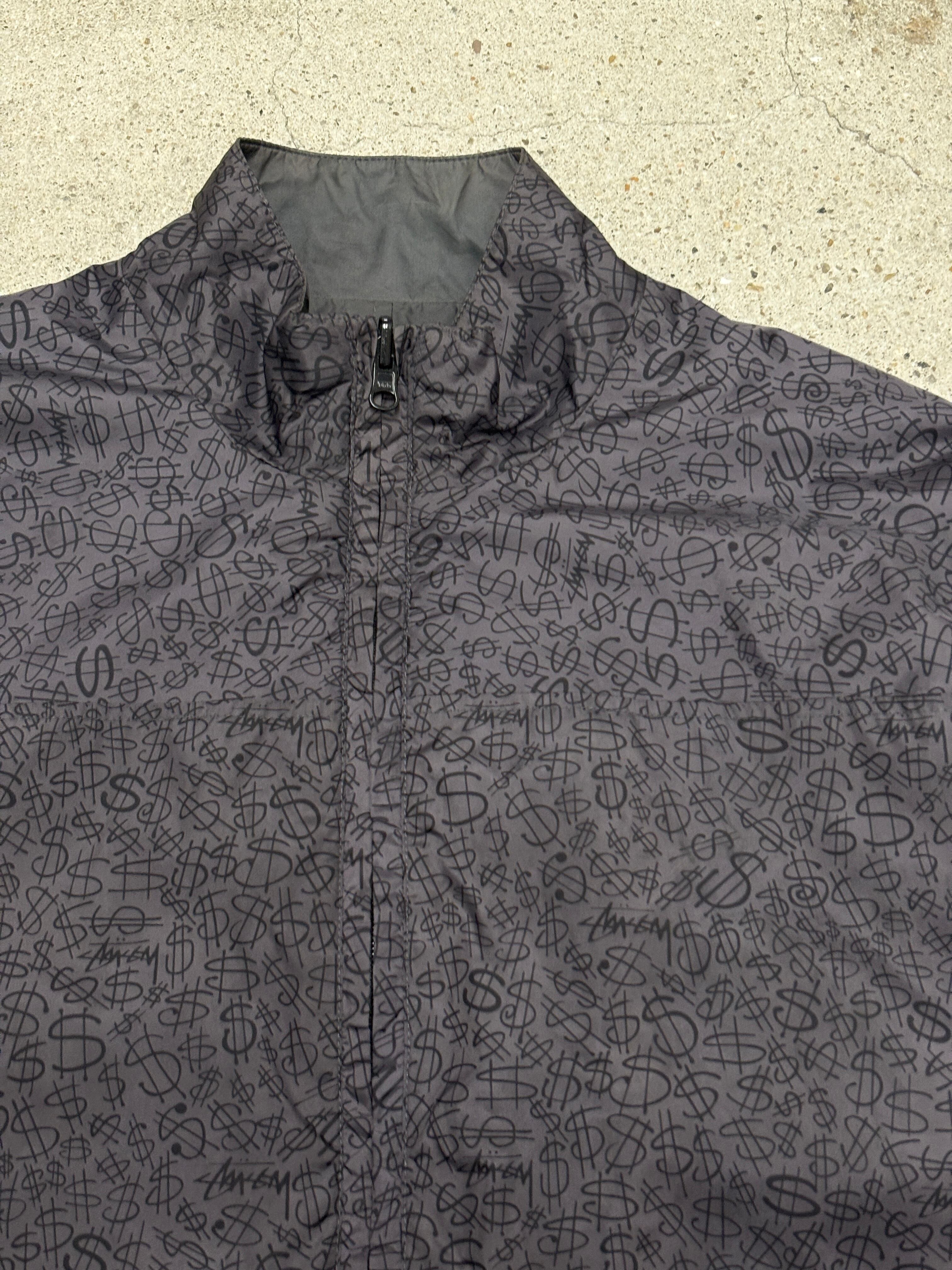 00s OLD STUSSY/Reversible Nylon Jacket/紺タグ/M/リバ-シブルナイロンジャケット/$プリント/グレ-/ブラック/ストックロゴ/ロゴプリント/ステューシー/オ-ルドステューシー/古着/ア―カイブ
