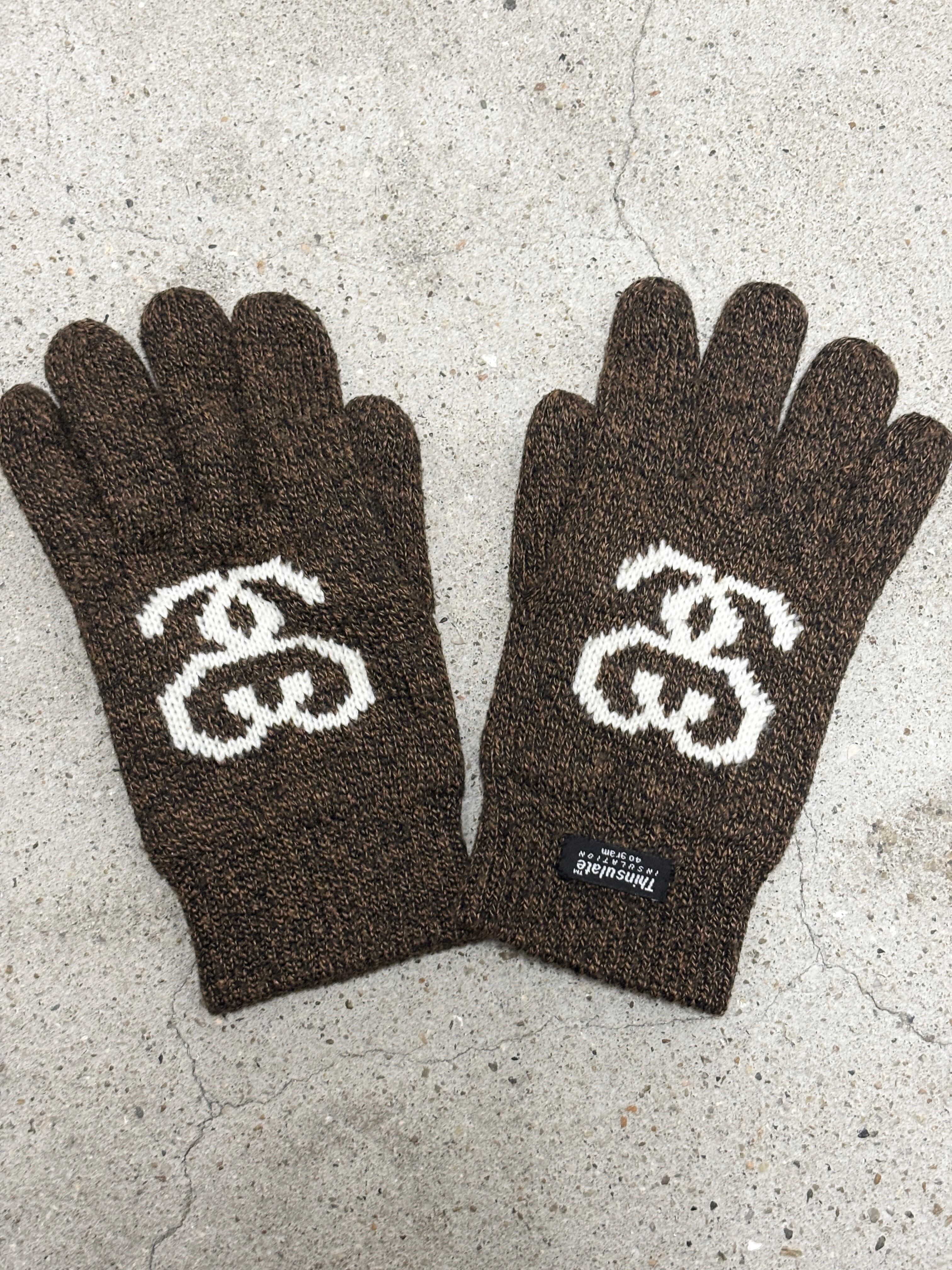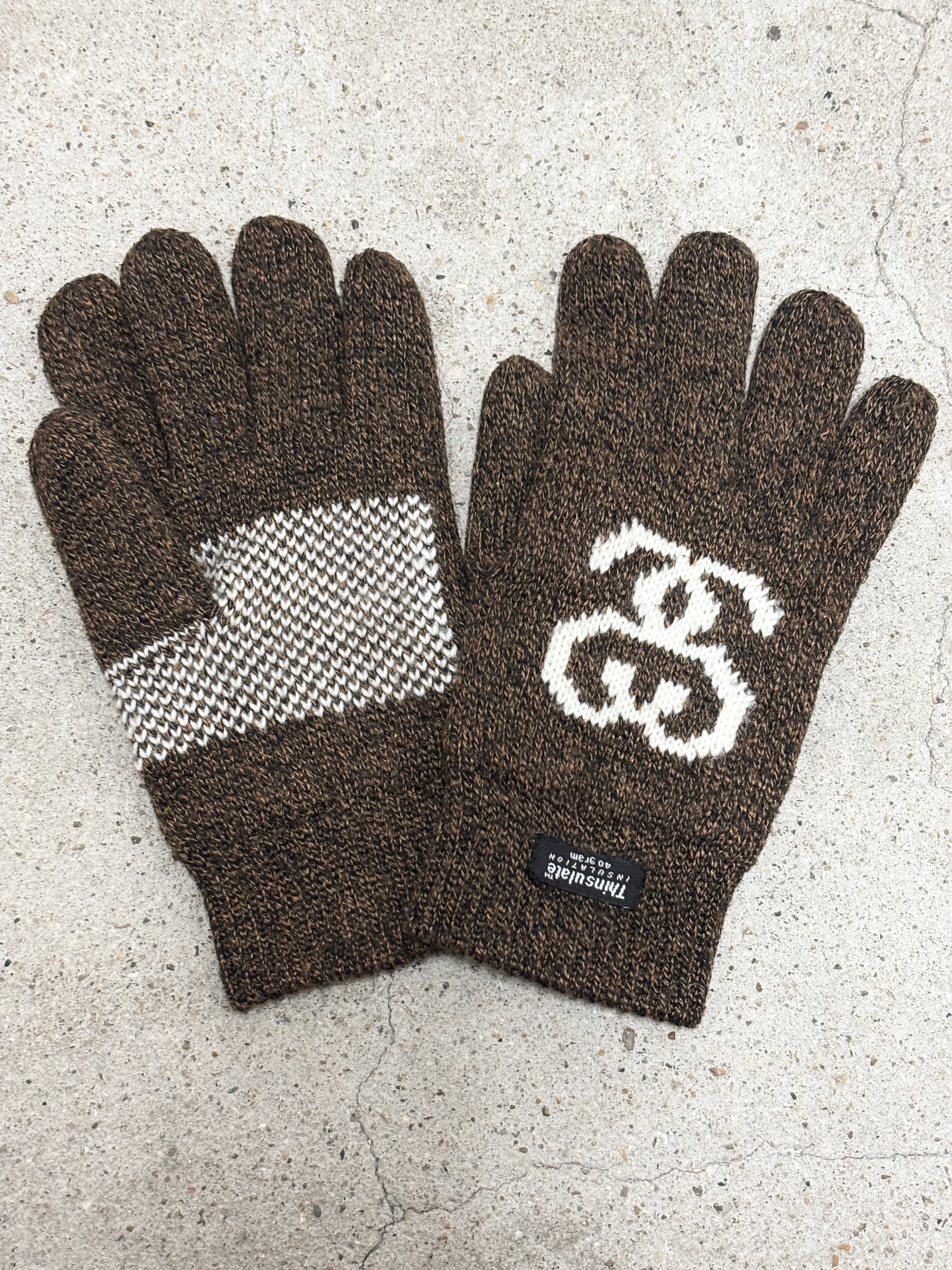 00~10s STUSSY/SS Link Logo Gloves/SSリンクロゴデザイン手袋/Thinsulate/ブラウン/ステューシー