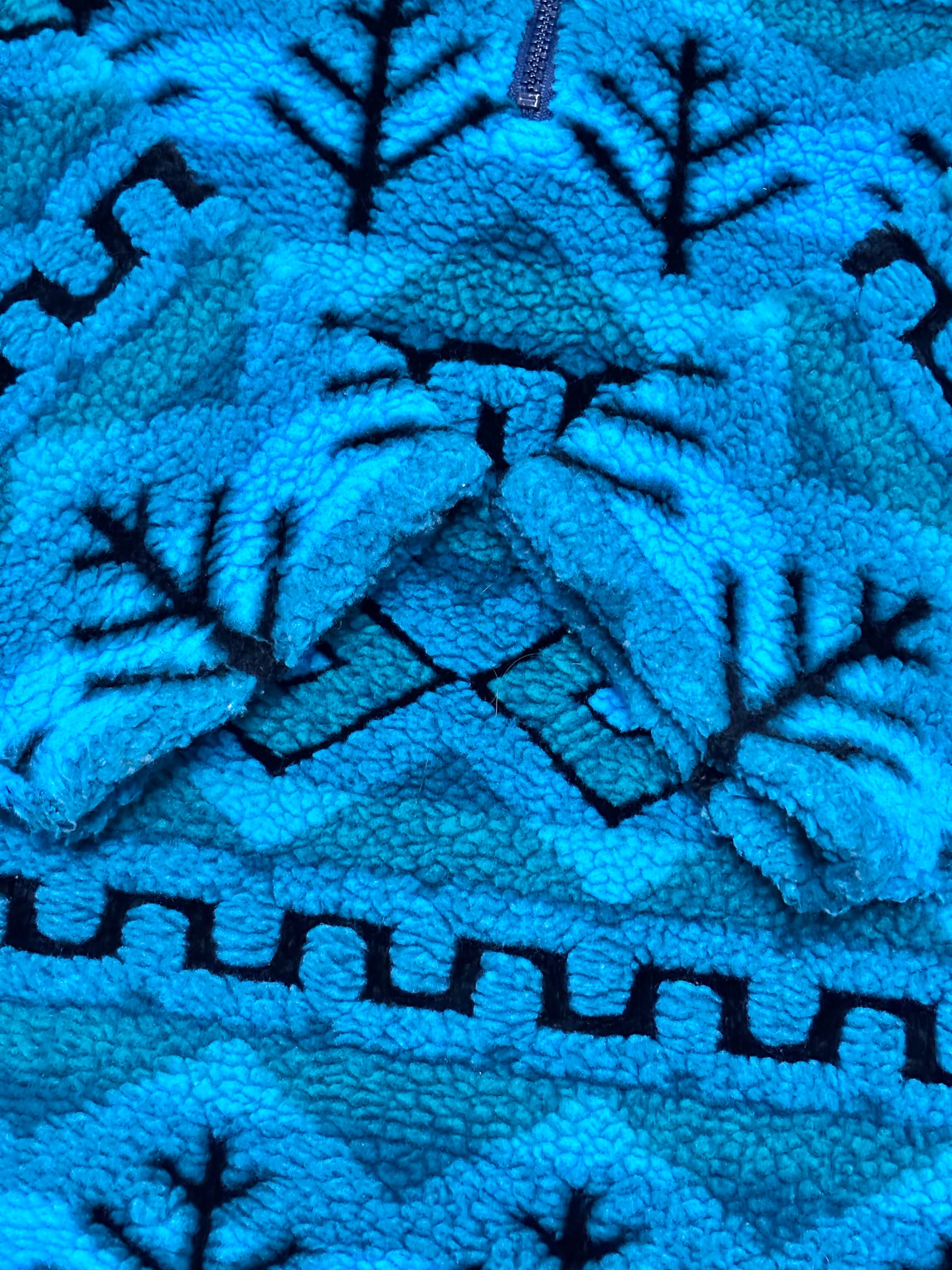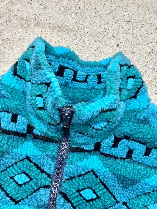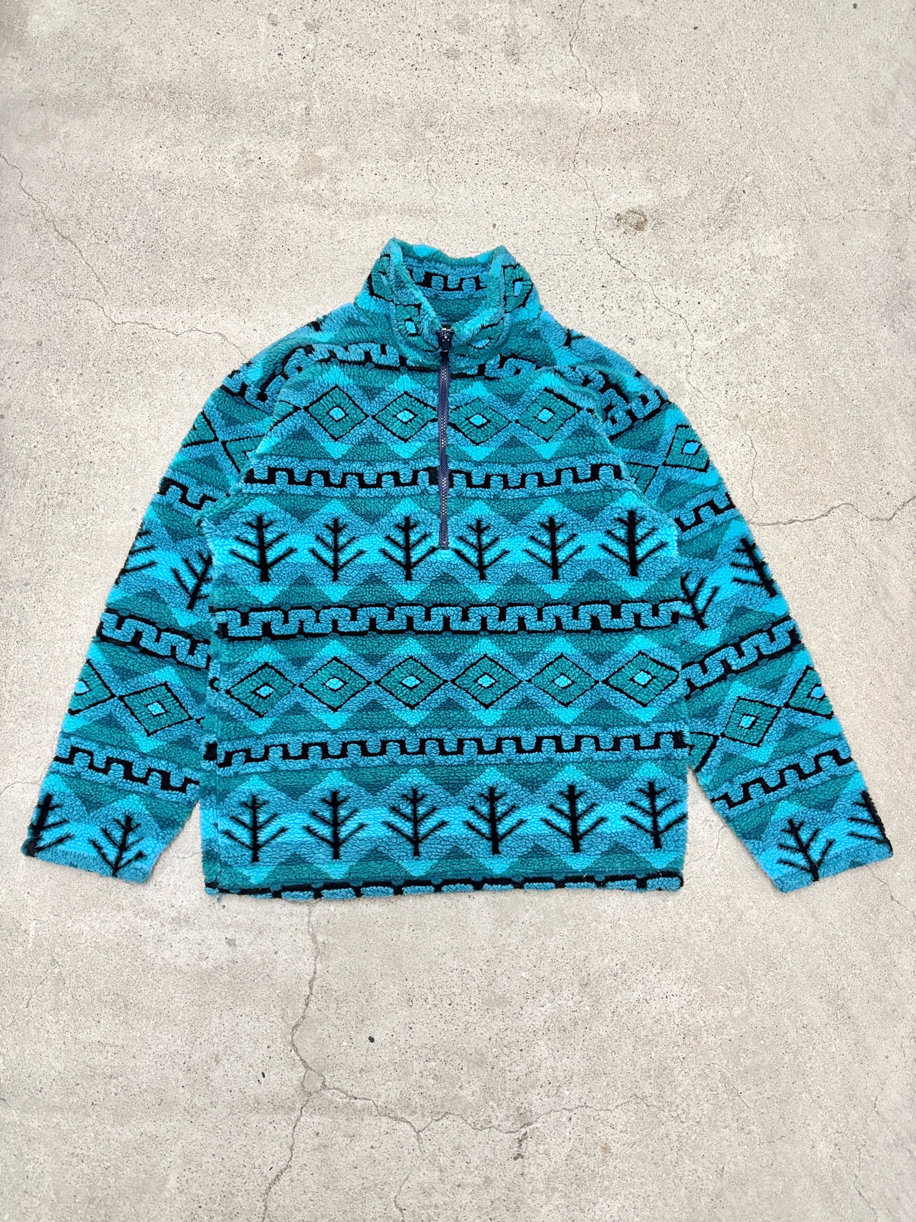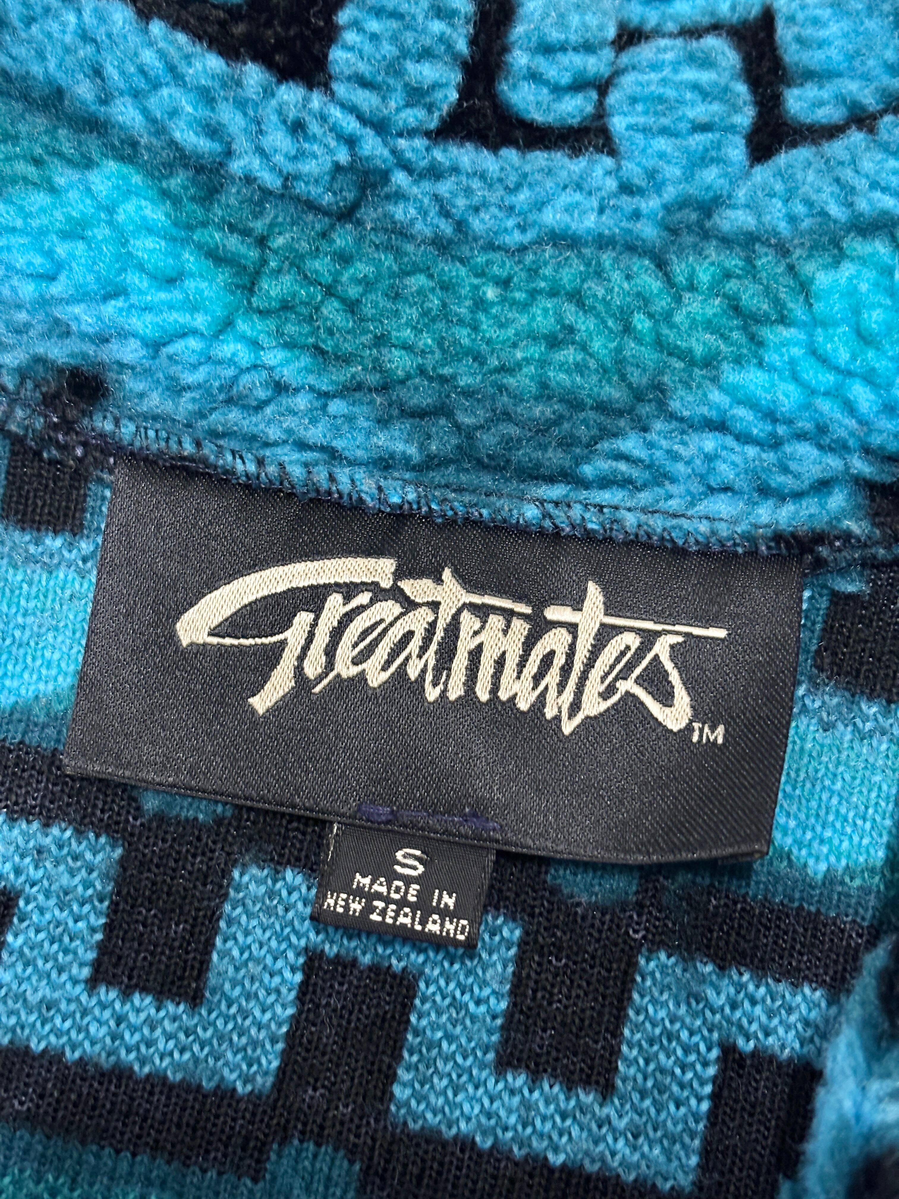 GREATMATES/Half zip Fleece Jacket/New Zealand製/S/ハーフジップフリースジャケット/総柄/グリ-ン/ブル-/古着