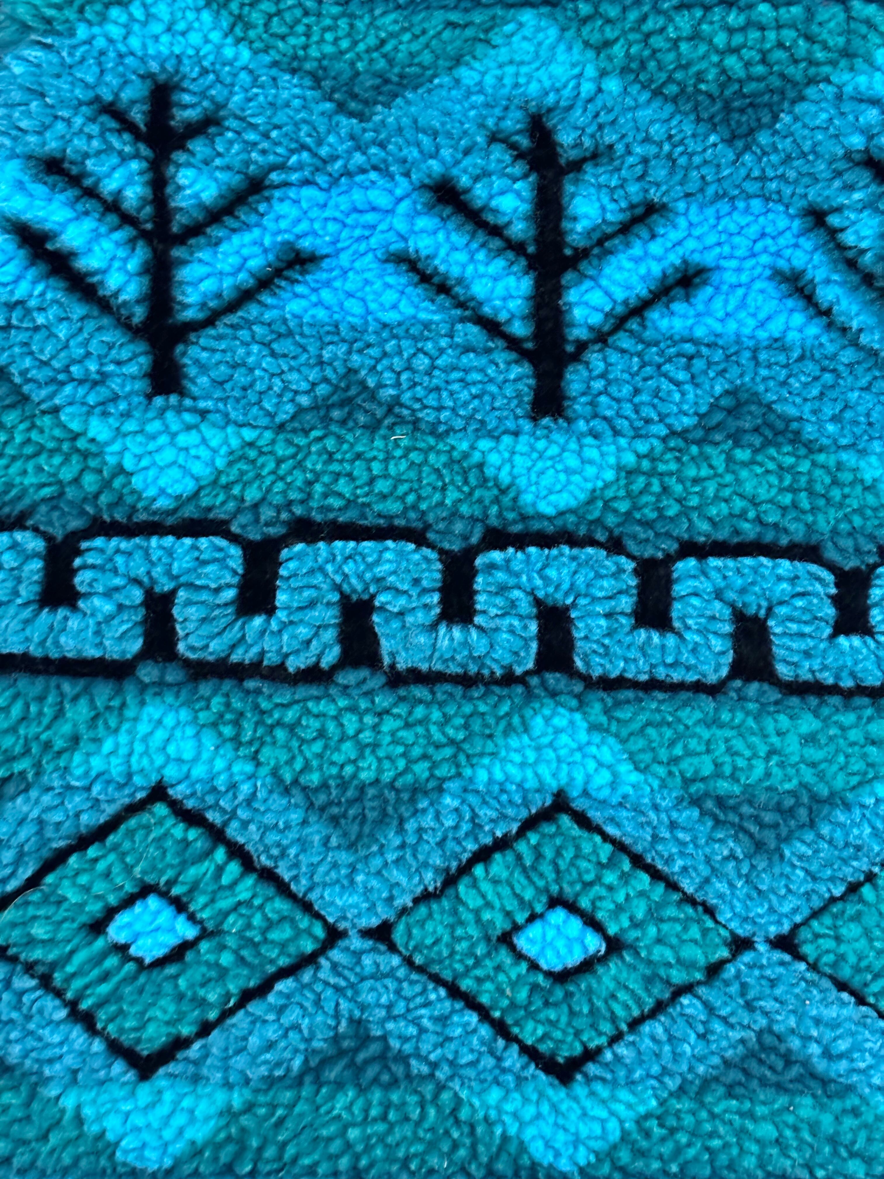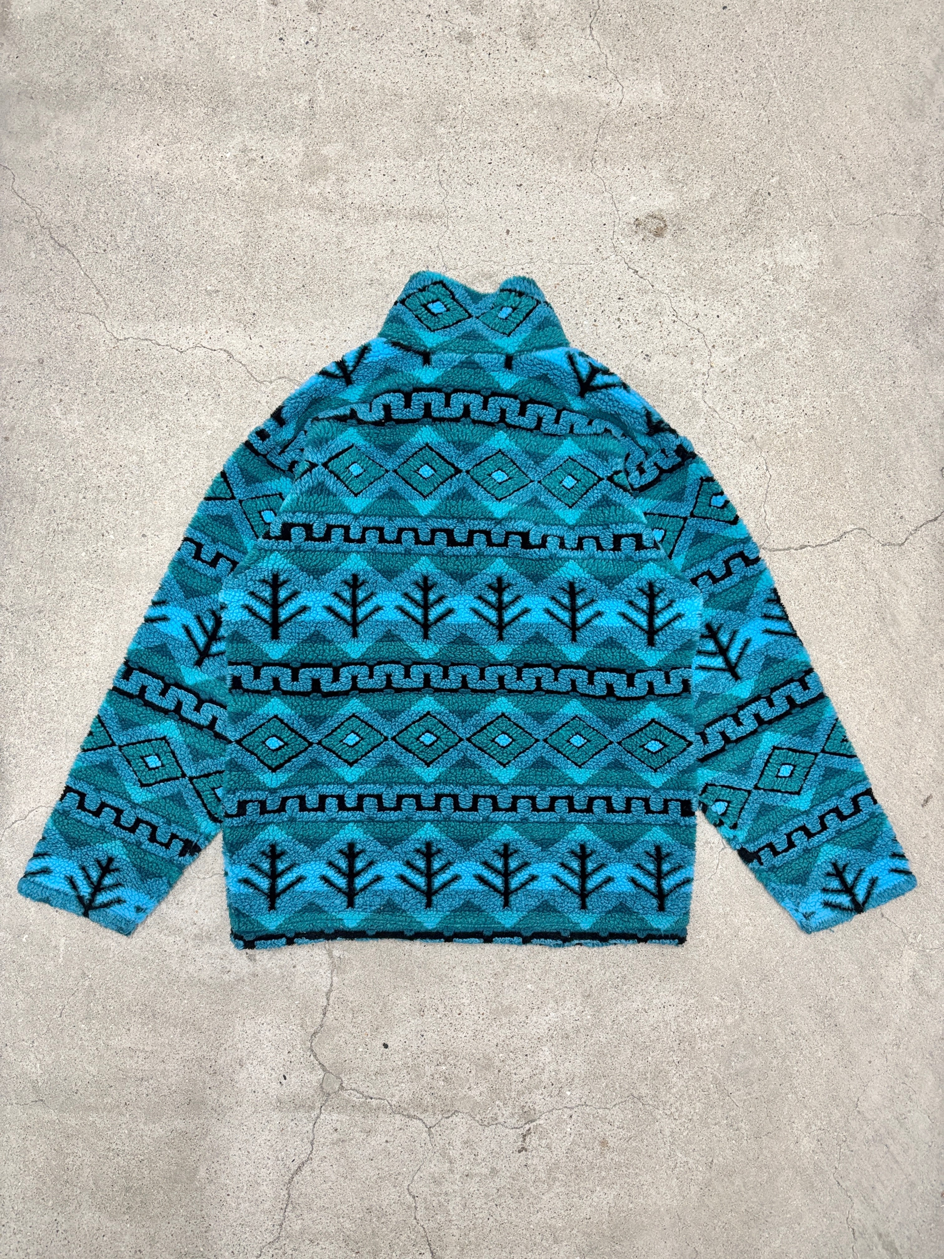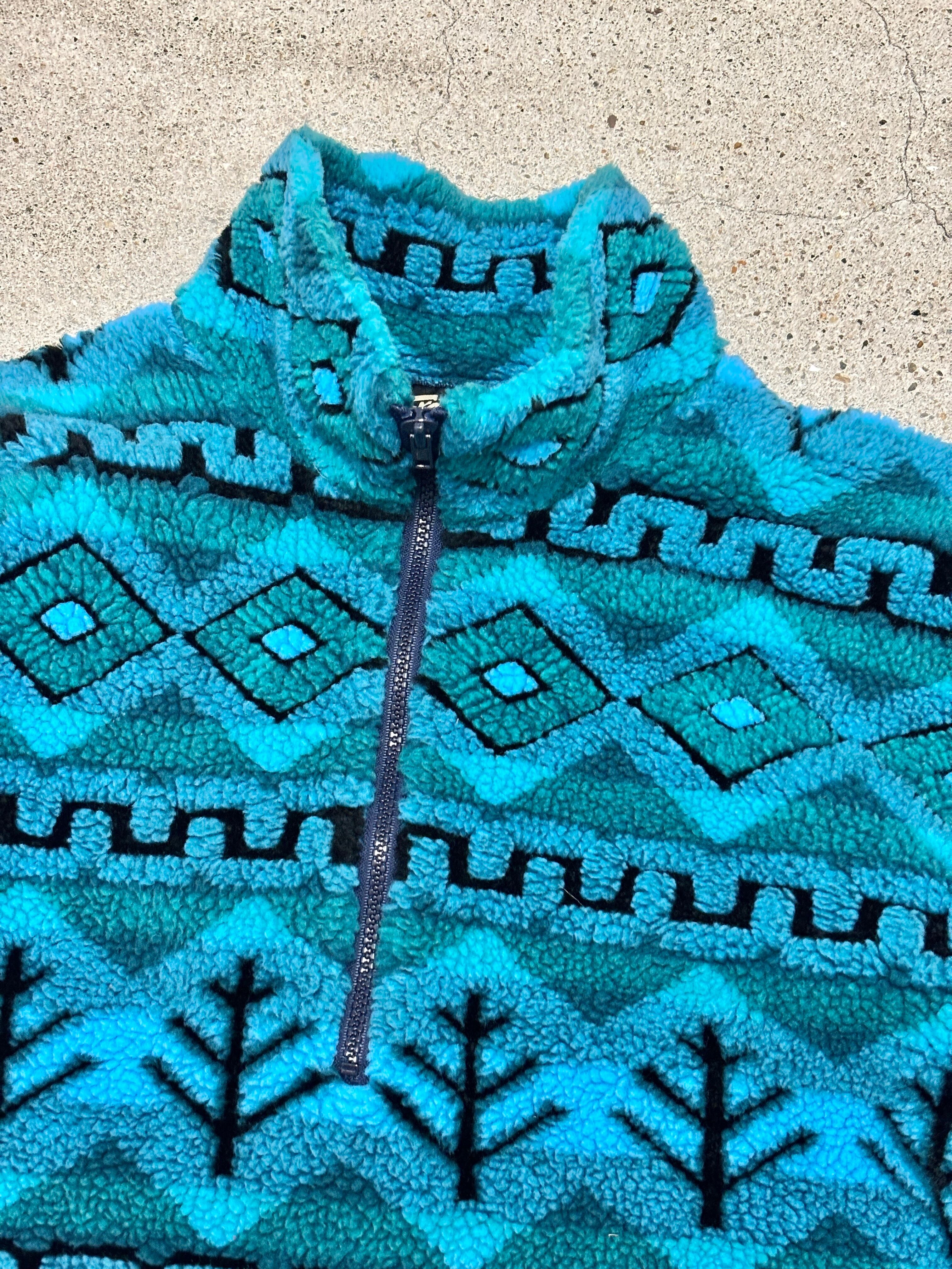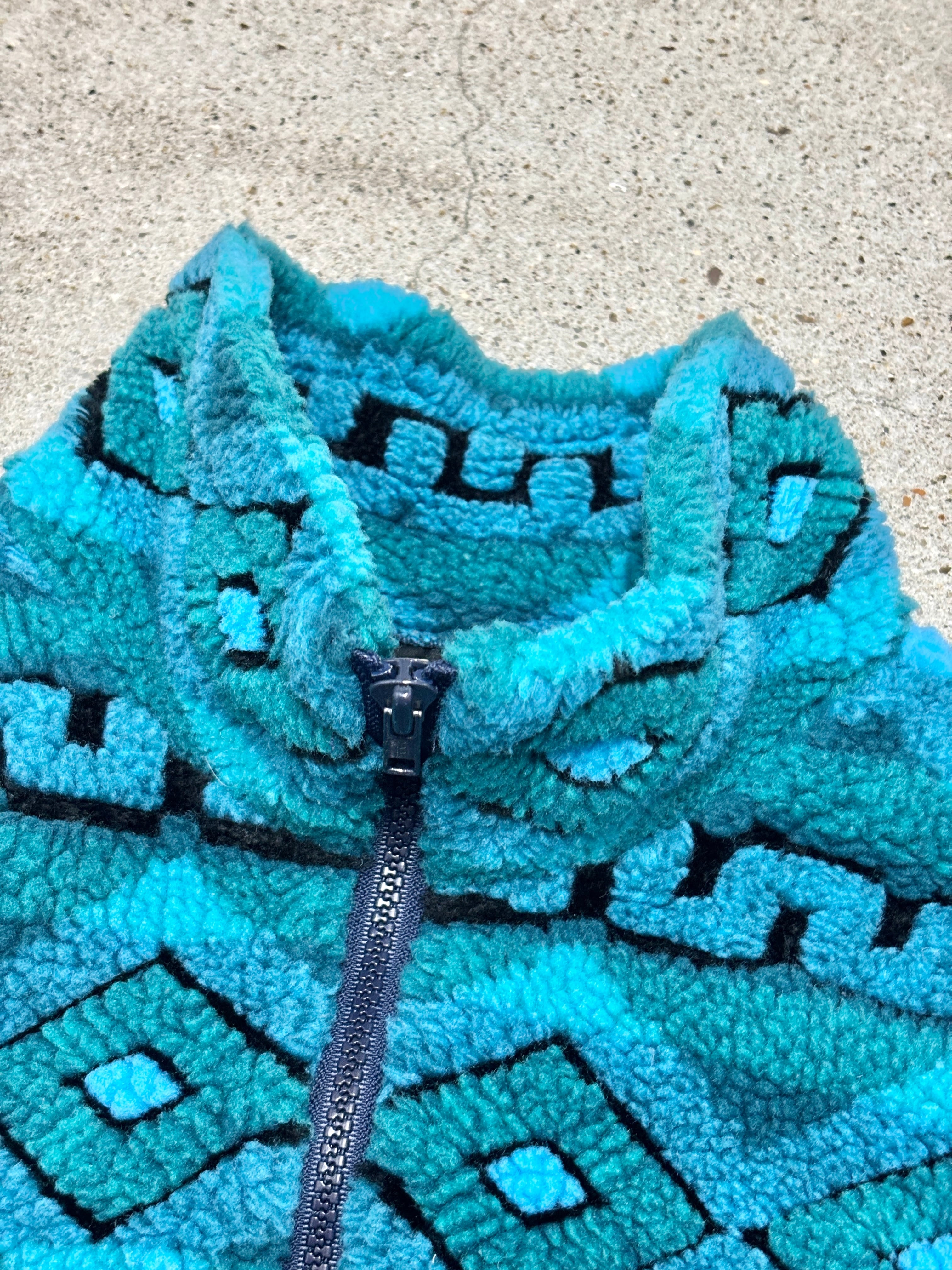GREATMATES/Half zip Fleece Jacket/New Zealand製/S/ハーフジップフリースジャケット/総柄/グリ-ン/ブル-/古着