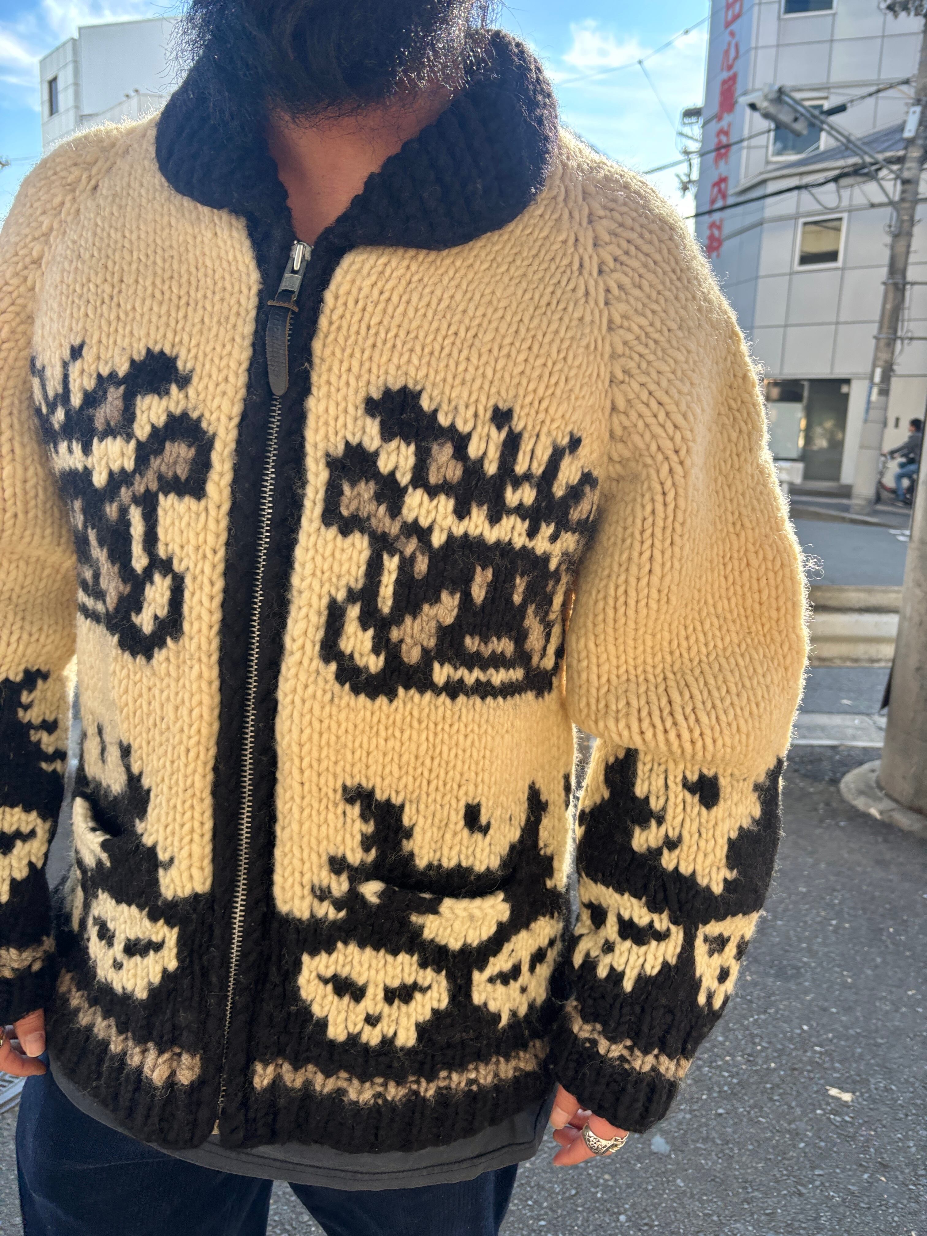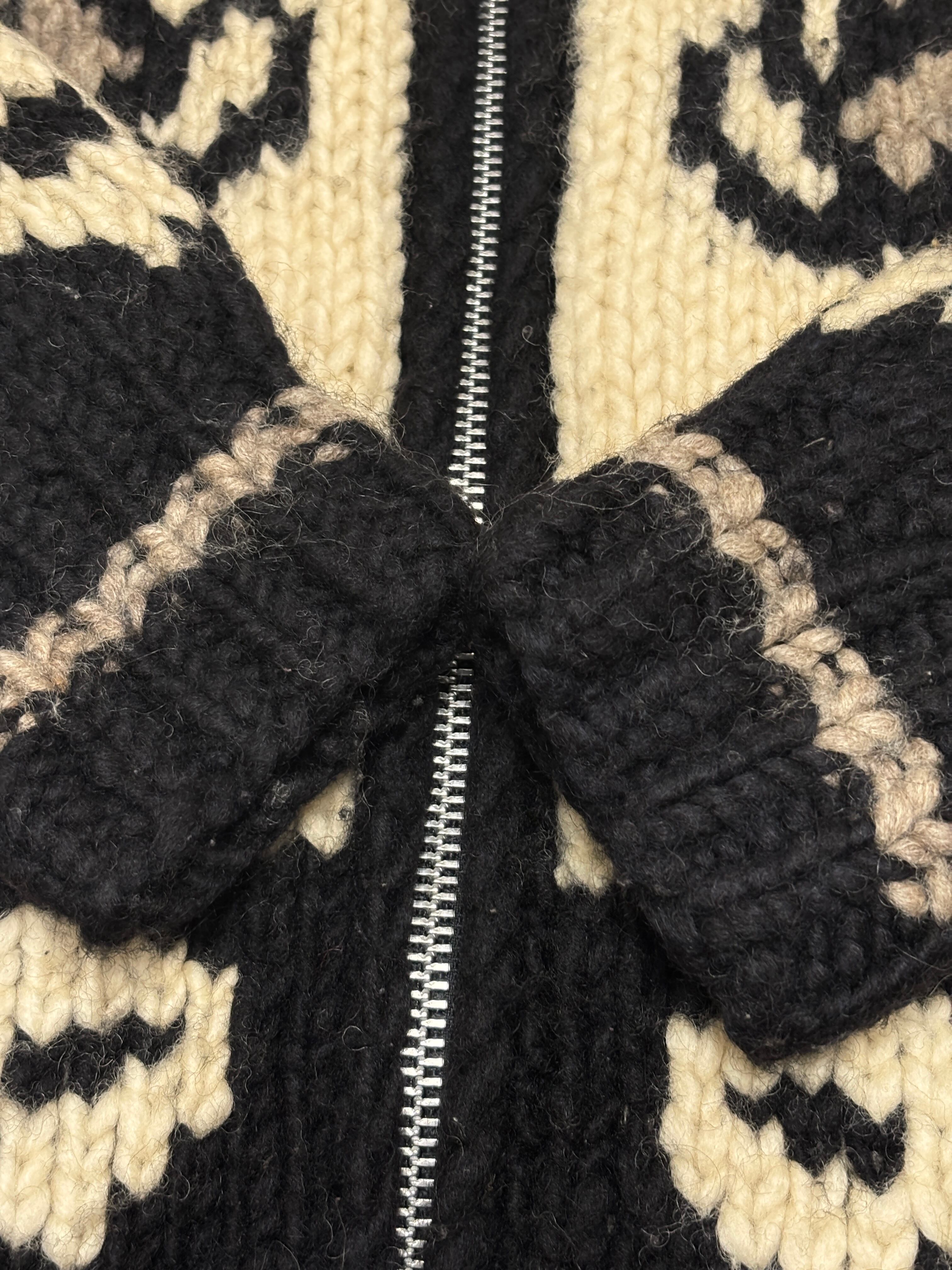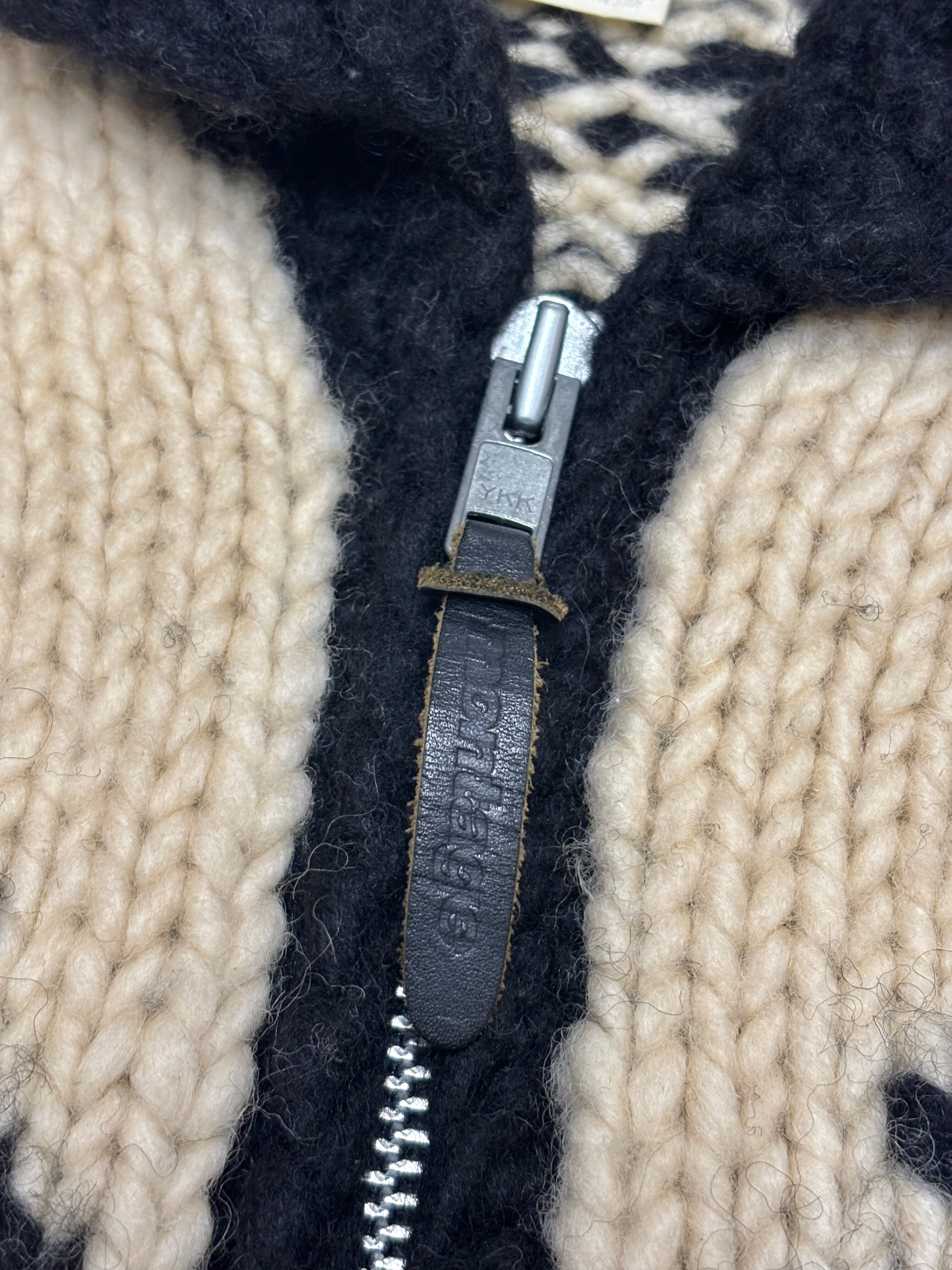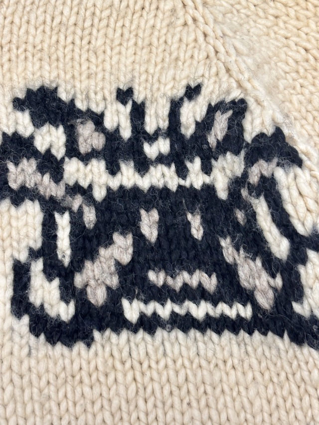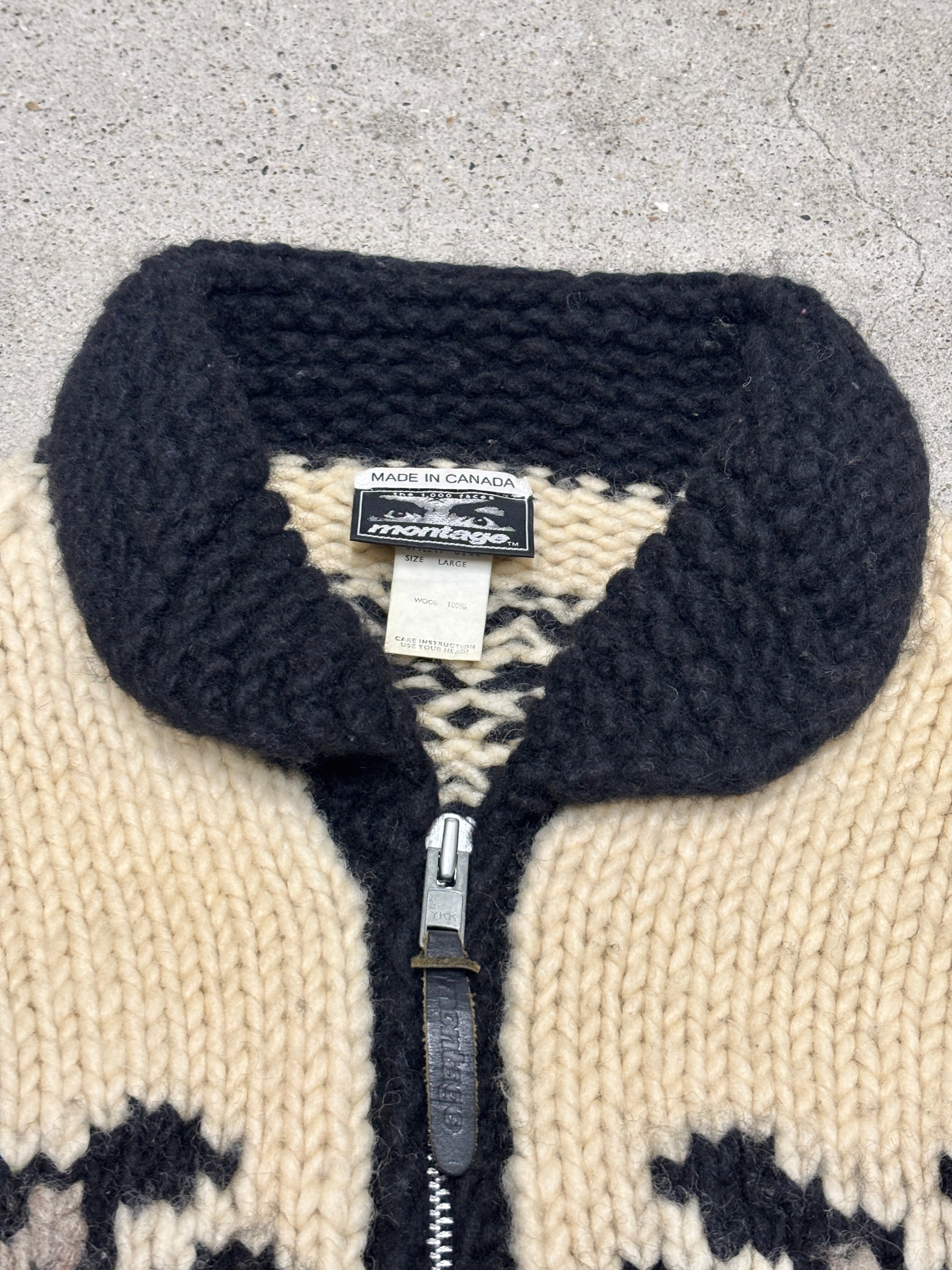 00s montage/Cowichan Sweater/Canada製/L/カウチンセ-タ-/プレデタ-/カ-ディガン/ニット/クリ-ム/ブラック/モンタージュ