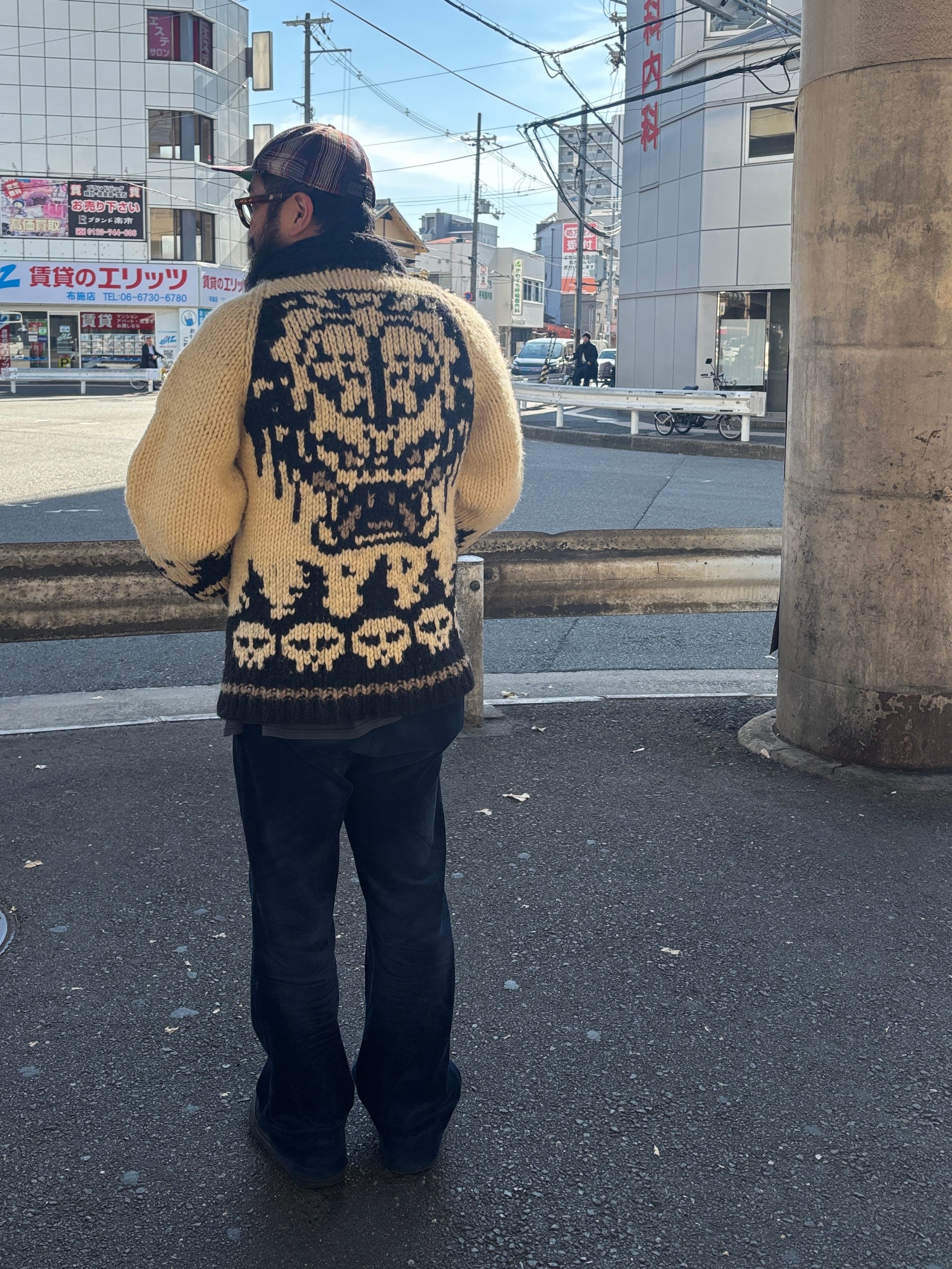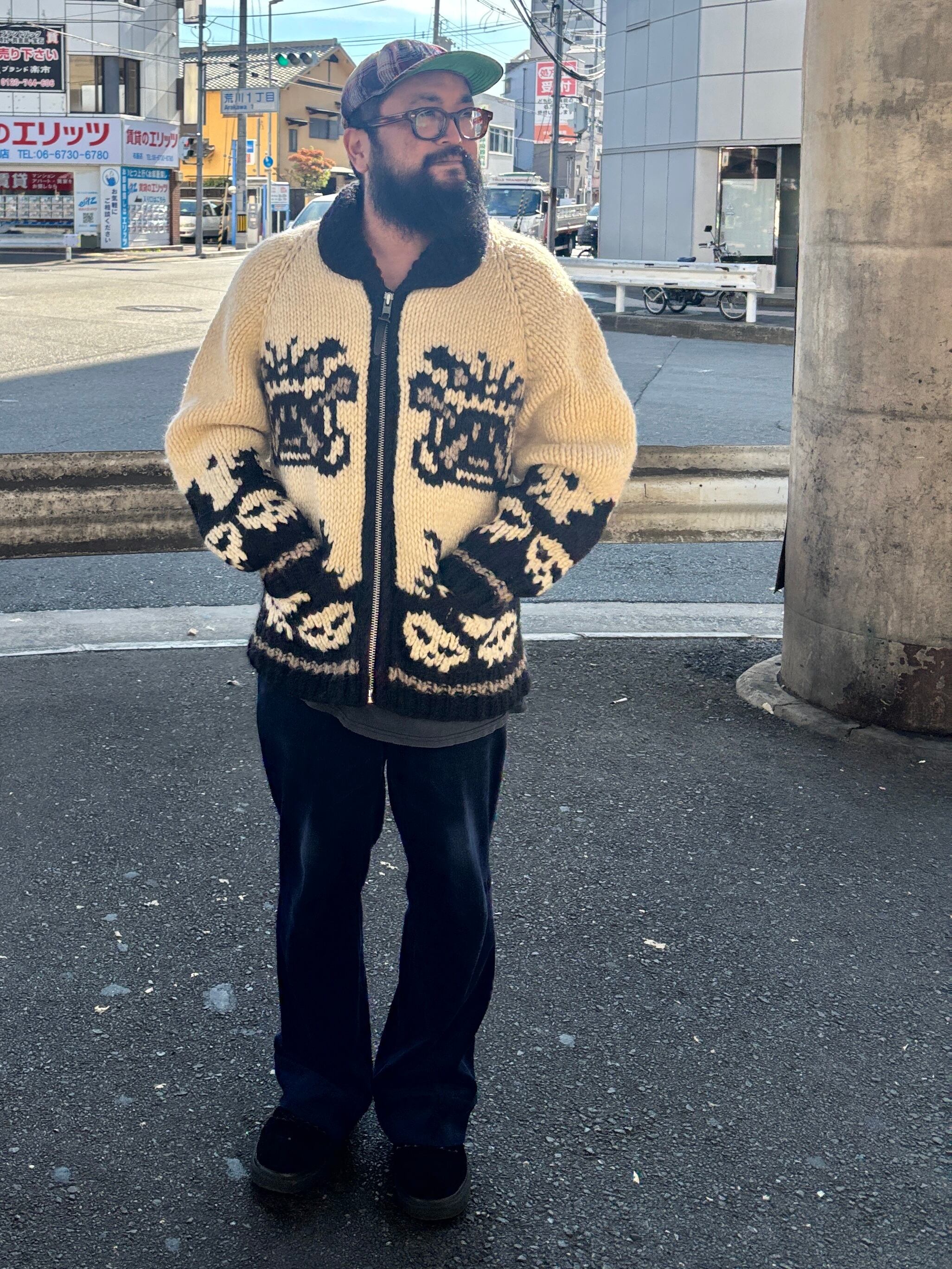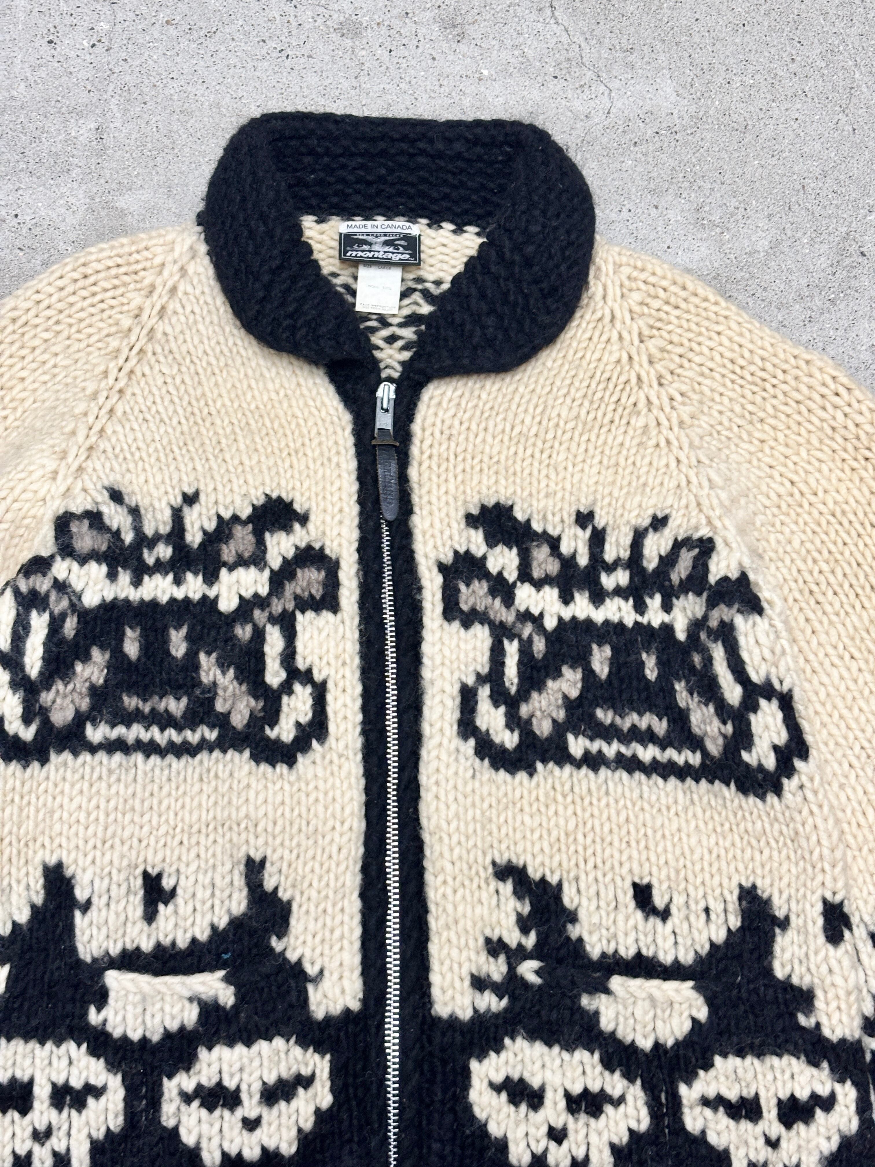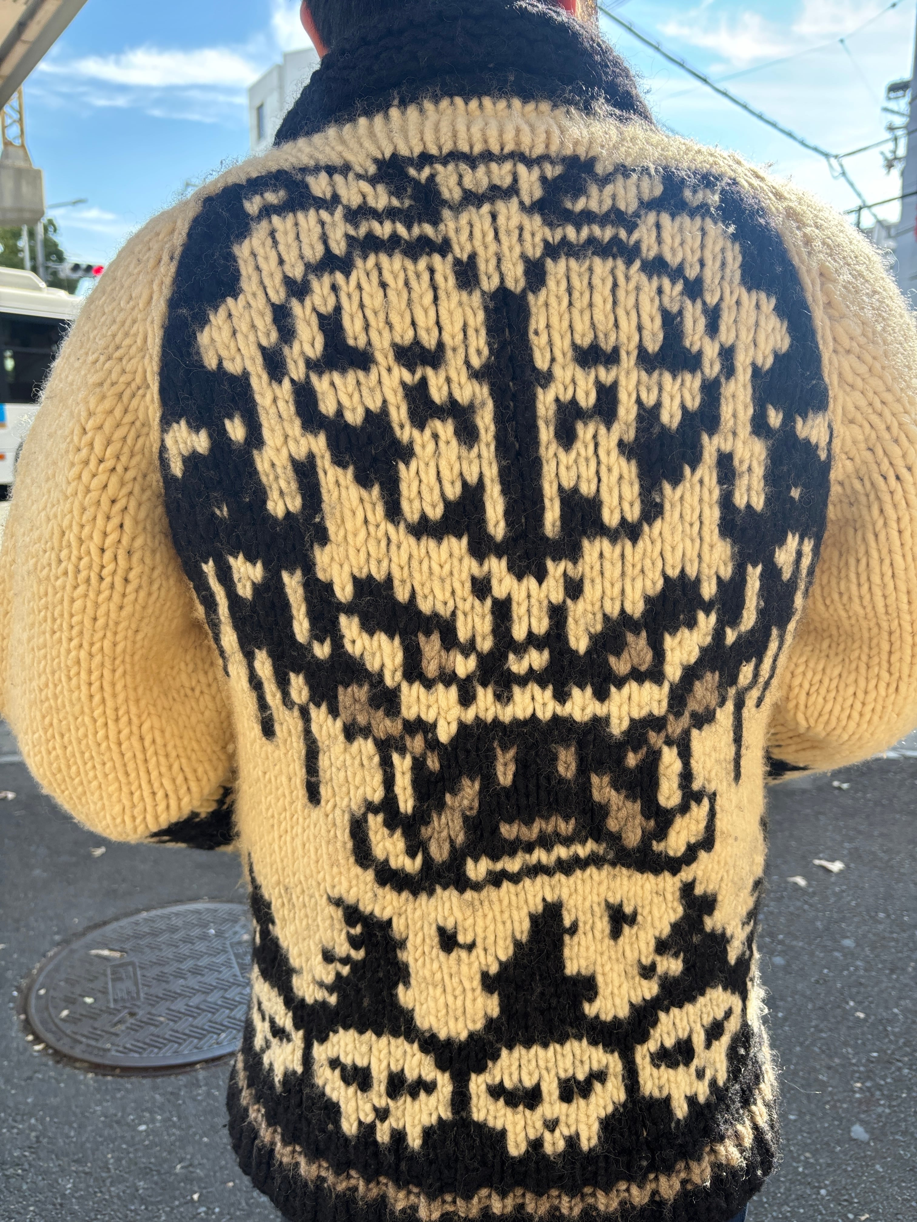 00s montage/Cowichan Sweater/Canada製/L/カウチンセ-タ-/プレデタ-/カ-ディガン/ニット/クリ-ム/ブラック/モンタージュ
