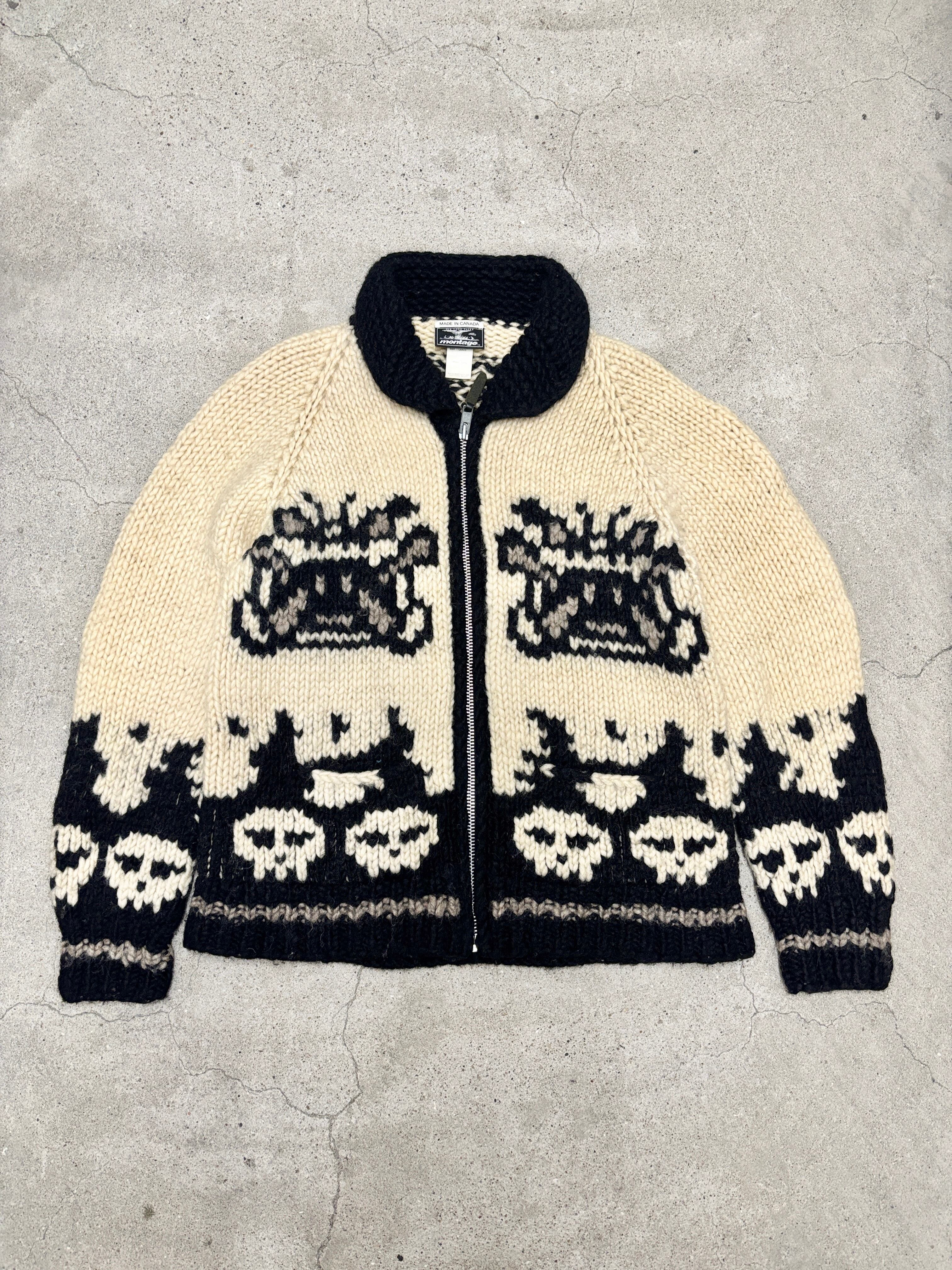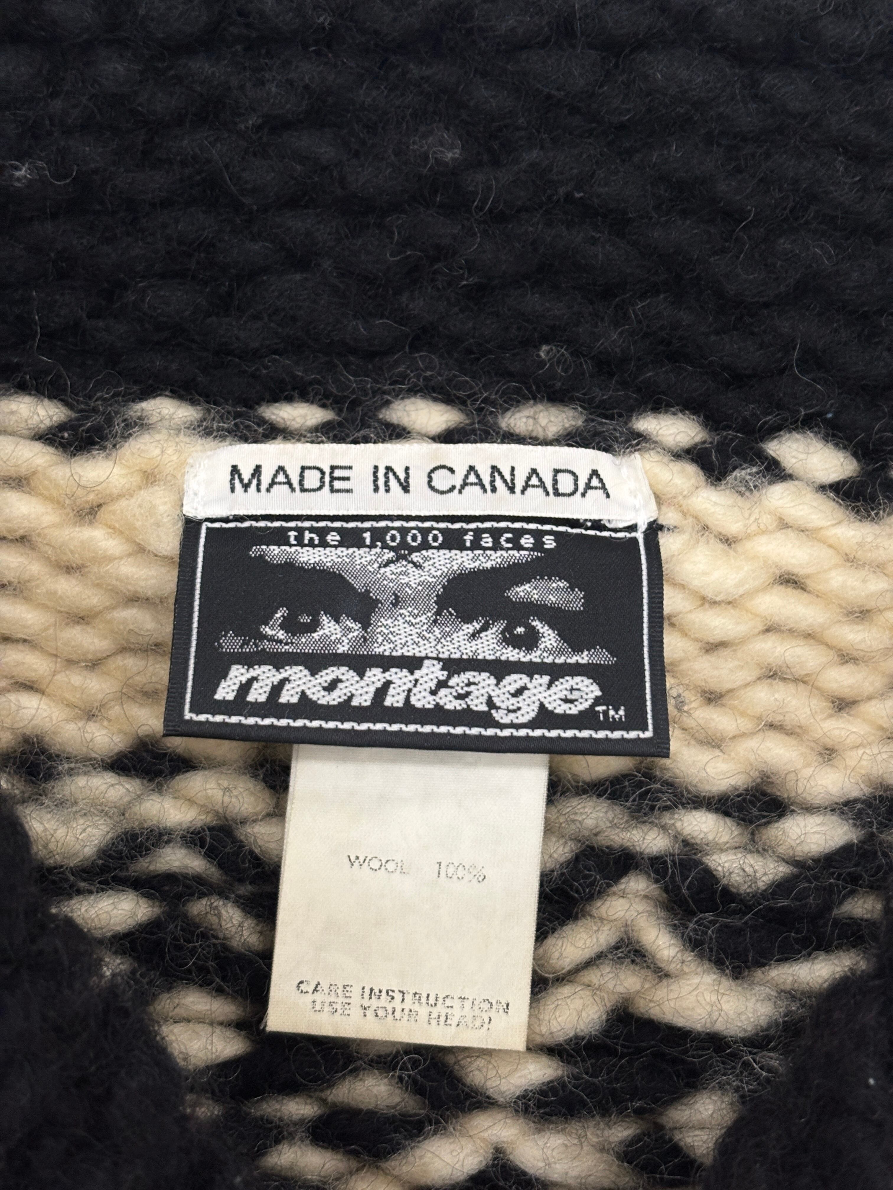 00s montage/Cowichan Sweater/Canada製/L/カウチンセ-タ-/プレデタ-/カ-ディガン/ニット/クリ-ム/ブラック/モンタージュ/裏原/古着/ア-カイブ