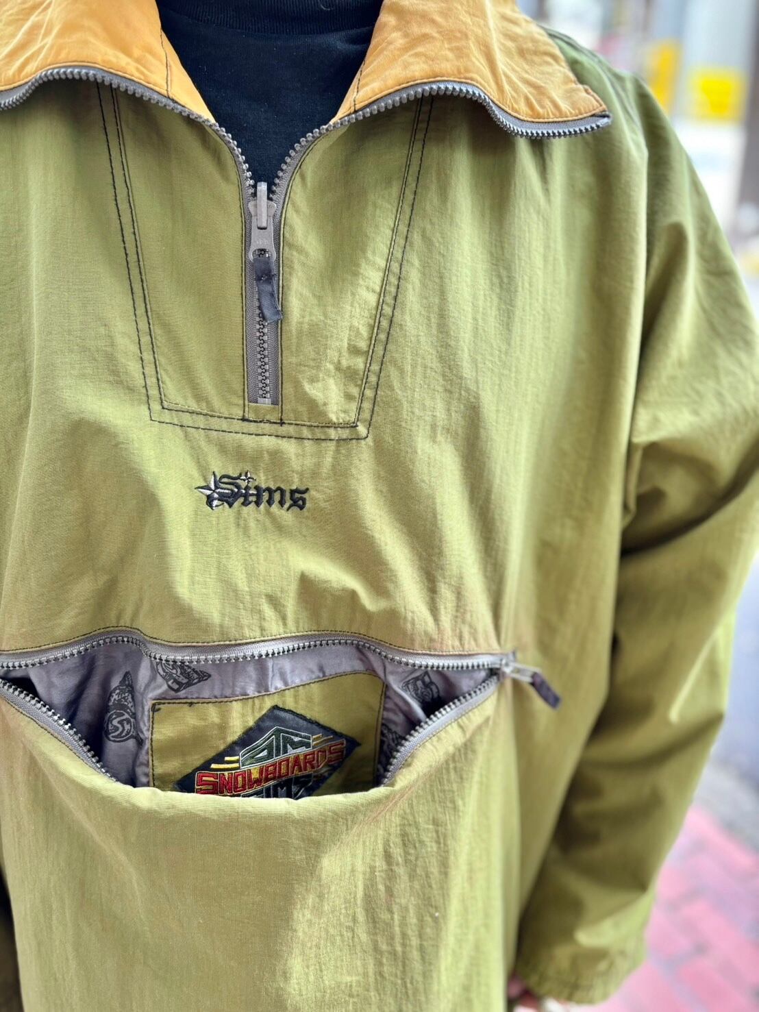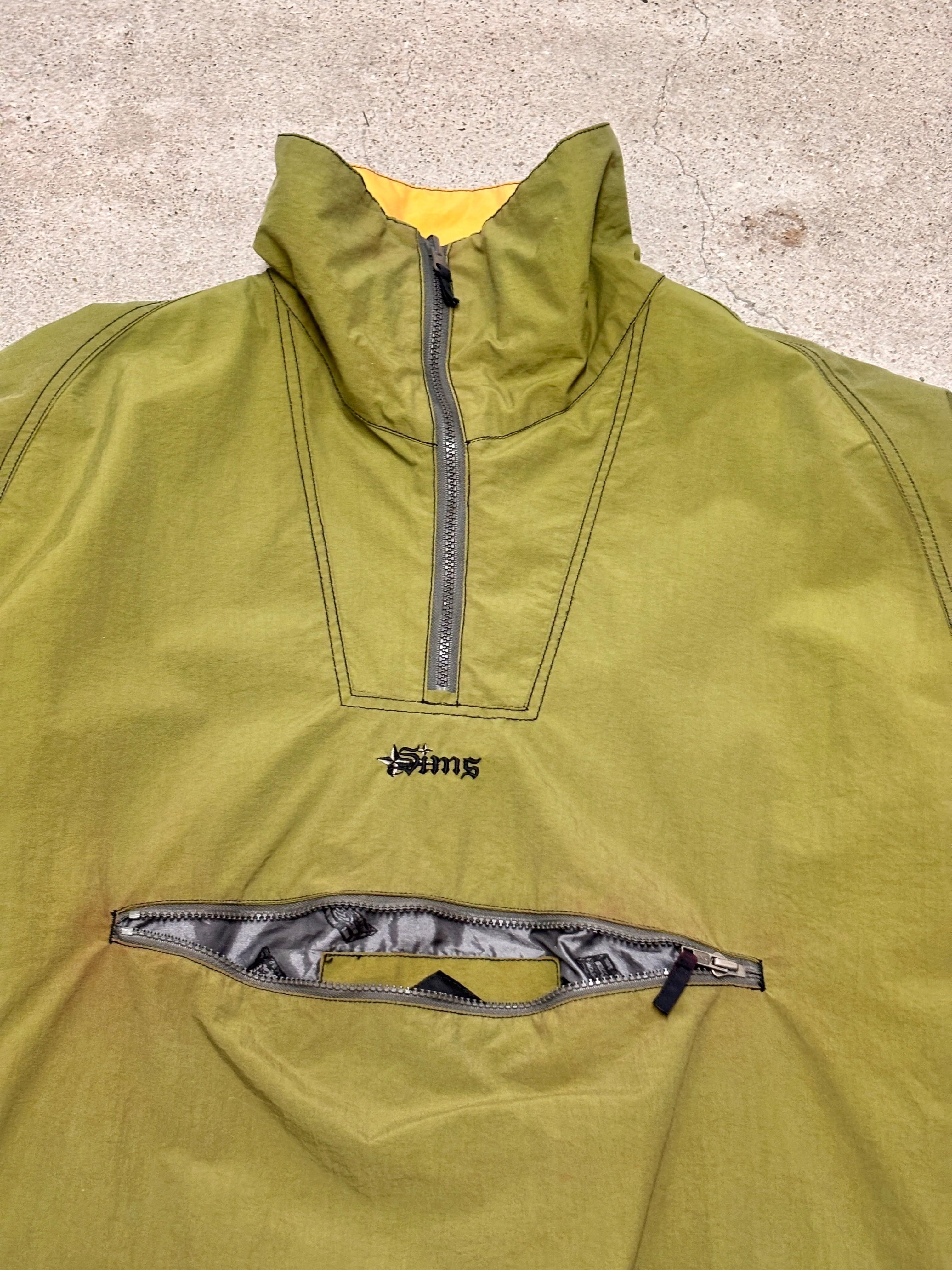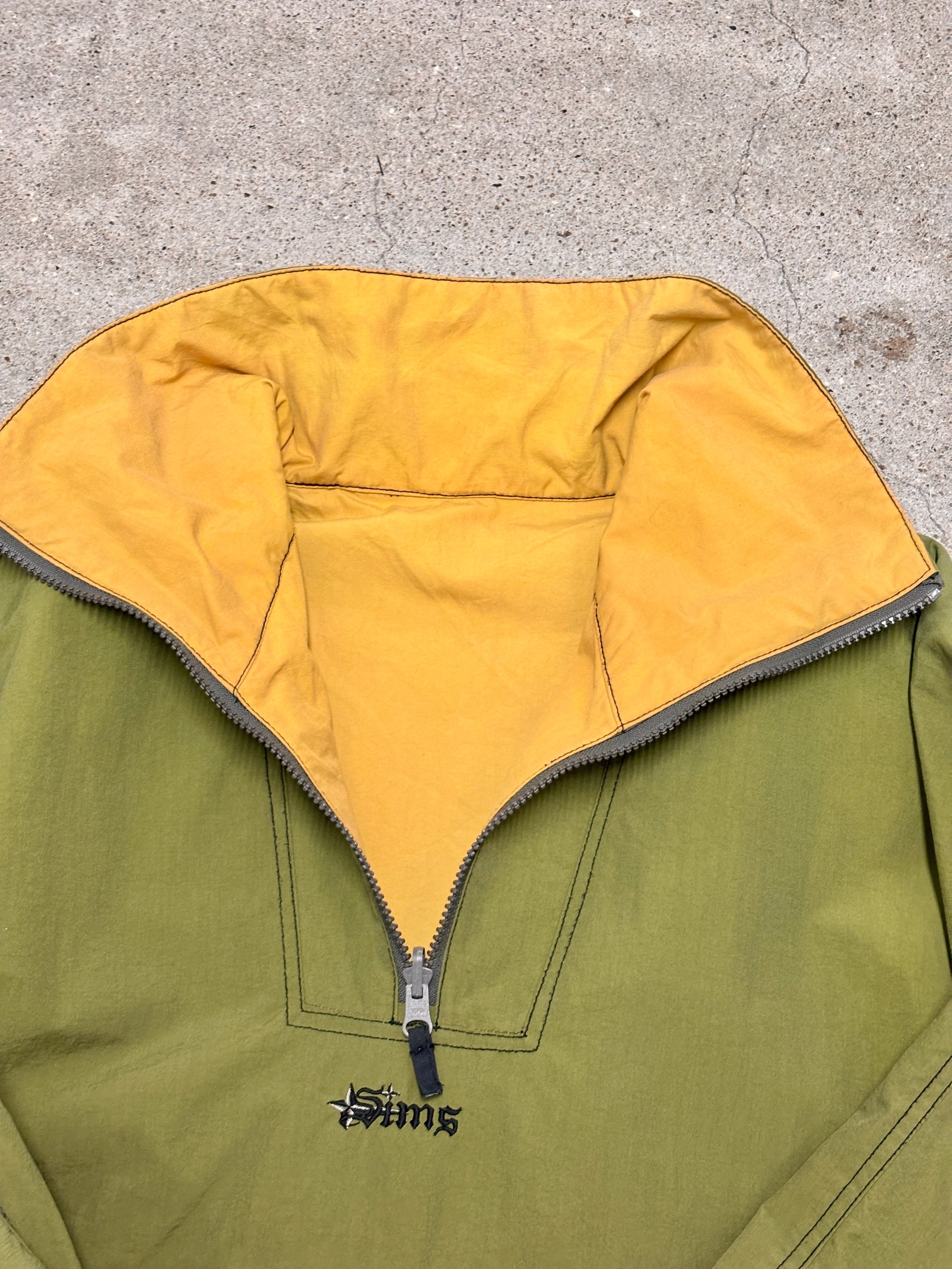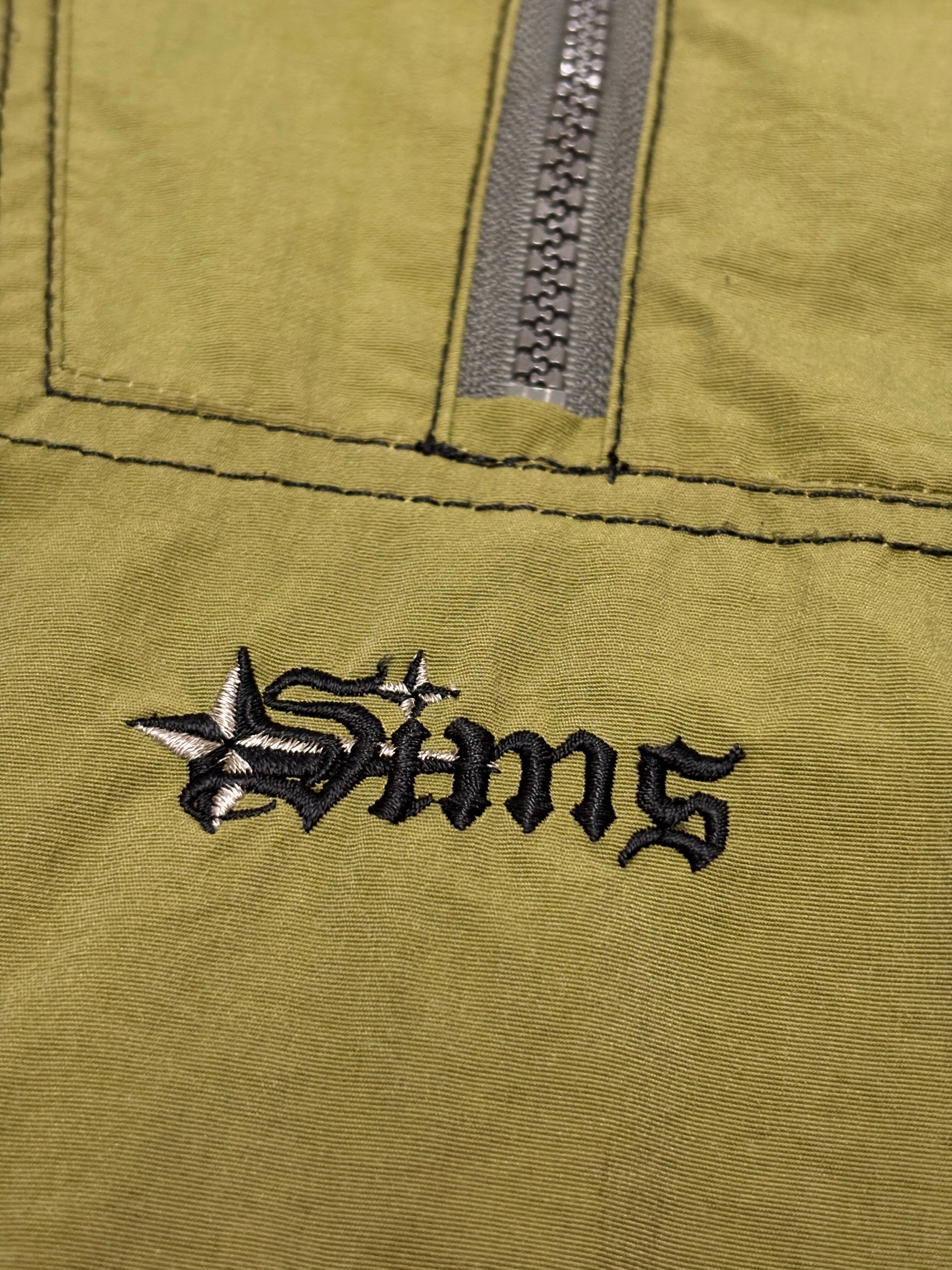90~00s SIMS SNOWBOARDS/Reversible Anorak Jacket/M/リバーシブルアノラックジャケット/ナイロンジャケット/ハ-フコ-ト/刺繍ロゴ/カ-キ/マスタ-ド/シムススノーボード