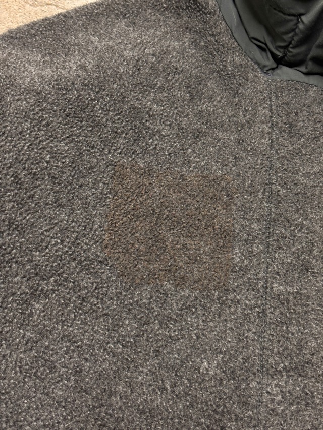 中古、古着特有の着用感があり、右胸にシミがあります。