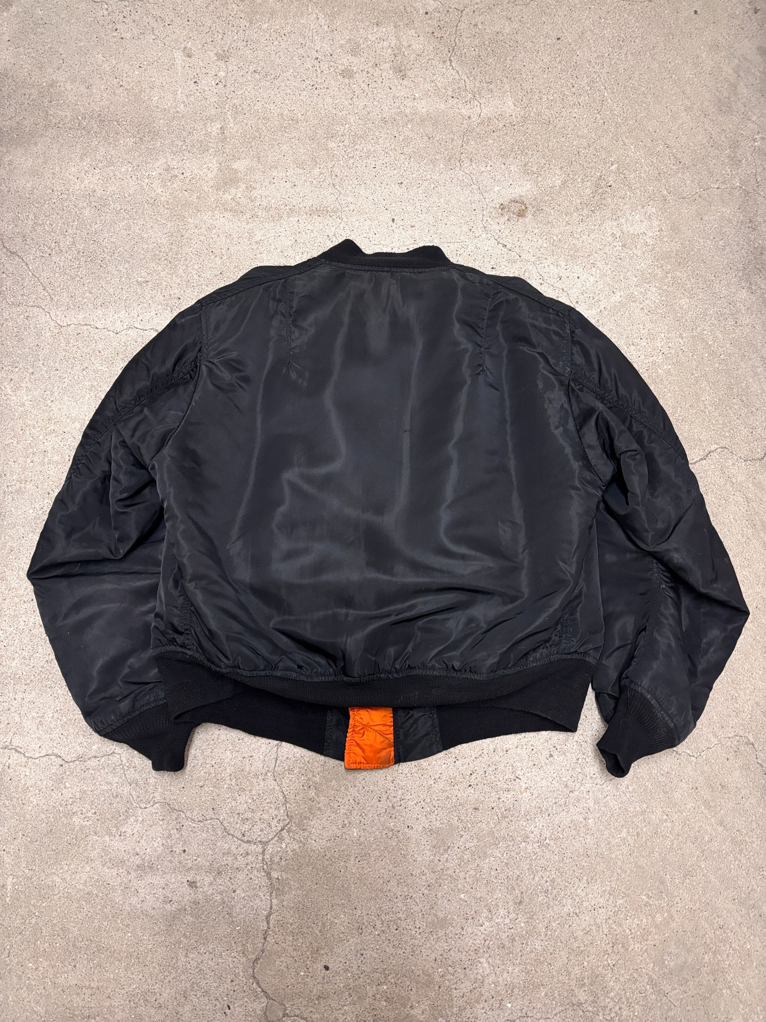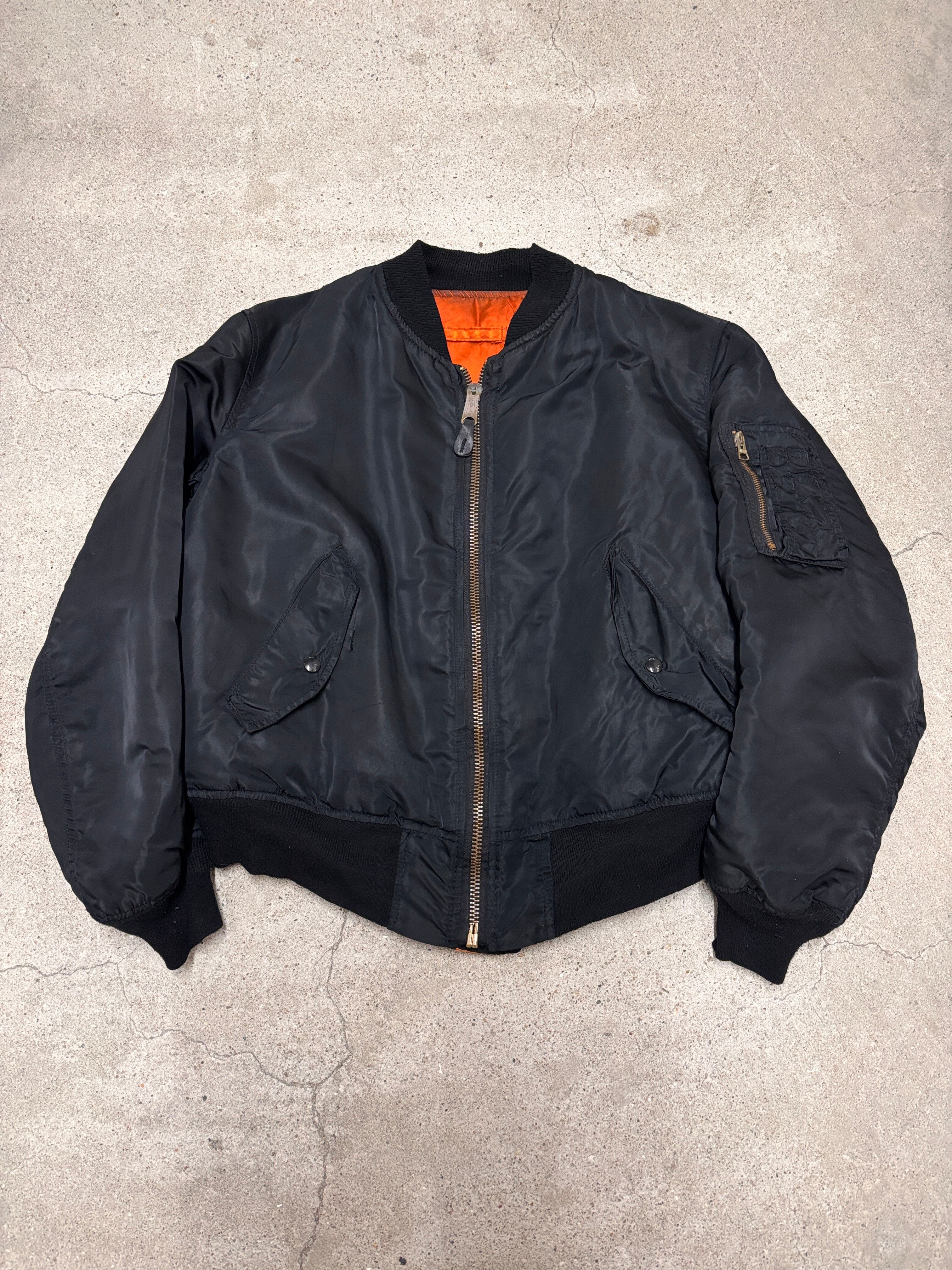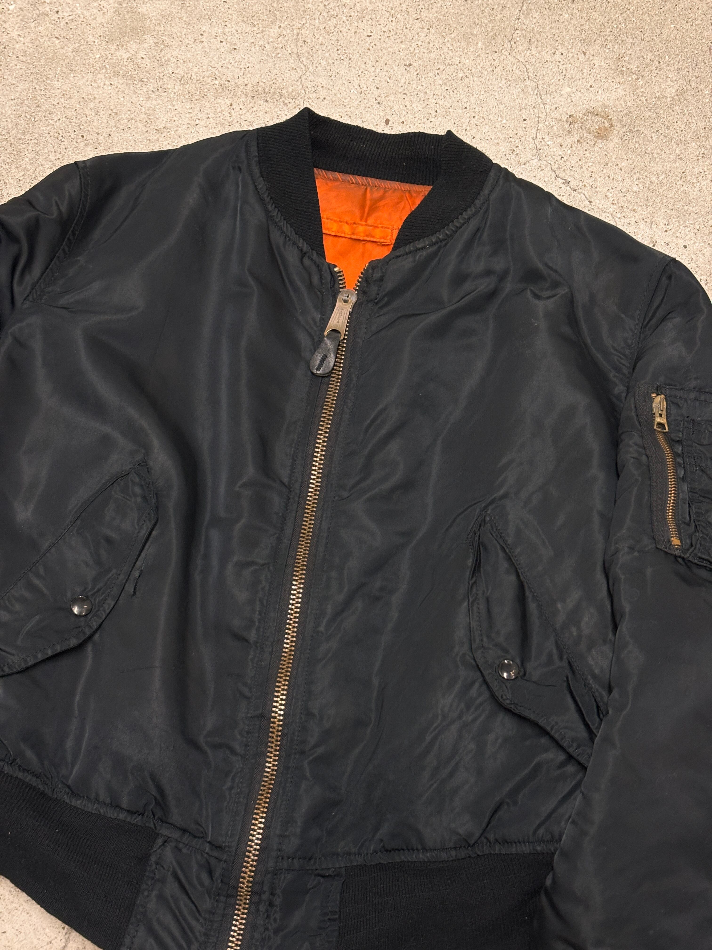 80~90s ALPHA/MA-1 Flight Jacket/USA製/L/フライトジャケット/ミリタリ-/ブラック/IDEALzip/アルファ/アメカジ/古着
