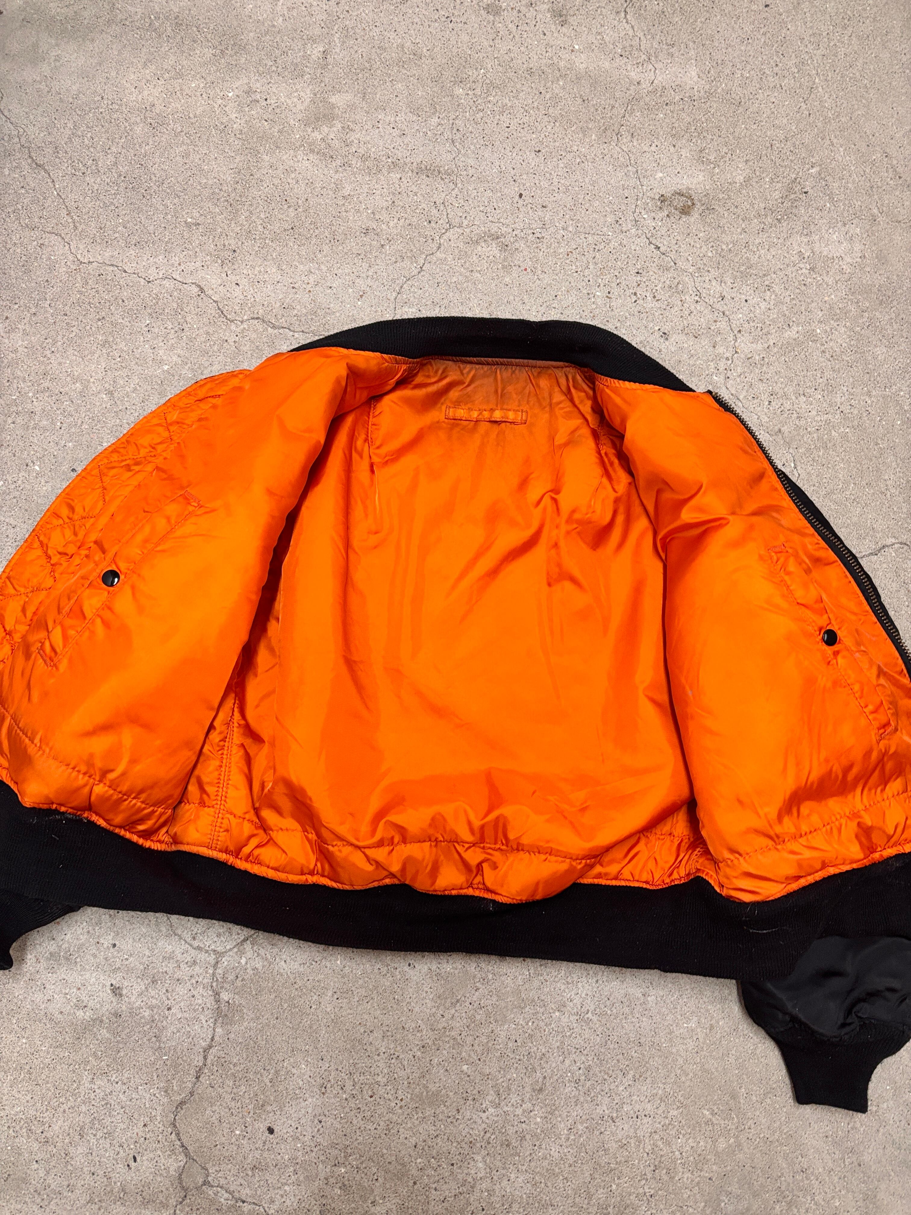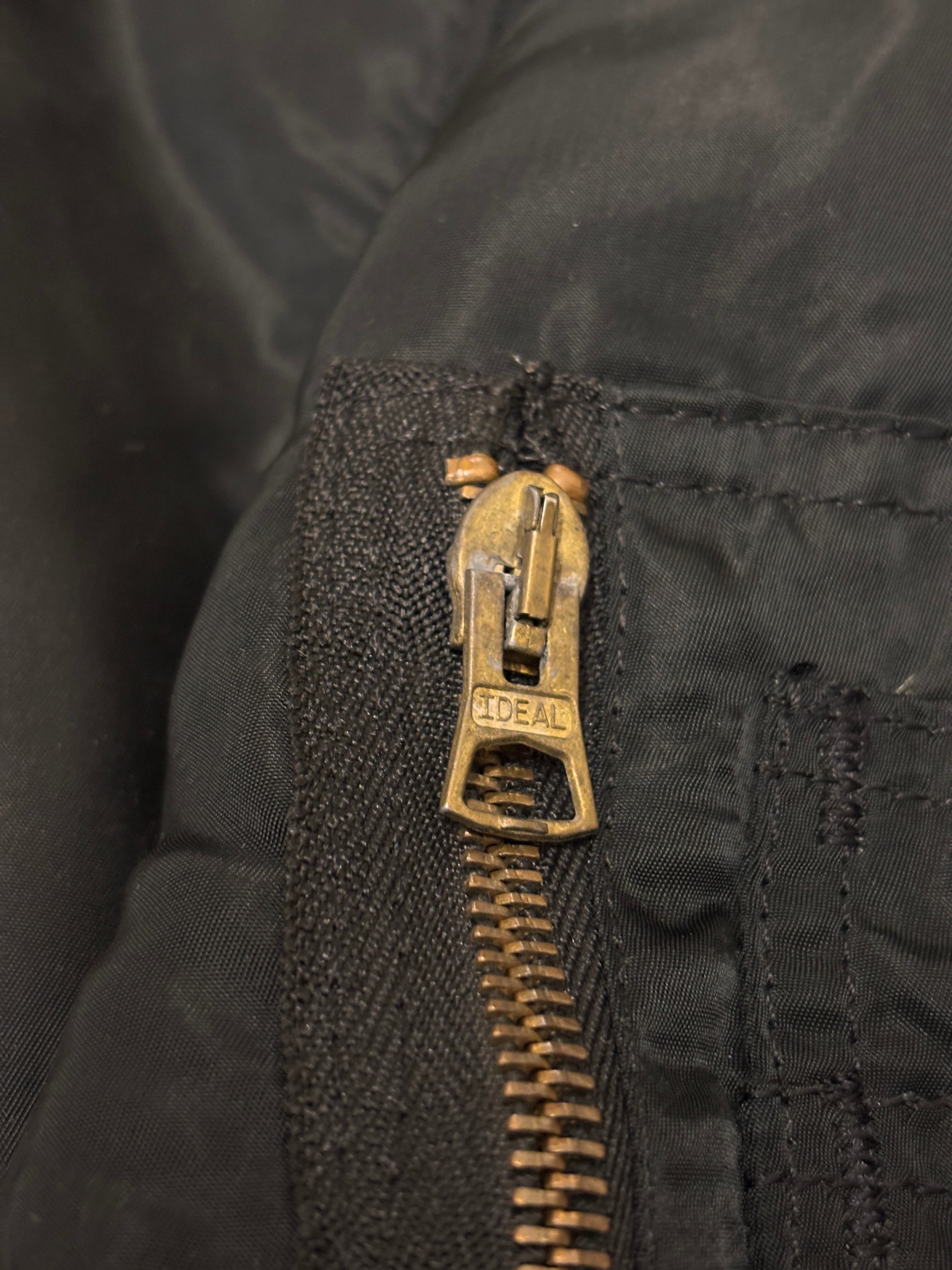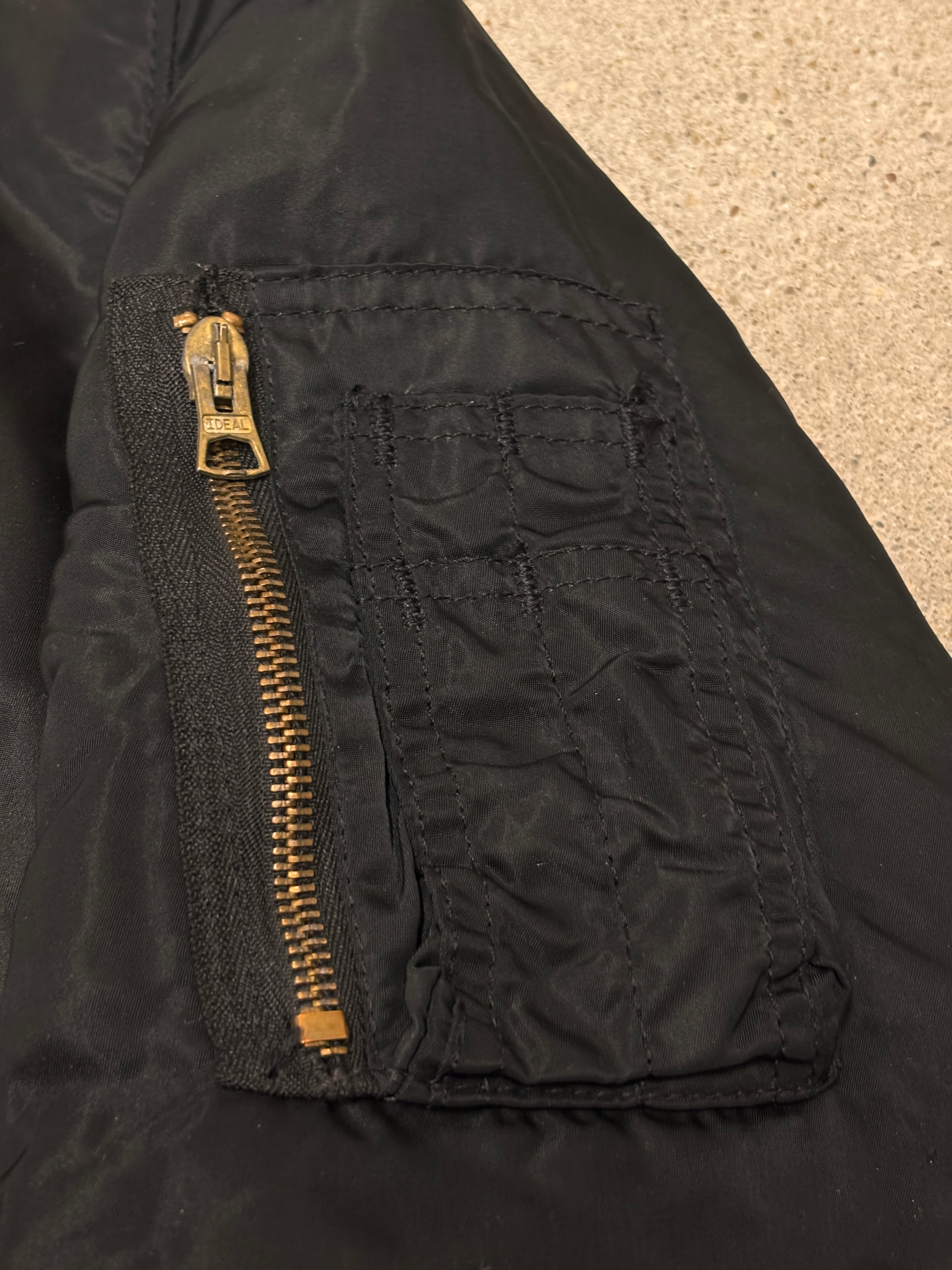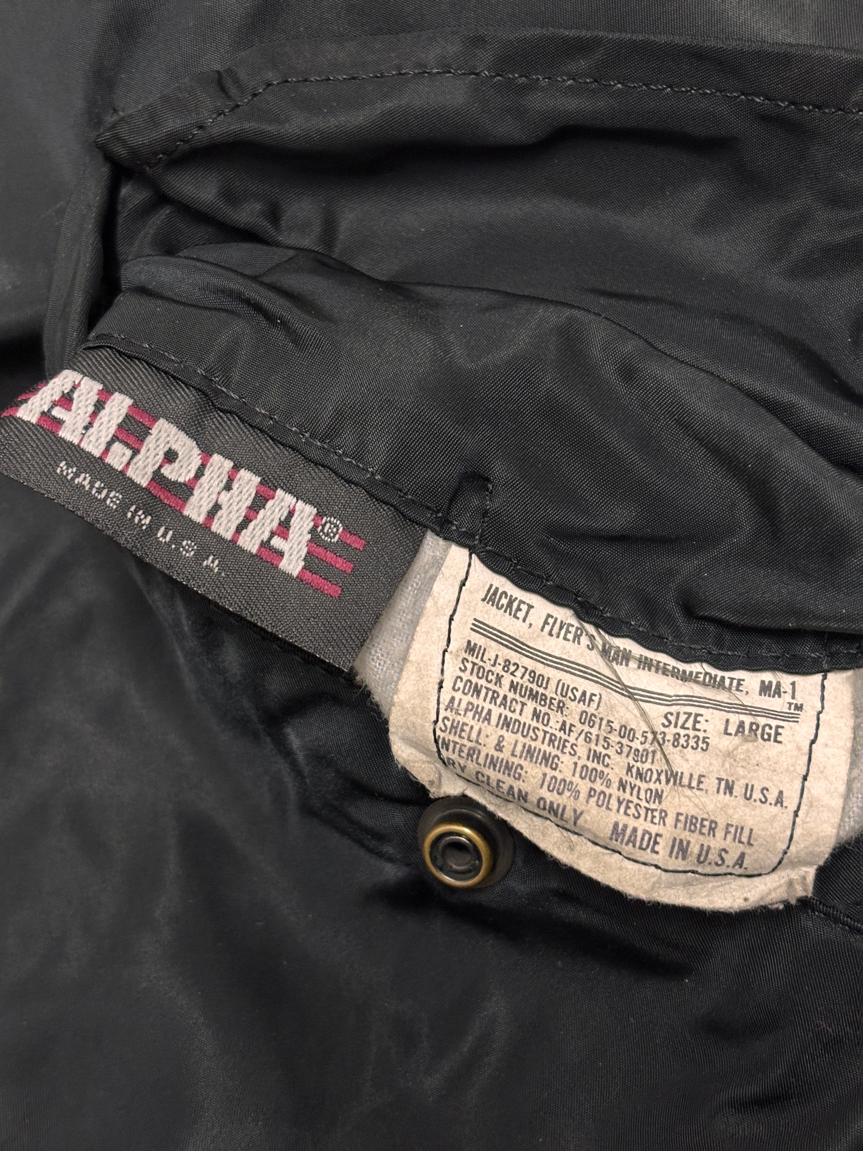 80~90s ALPHA/MA-1 Flight Jacket/USA製/L/フライトジャケット/ミリタリ-/ブラック/IDEALzip/アルファ/アメカジ/古着