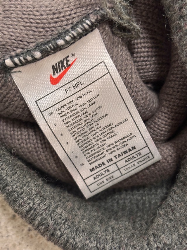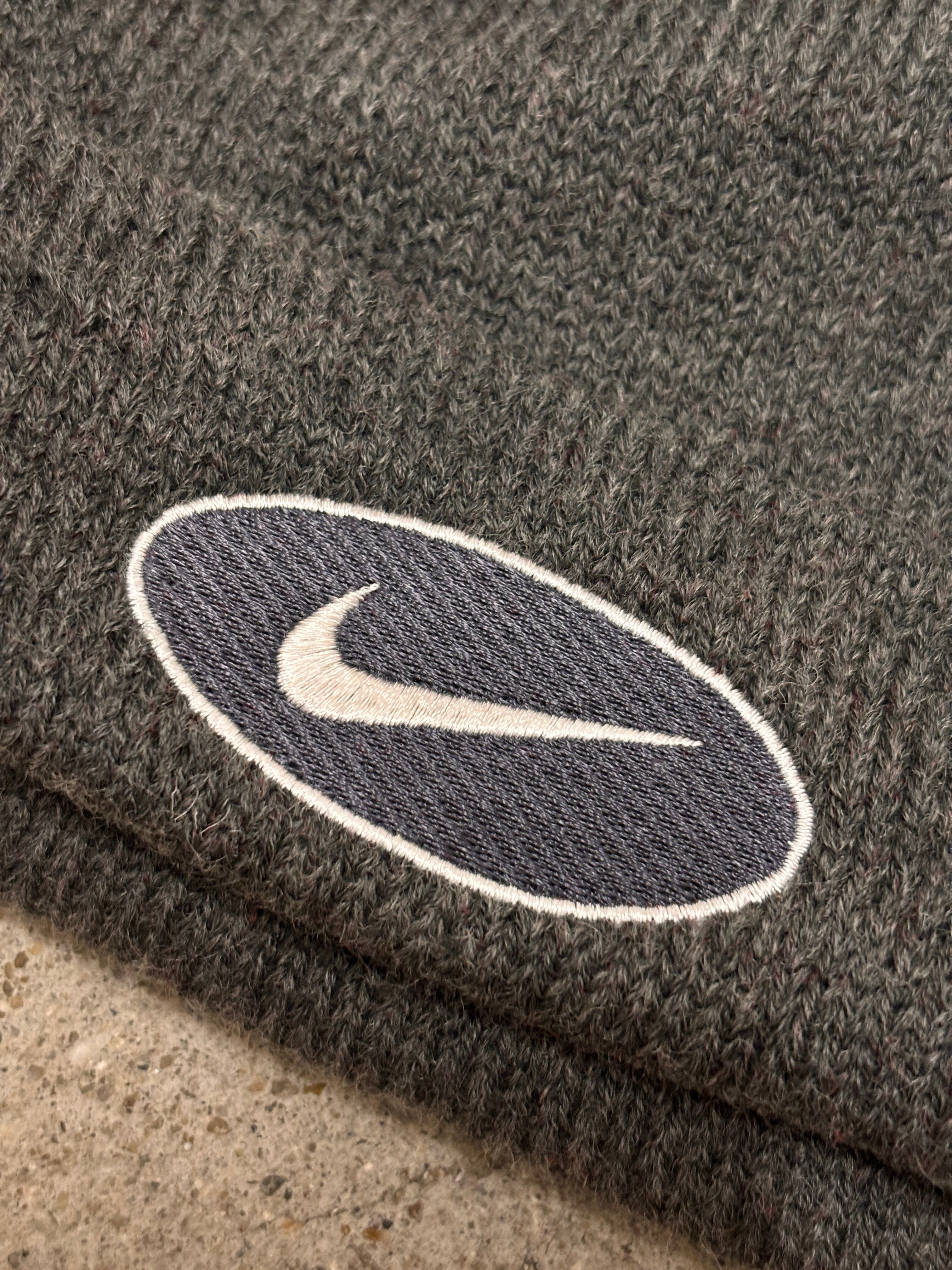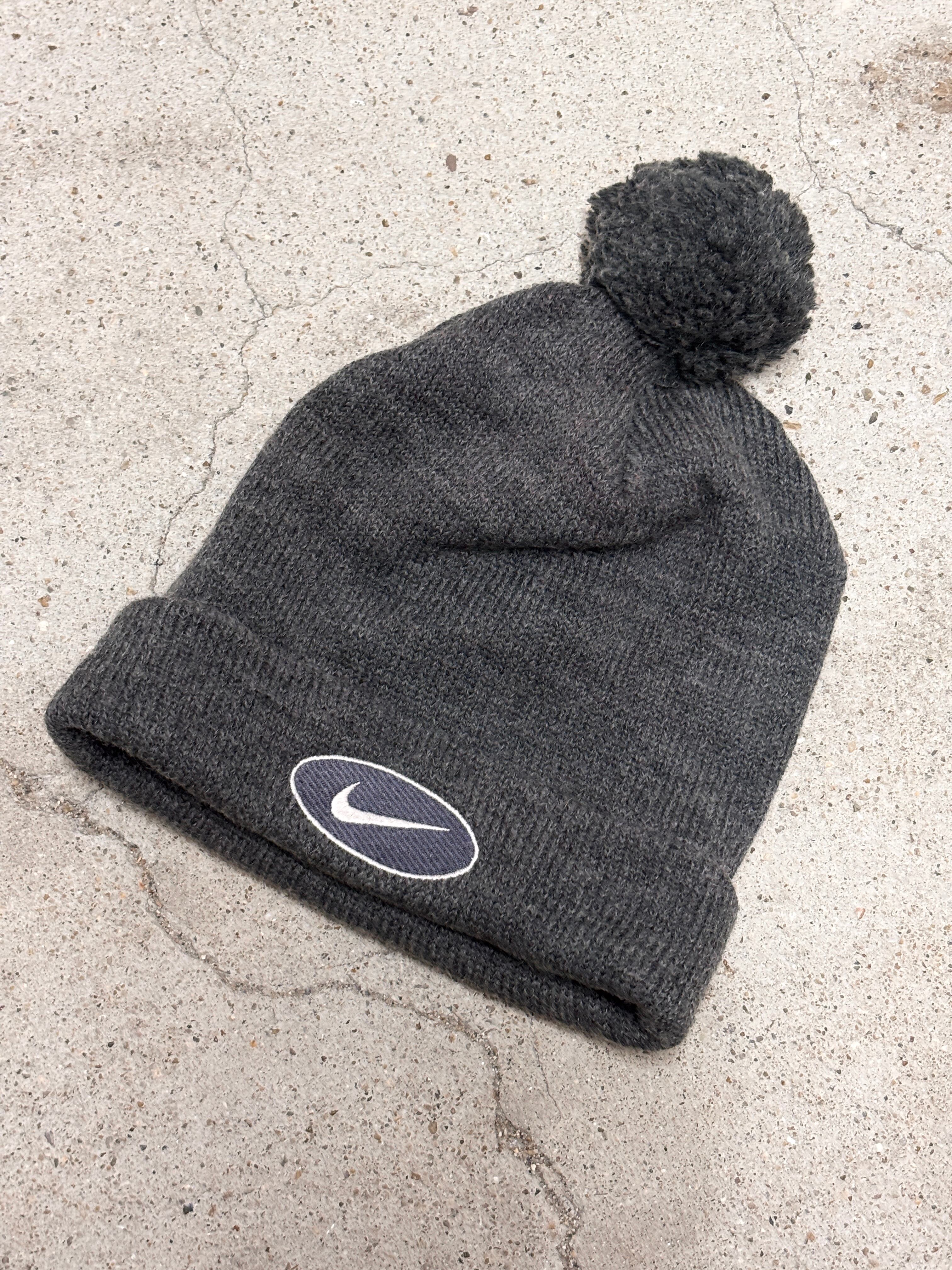 90~00s NIKE/Bon Bon Beanie/台湾製/Free/ビ-ニ-/ボンボンニット帽/スウッシュロゴ/ロゴパッチ/グレ-/ナイキ