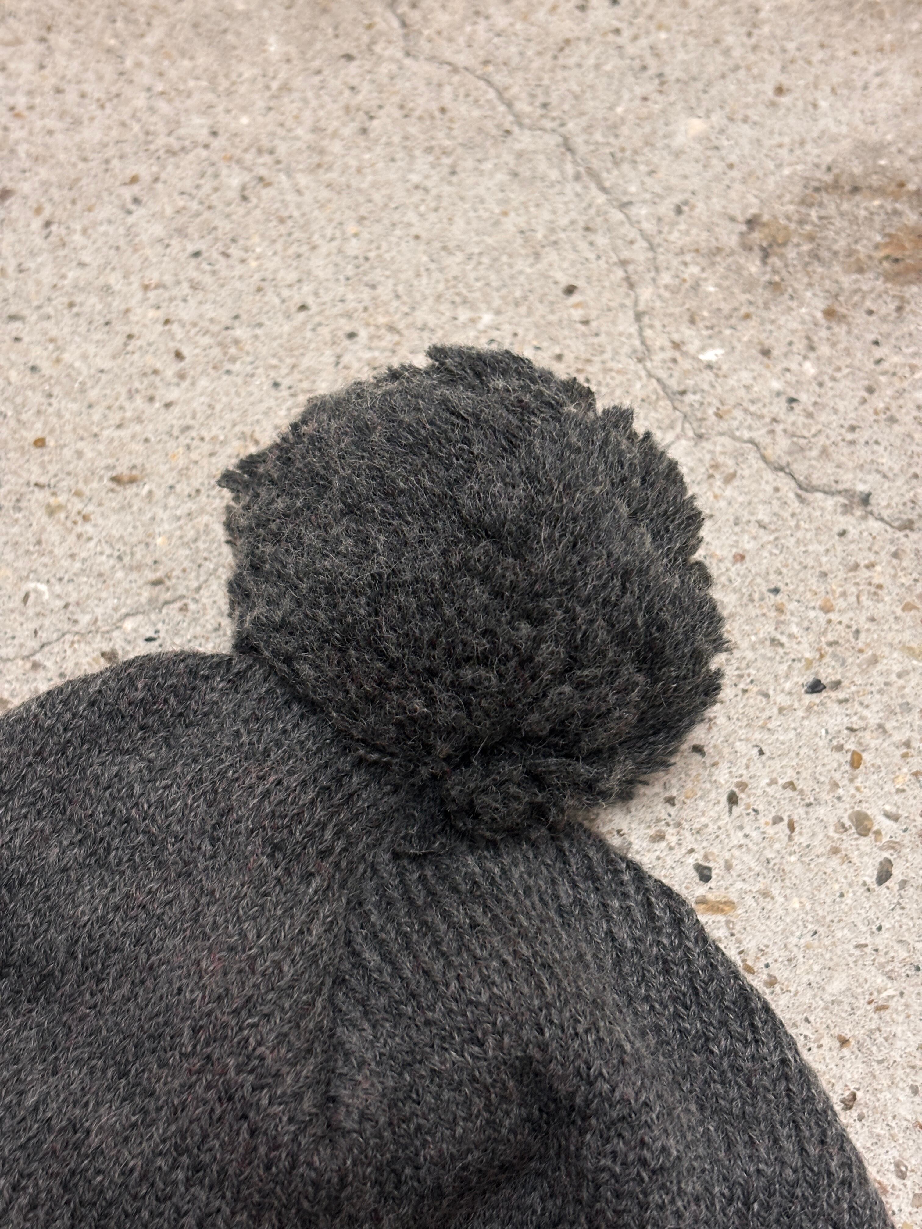 90~00s NIKE/Bon Bon Beanie/台湾製/Free/ビ-ニ-/ボンボンニット帽/スウッシュロゴ/ロゴパッチ/グレ-/ナイキ/帽子/古着