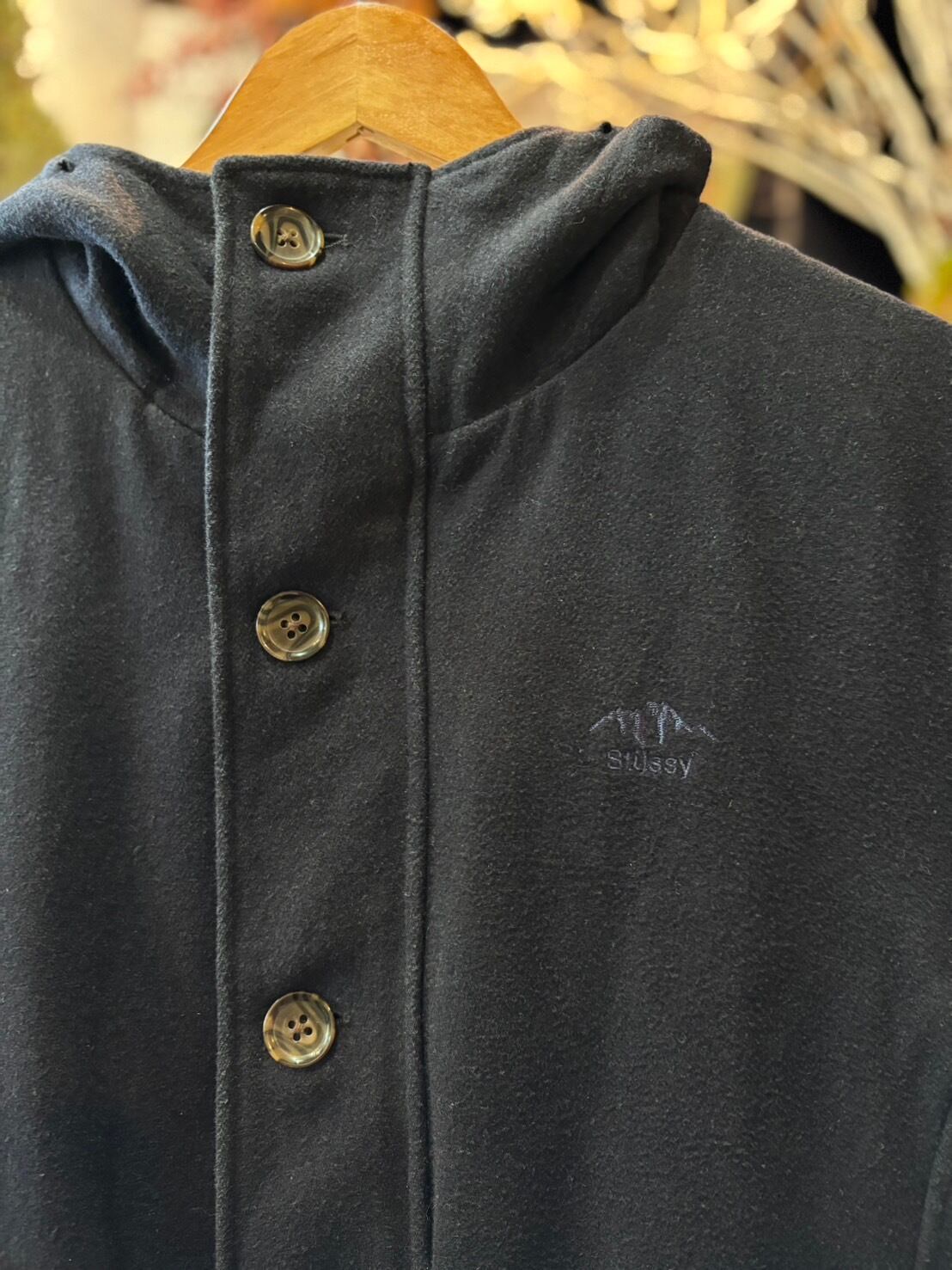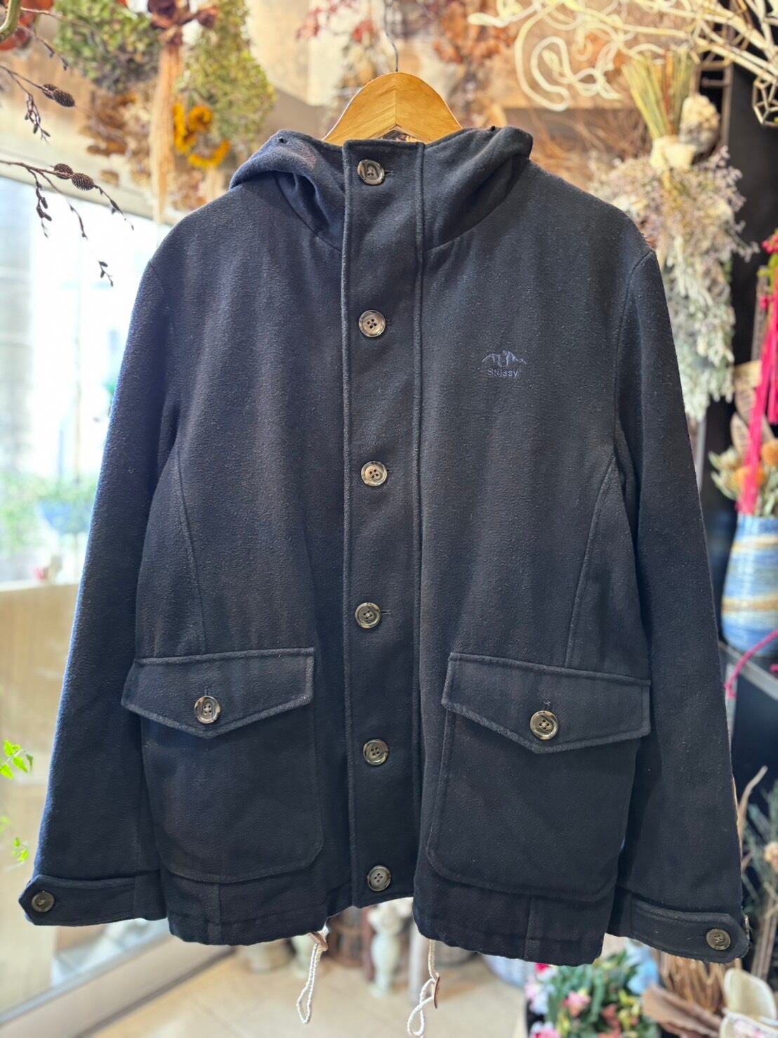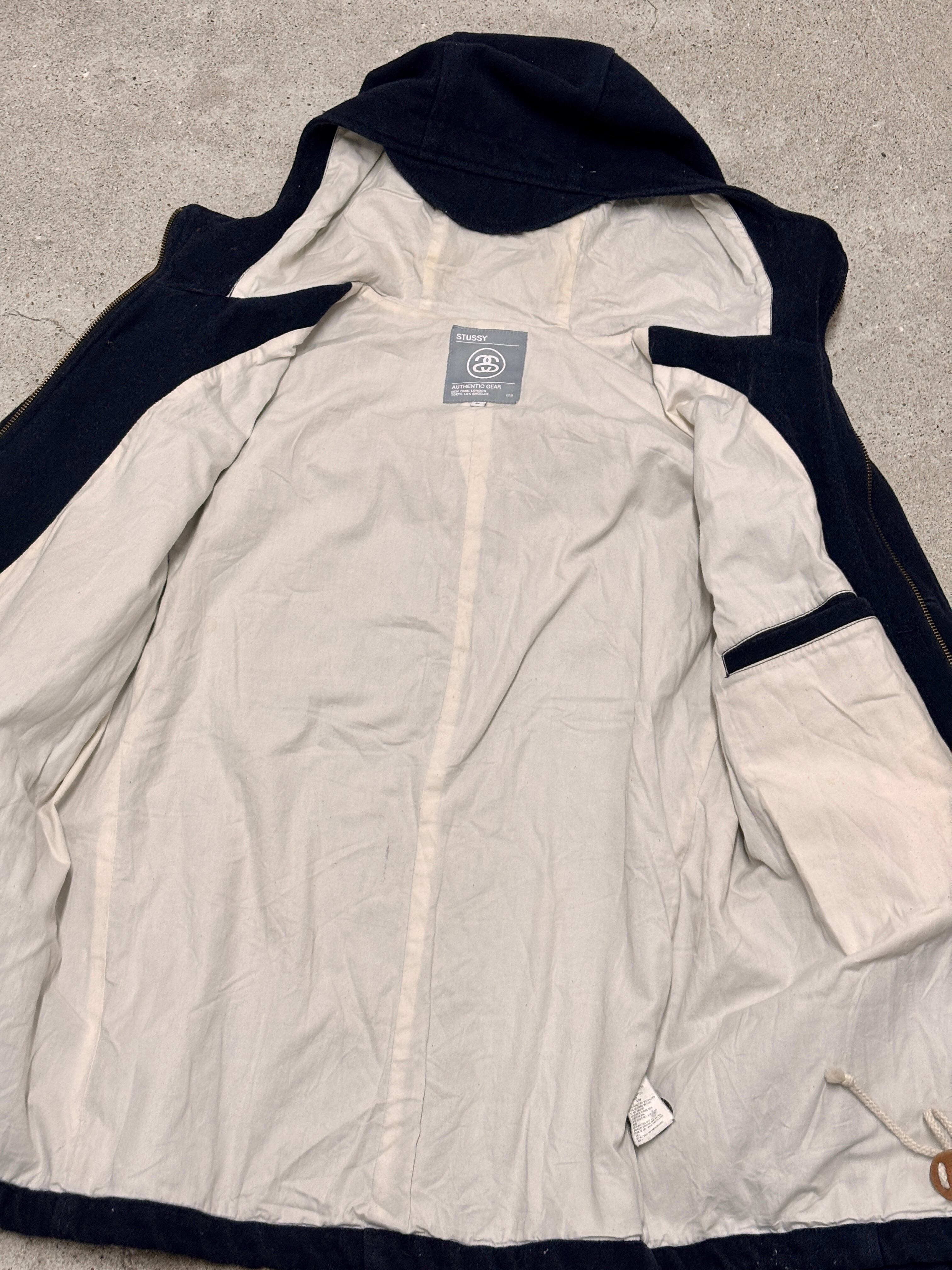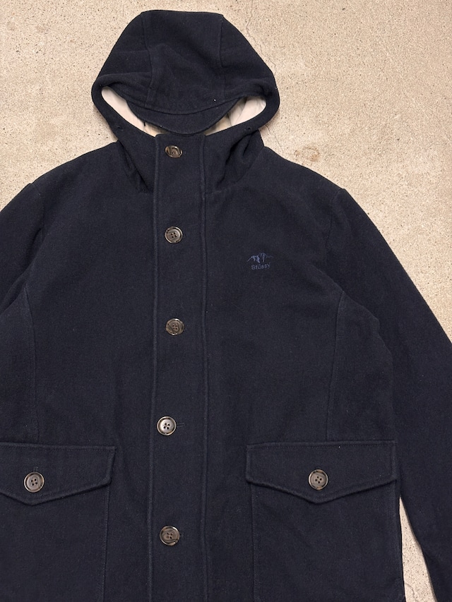 00~10s STUSSY/Wool Jacket/L/ウールジャケット/ハ-フコ-ト/刺繍ロゴ/ネイビ-/ステューシー