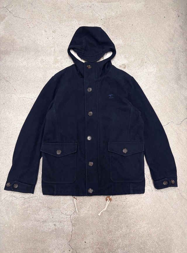 00~10s STUSSY/Wool Jacket/L/ウールジャケット/ハ-フコ-ト/刺繍ロゴ/ネイビ-/ステューシー/古着/ア―カイブ