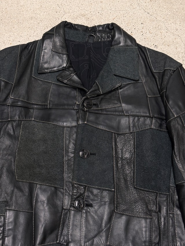 00s NEIGHBORHOOD/Patchwork Leather Jacket/M/パッチワ-クレザ-ジャケット/牛革/NBHD/ネイバーフッド