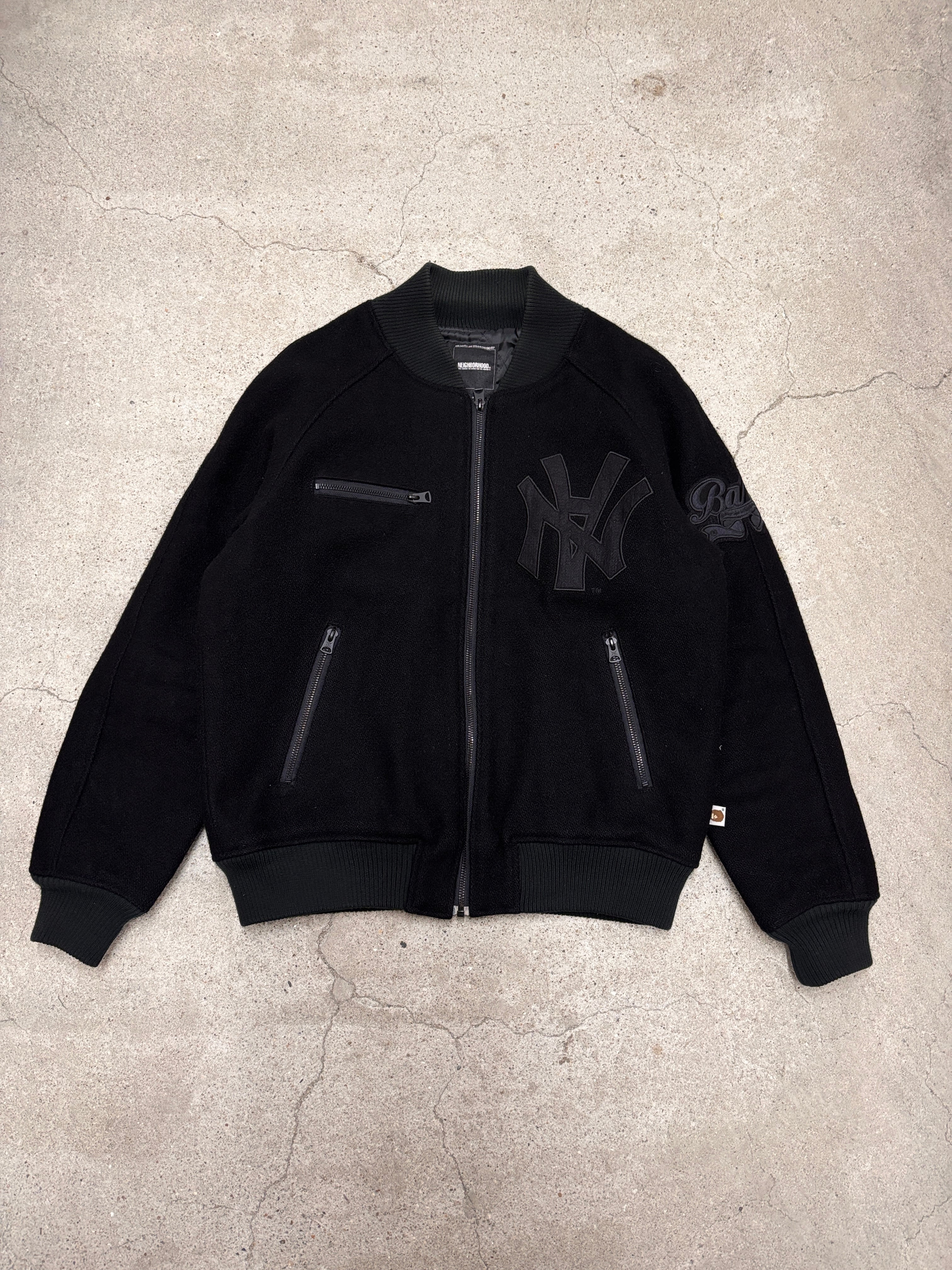 00s NEIGHBORHOOD × A BATHING APE/BROTHERHOOD Varsity Jacket/2002年/M/スタジャン/ウ-ルジャケット/ブラザ-フッド/BAPE/アベイシングエイプコラボ/NBHD/ネイバ-フッド