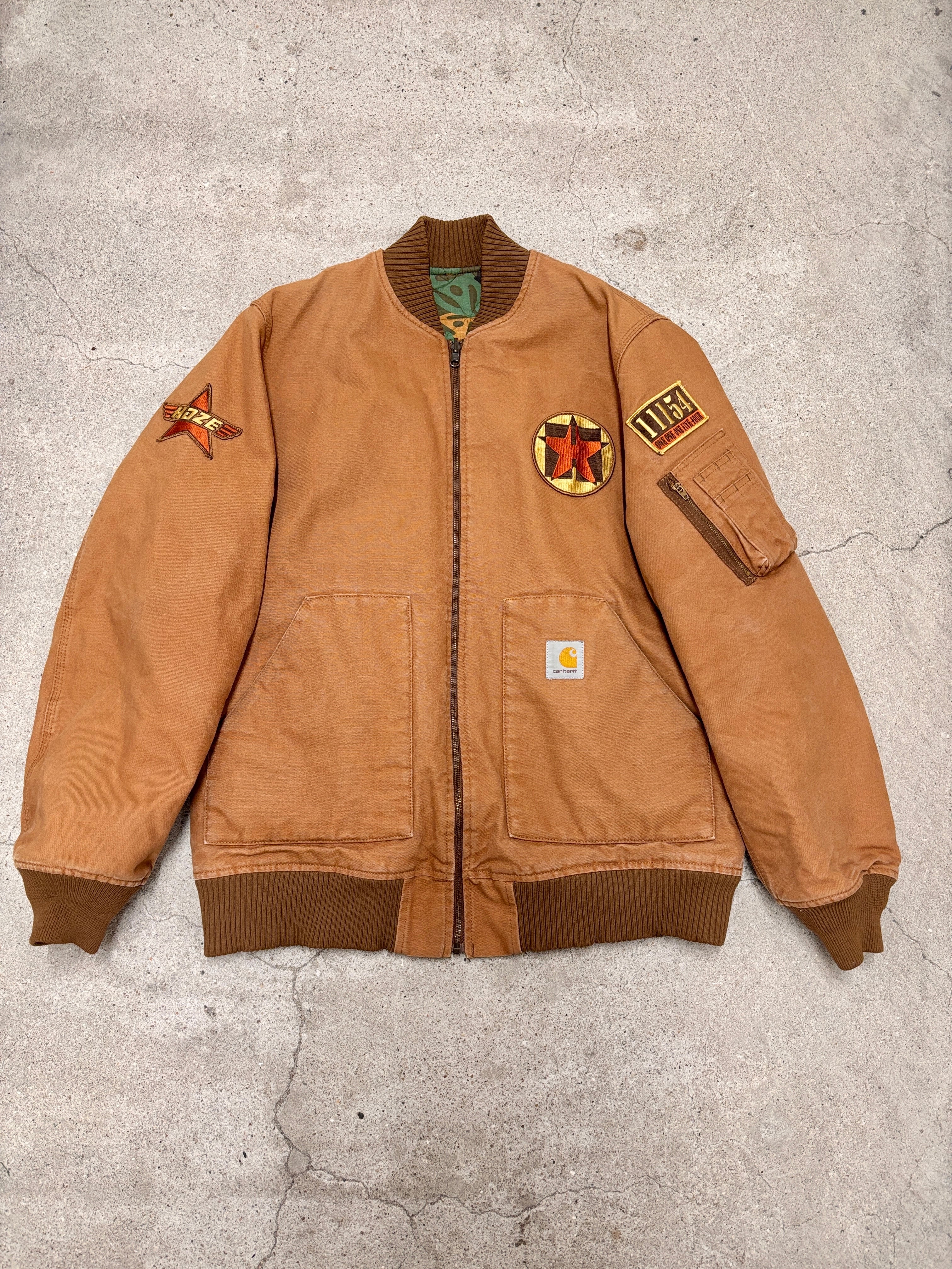00s Carhartt × ERIC HAZE × DJ MURO/DUCK ADAPTER CAMO Reversible Jacket/L/リバ-シブルダックジャケット/アダプタカモ/ロゴワッペン/クラウンデザイン/キャメル/カーキ/エリックヘイズ/カーハ-ト/古着/ア―カイブ