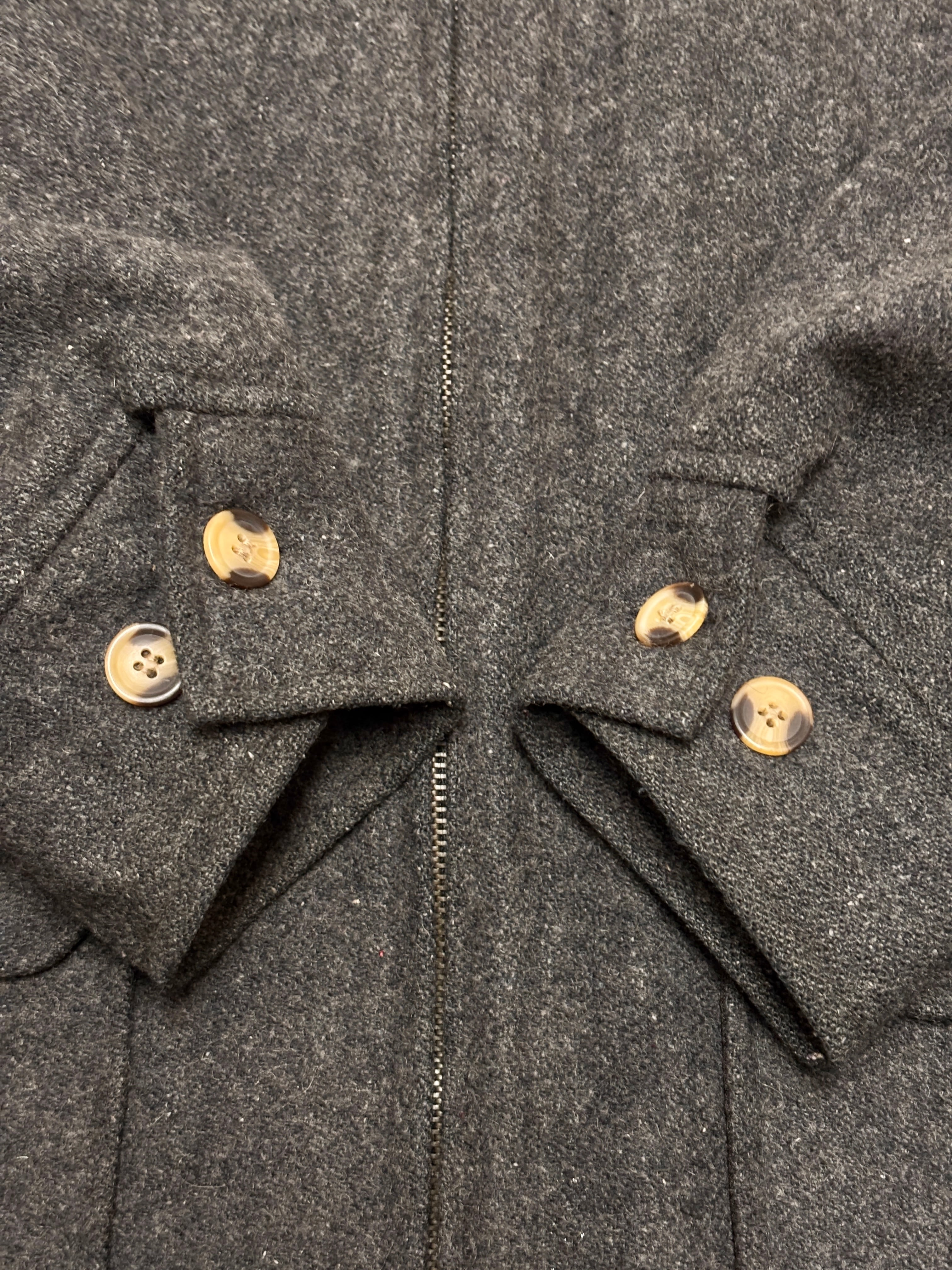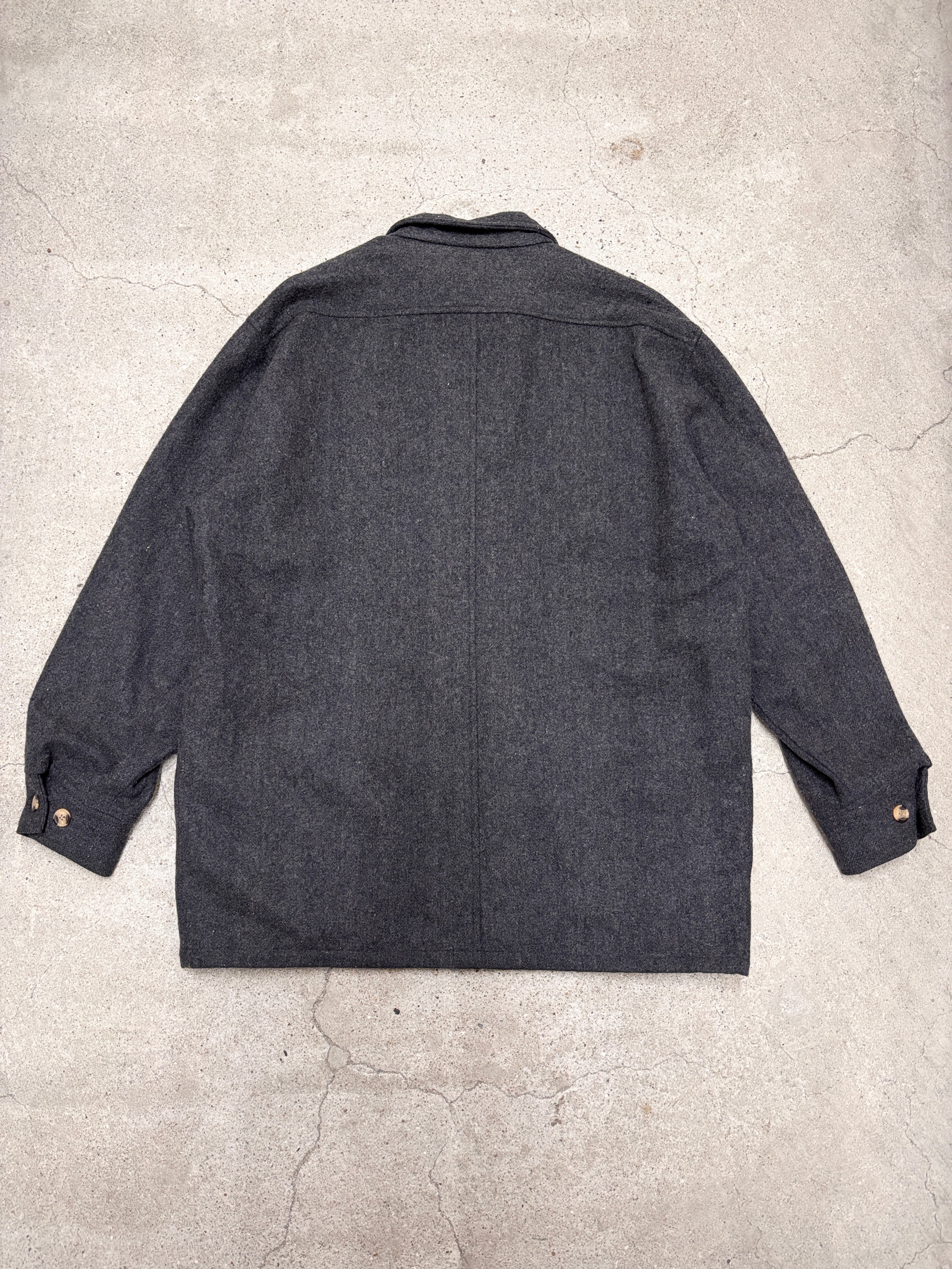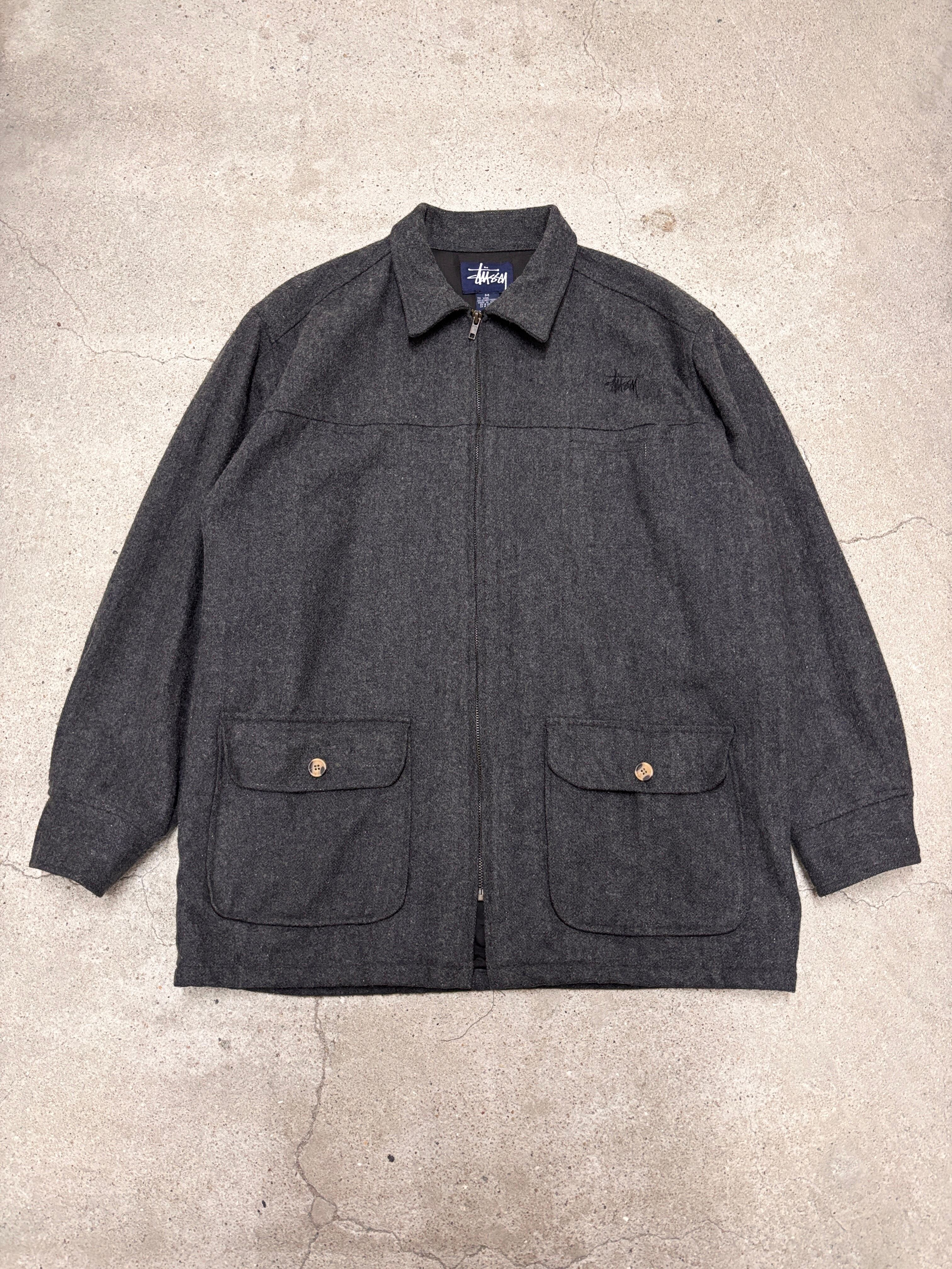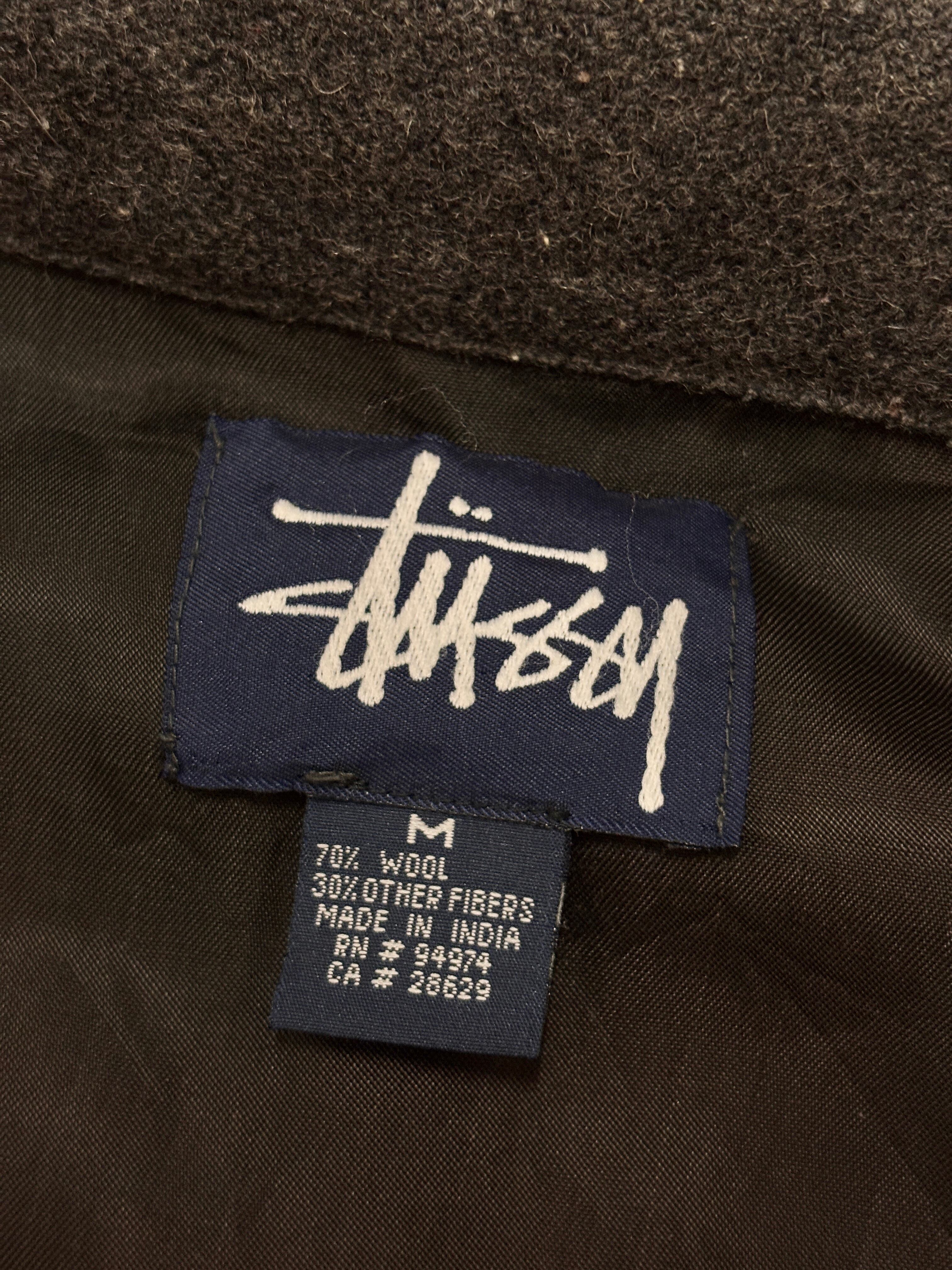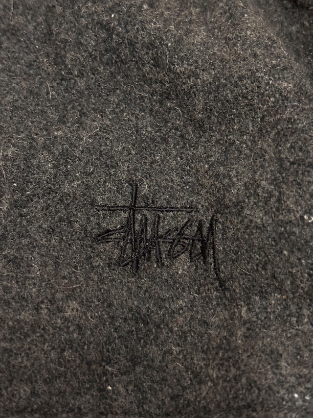 90~00s OLD STUSSY/Logo embroidery Wool Jacket/紺タグ/INDIA製/M (XL相当)/刺繍ロゴ/ウ-ルジャケット/ハ-フコ-ト/ストックロゴ/グレ-/ステューシー/オ-ルドステューシー/古着/ア―カイブ