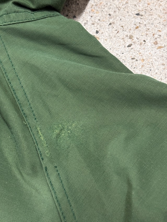 中古、古着特有の着用感があり、左肩に擦れがあります。