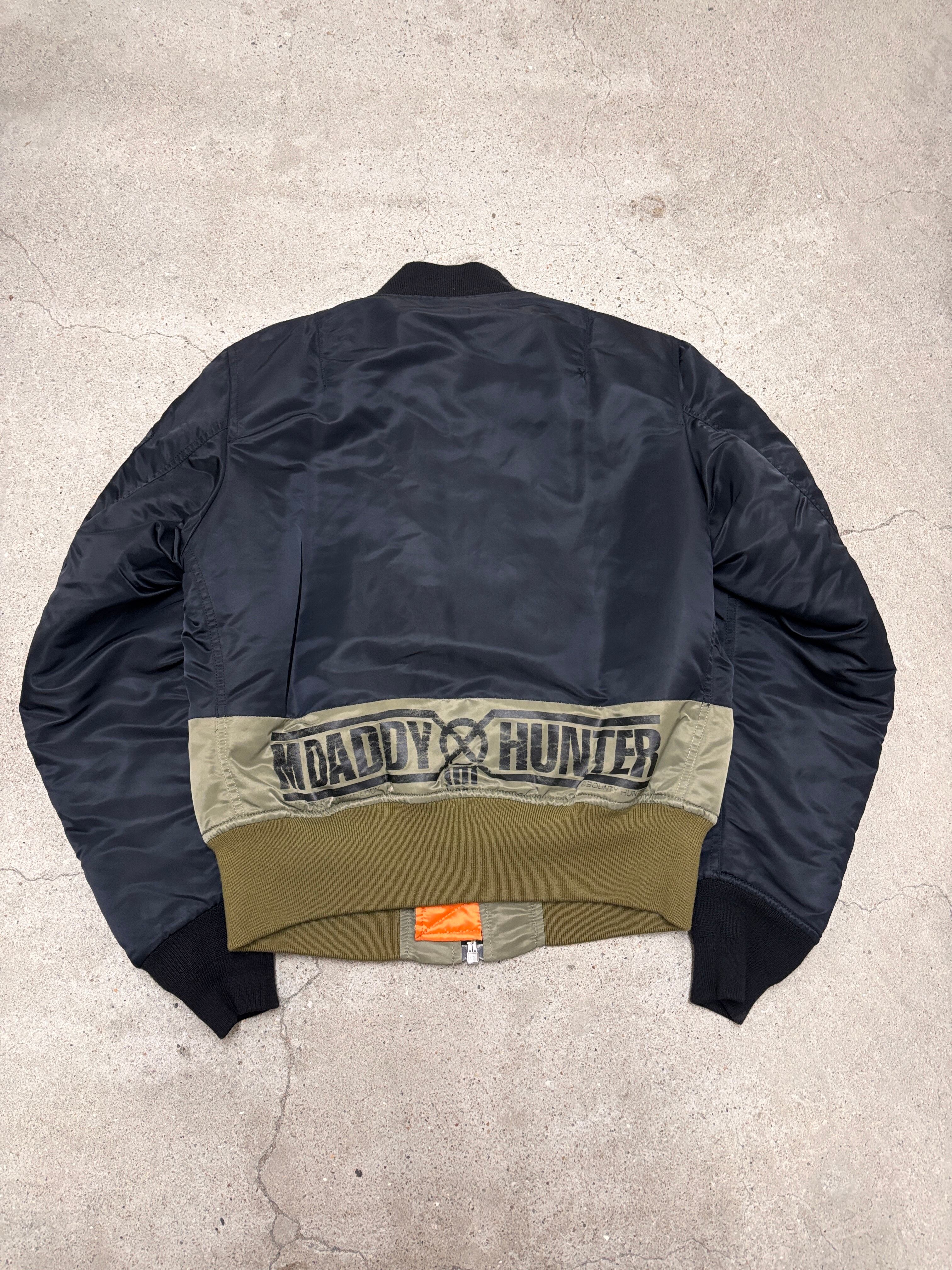 10s MACKDADDY × BOUNTY HUNTER/15th Anniversary MA-1 Flight Jacket/2012年/M/フライトジャケット/ミリタリ-/ロゴプリント/ブラック/カ-キ/BxH/バウンティーハンターコラボ/マックダディ-/古着/ア―カイブ