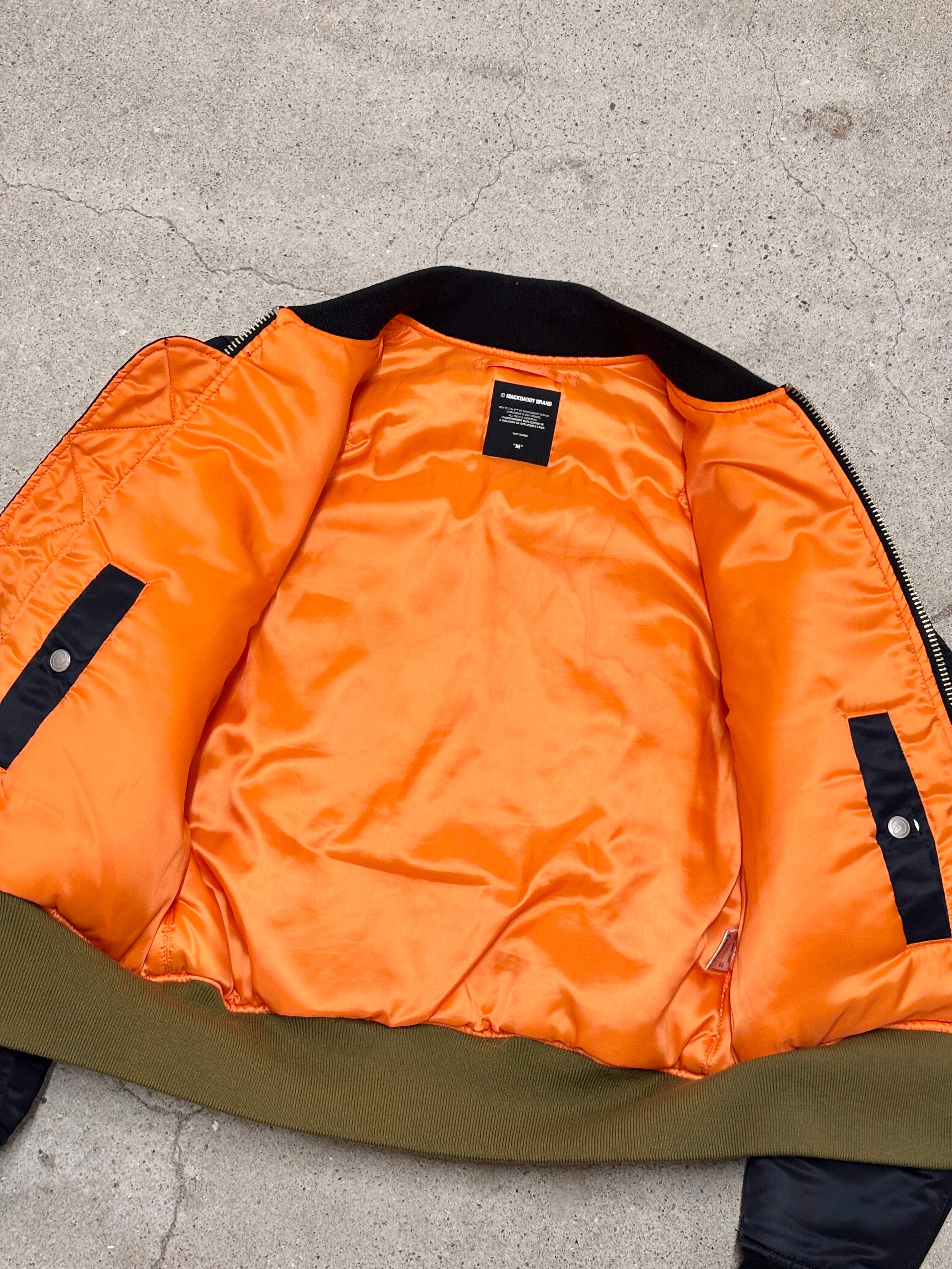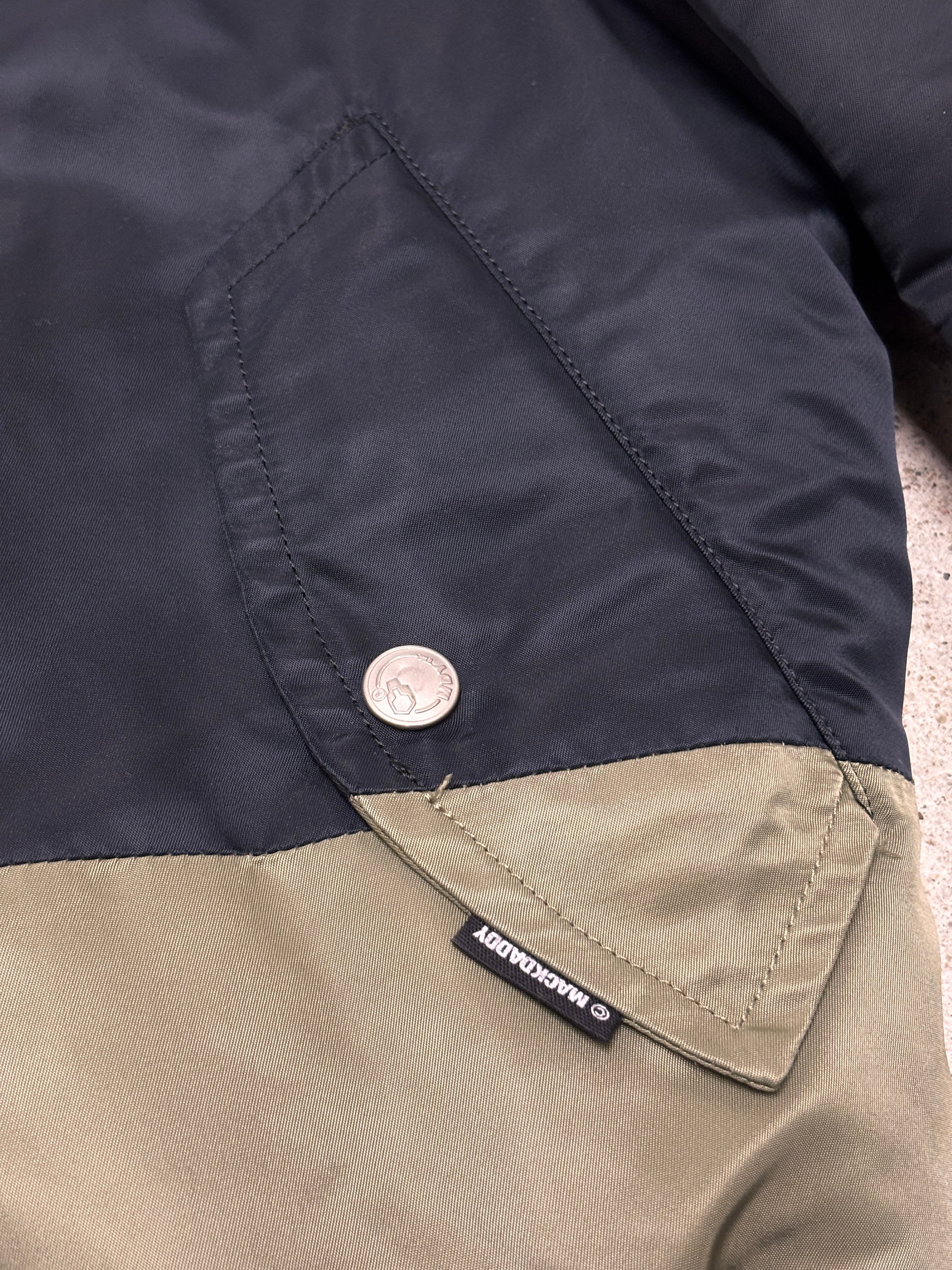 10s MACKDADDY × BOUNTY HUNTER/15th Anniversary MA-1 Flight Jacket/2012年/M/フライトジャケット/ミリタリ-/ロゴプリント/ブラック/カ-キ/BxH/バウンティーハンターコラボ/マックダディ-