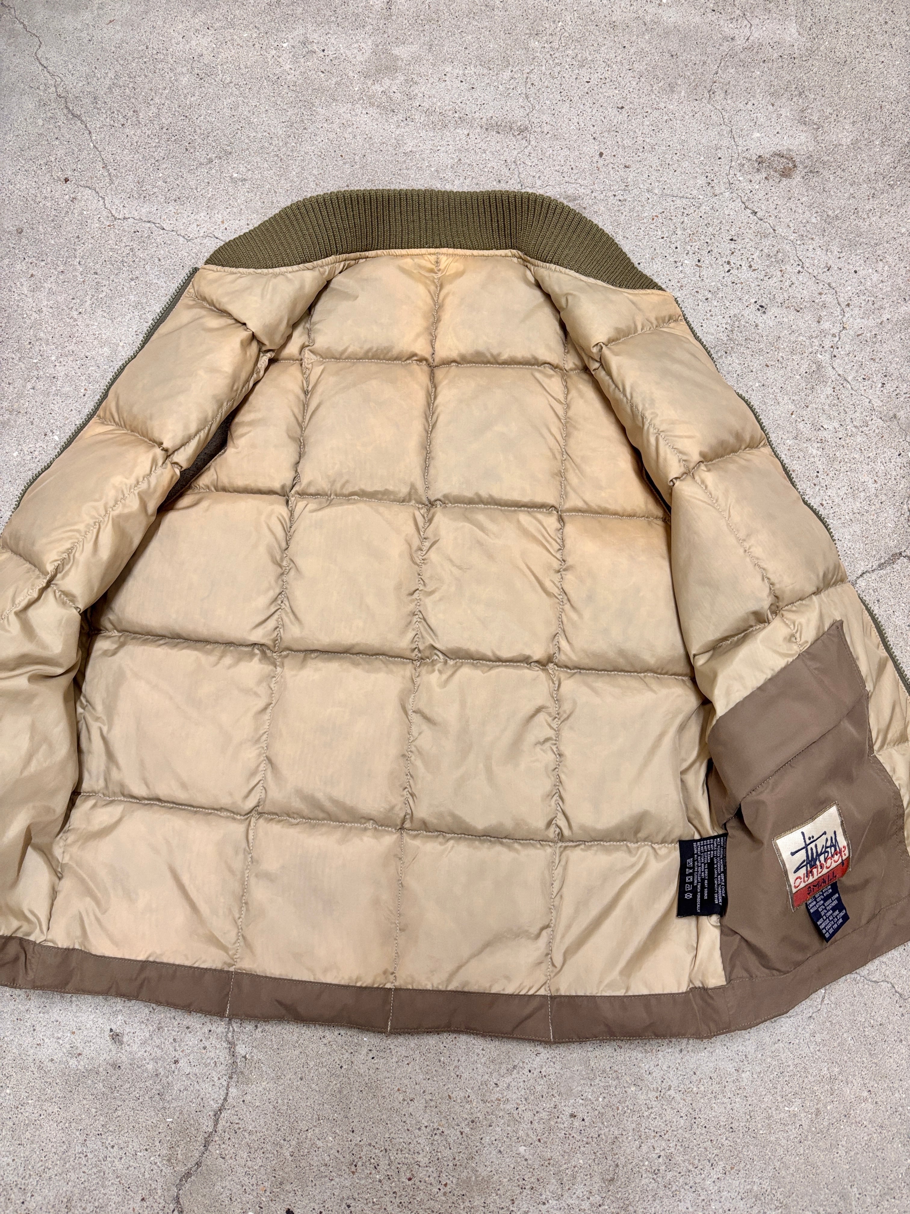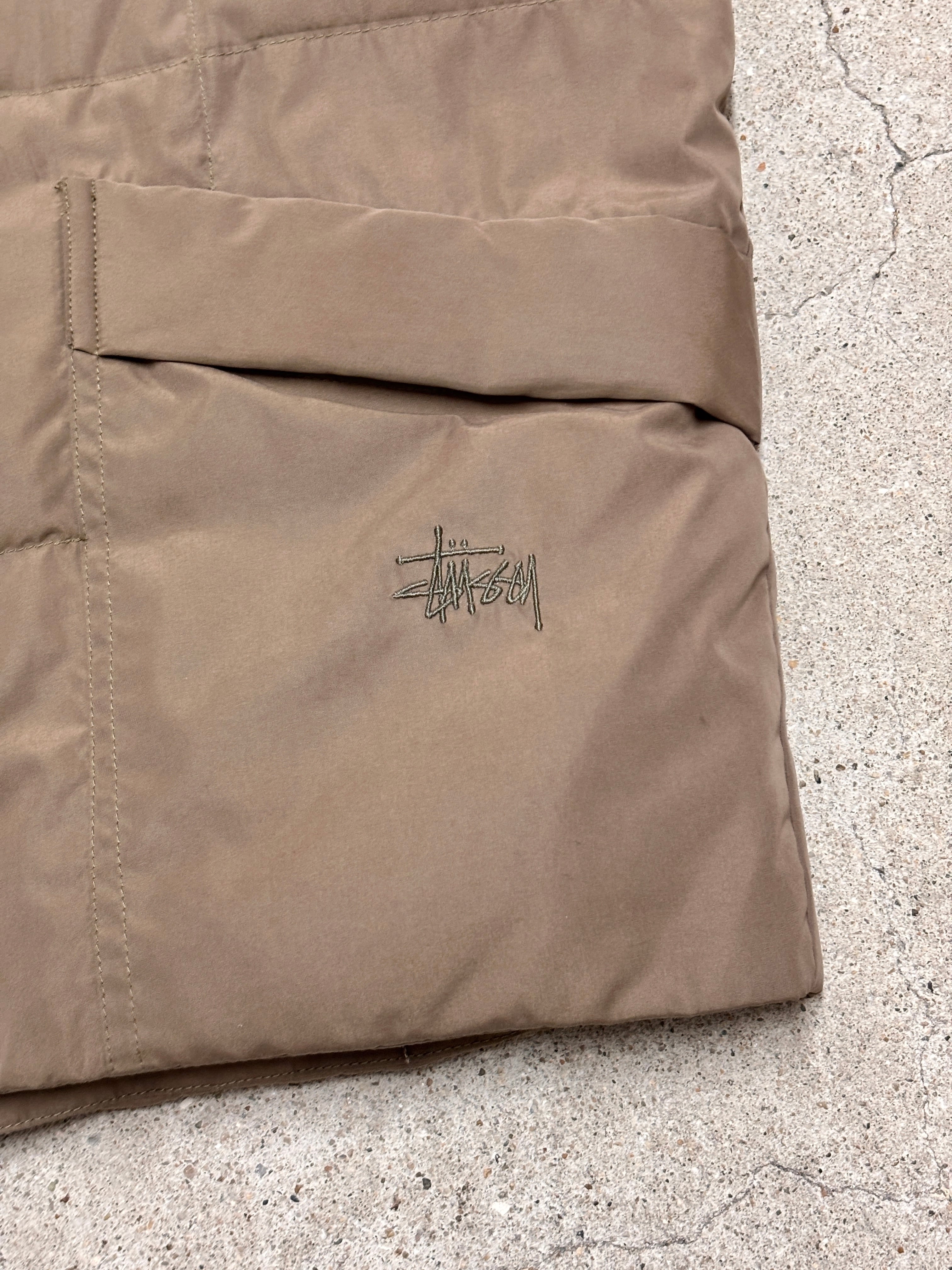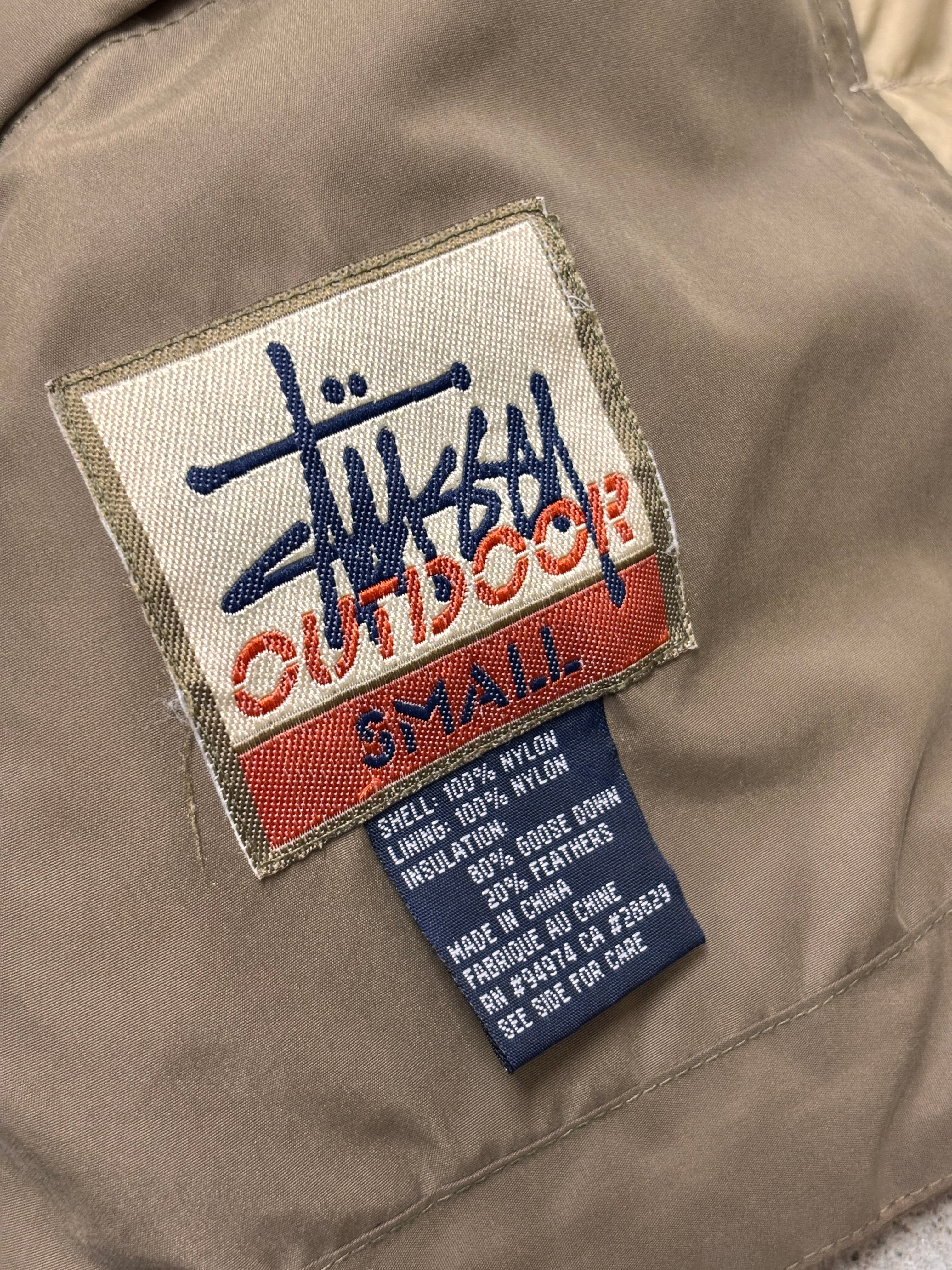 90s OLD STUSSY/STUSSY OUTDOOR/Down Vest/S/ダウンベスト/刺繍ロゴ/ストックロゴ/カーキ/ステューシー/オ-ルドステューシー/古着/ア―カイブ