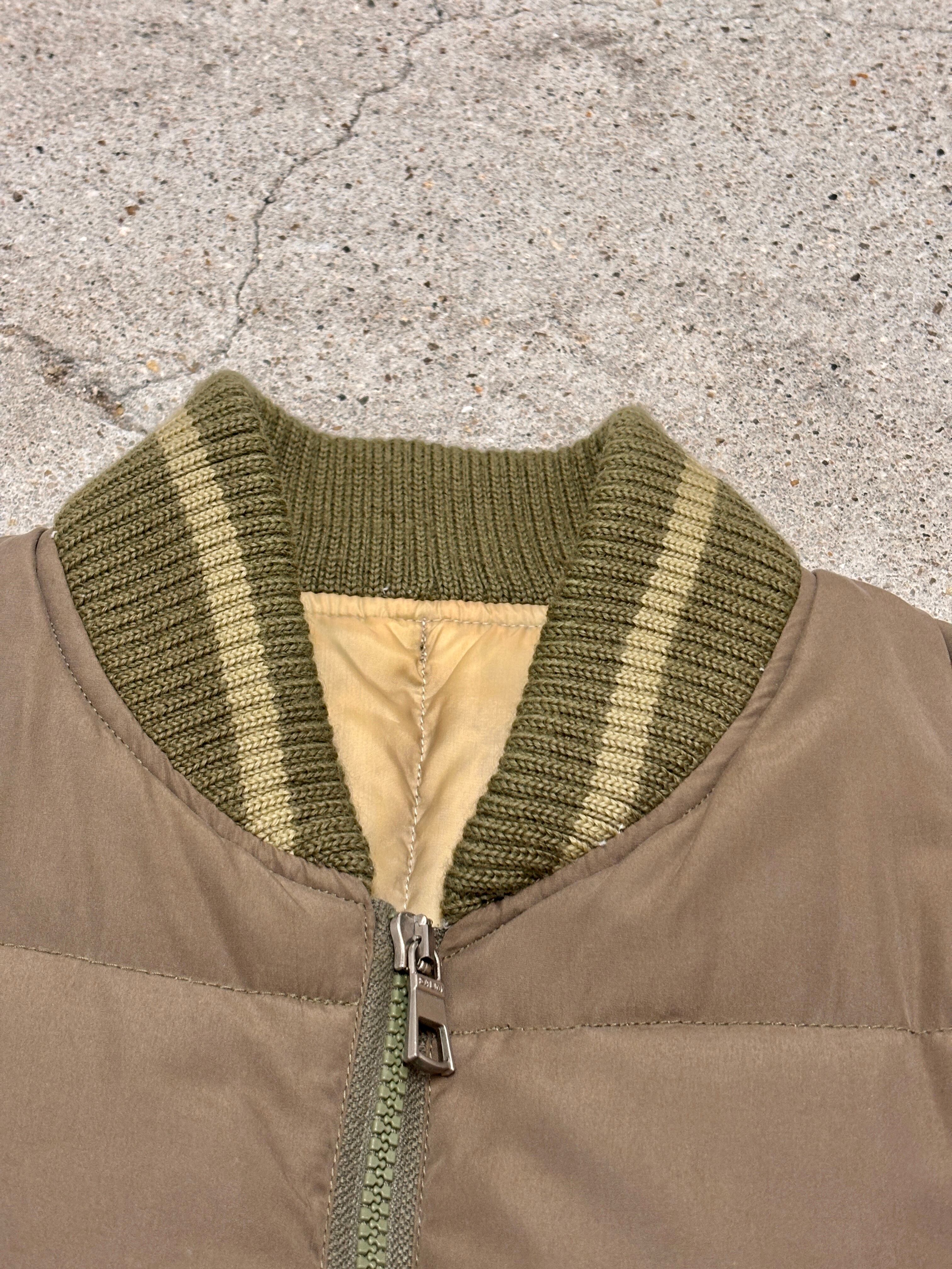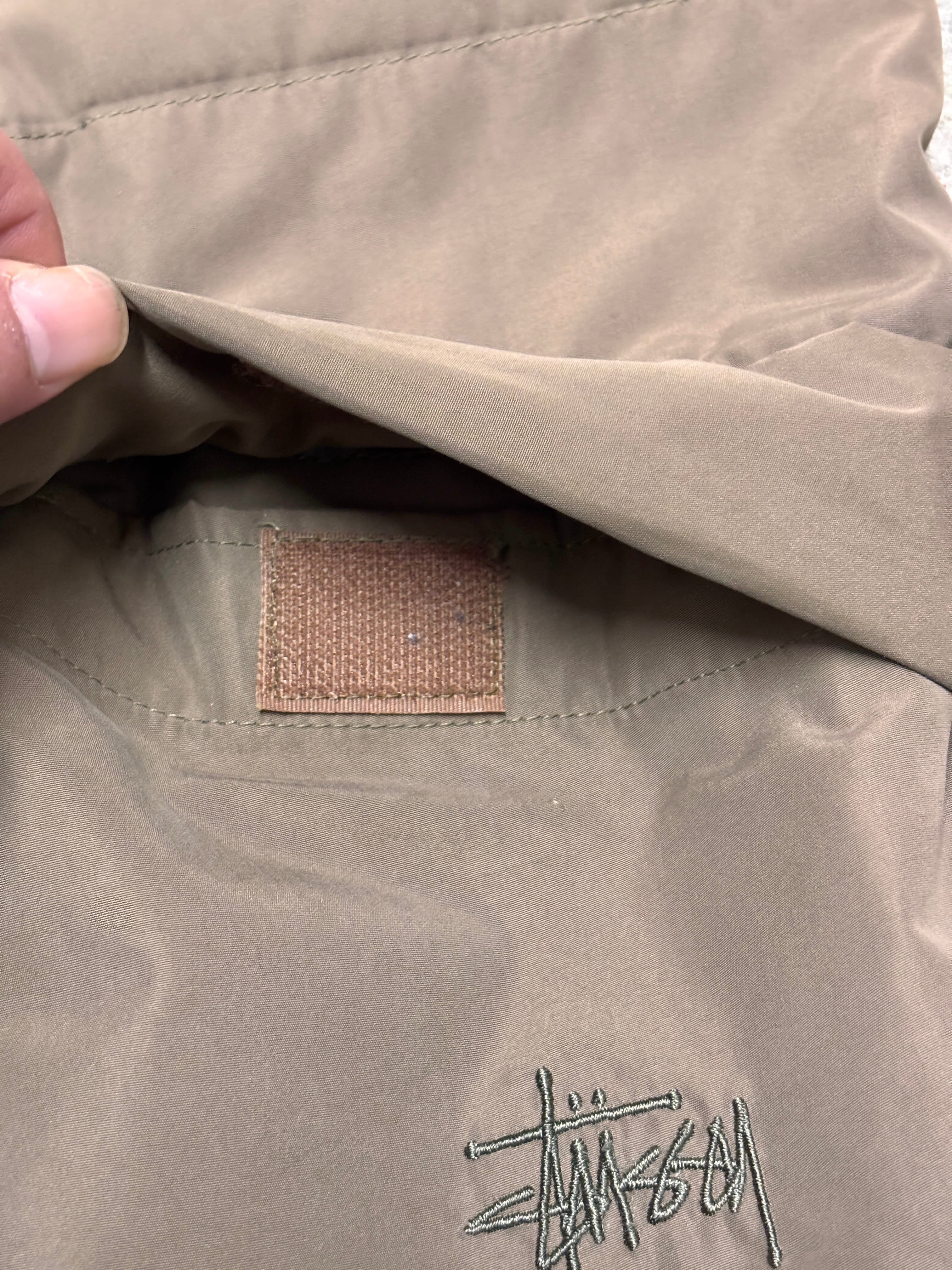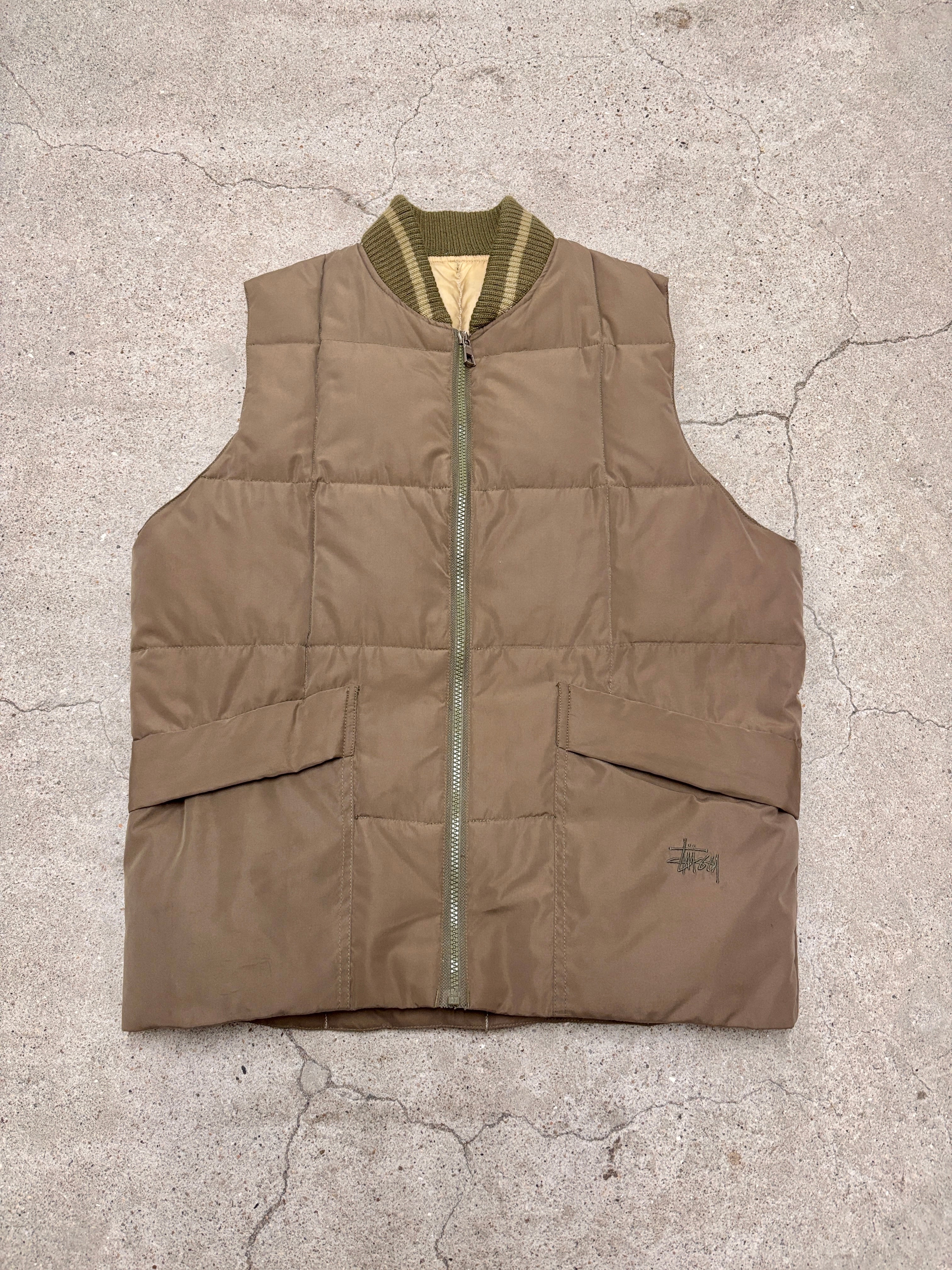 90s OLD STUSSY/STUSSY OUTDOOR/Down Vest/S/ダウンベスト/刺繍ロゴ/ストックロゴ/カーキ/ステューシー/オ-ルドステューシー/古着/ア―カイブ